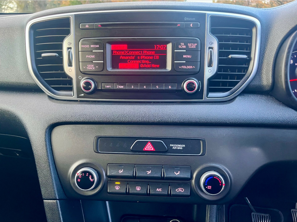 HPI CLEAR!FRESH MOT VALID UNTIL- 10/07/2026 !ULEZ2 KEYSCHEAP TO INSURE FUEL EFFICIENT BLUETOOTH PREPARATIONPARK ASSISTCLIMATE CONTROLRADIO/CDUNIQUE METALLIC PLANET BLUECRUISE CONTROL 6 SPEAKERSUK DELIVERY AVAILABLE WARRANTY PACKAGES AVAILABLE This 2016 Kia Sportage 1.6 GDi 1 5dr Estate is in excellent condition with only 116000 miles on the clock, ensuring many more miles of reliable performance. Powered by petrol and with an MOT that doesn't expire until 10/07/2026, this car is also ULEZ compliant, making it an environmentally friendly choice. With 4-5 seats and 5 doors, there is plenty of room for the whole family. The metallic paint in planet blue gives the car a sleek and stylish look, complemented by the black cloth interior. The Bluetooth connectivity with voice control and cruise control + speed limiter add modern convenience and safety to your driving experience. With just one previous registered keeper, this Kia Sportage is a fantastic choice for anyone in the market for a reliable and stylish estate car. uetooth connectivity with voice control, cruise control + speed limiter, digital clock, emergency stop signalling system, speed sensitive power steering, trip computer, 6 speakers, bluetooth audio streaming, cd player, dab radio with mp3, steering wheel mounted audio controls, usb/ipod/auxiliary input connections, black mesh grille with chrome surround, black side sill moulding, body colour bumpers, body colour door handles, body colour electric adjustable door mirrors, chrome beltline trim, cornering light, electric windows, front drivers side windows/one touch down, front fog lights, headlamp levelling, led daytime running lights, rear spoiler, rear wiper, speed sensitive front wipers, tinted glass, trailer stability assist, 12v power point front, 12v power point in luggage area, 3 passenger grab handles, 60/40 split folding rear seat, air conditioning, air filter, ambient lighting, centre console storage box/armrest, centre room lamp, cloth upholstery, door courtesy lamps, driver, driver/passenger sunvisors with ticket holders, front and rear door pockets, front map lights, front seat and rear pockets, grey headlining, height adjustable headrests, ignition key lock illumination, illuminated glovebox, illuminated vanity mirrors, isofix child seat preparation, leather trimmed gearshift, leather trimmed steering wheel, luggage area lamp, luggage compartment cover, luggage net with hooks, metallic finish inner door handles, rear centre armrest with cupholder, rear coat hooks, rear headrests, tilt/telescopic adjustable steering wheel, ventilation ducts to rear compartment, 3 point front seat belts, 3x3 point rear seatbelts, abs/ebd, active front headrests, automatic unlocking of doors in case of impact, dual front airbags, esp + traction control, front seatbelt pretensioners + load limiters, front side airbags, full size curtain airbags, height adjustable front seatbelts, hill start assist control (hac), passenger airbag deactivate switch, rear child proof door locks, tyre pressure monitoring system, anti theft alarm, deadlocks, immobiliser, locking wheel nuts, remote central locking, speed sensitive auto door locking, metallic finish centre fascia, 16'' alloy wheels, tyre mobility system, bluetooth, privacy glass, 16'' Alloys