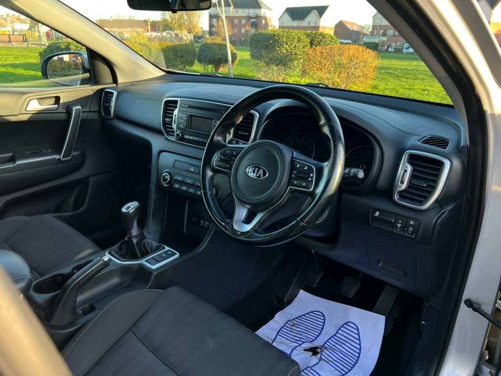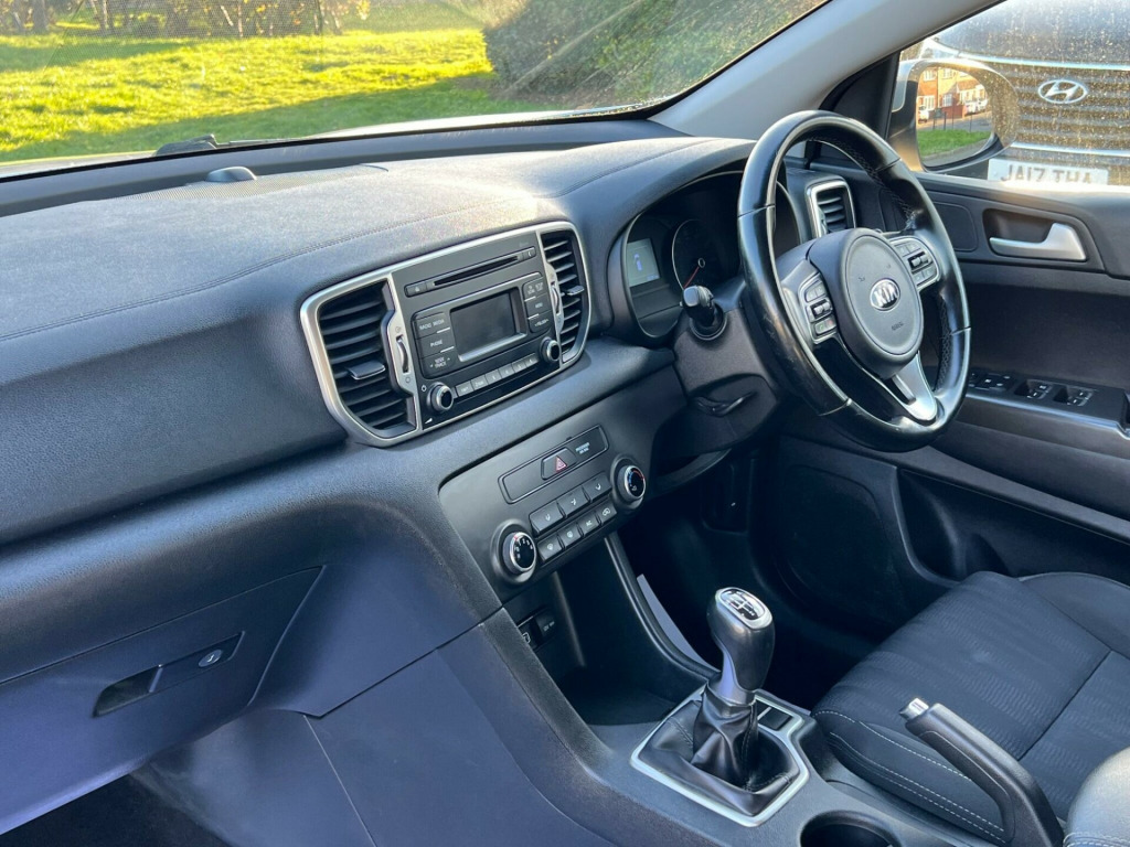 This 2018 Kia Sportage GDi 1 is a fantastic example, having had only one owner from new and boasting a clear vehicle history check. This popular SUV is powered by an efficient 1.6 litre petrol engine, meeting Euro 6 emissions standards. Inside, you'll find comfortable Air Conditioning to keep you cool, and the convenience of Bluetooth with Voice Recognition and Music Streaming, allowing you to stay connected safely.The Sportage offers excellent practicality with its large boot space, perfect for shopping trips or family holidays. Its fuel economy is also a significant advantage, achieving an impressive 45 miles per gallon, which is better than many similar vehicles. Furthermore, its low insurance group rating makes it an economical choice for many drivers, further enhancing its appeal as a sensible and well maintained used car. v power sockets - front and rear consoles, 16in alloy wheels, 3 x passenger assist grips, 6-speaker system, 60-40 split folding 2nd row seats, advanced anti-theft system including immobiliser and alarm, air conditioning, all-round 3-point seatbelts, all-round electric windows with drivers auto down function, all-round height adjustable headrests, anti-lock braking system - abs with electronic brakeforce distribution - ebd, black side sill and wheel arch body mouldings, bluetooth with voice recognition and music streaming, body coloured door mirrors, body coloured exterior door handles, cd player, centre cabin light, centre console storage box, child safety rear door locks, chrome beltline mouldings, chrome front grille surround, coat hooks - rear, cruise control with speed limiter, cupholders in rear armrest, dab radio with mp3 compatibility, digital clock, door deadlocks, driver and passenger sunvisors with vanity mirror and illumination, drivers seat height adjuster, ecodynamics badge, electrically adjustable door mirrors, electronic stability control - esc - with downhill brake control - dbc, emergency stop signalling - ess, front cabin map light, front door courtesy reflectors, front fog lights, front passenger airbag cut off switch, front seatback pockets, front seatbelt height adjusters, front and rear centre armrests, front and rear door storage, gear shift indicator, glovebox with illumination, head rests - front active, hill-start assist control - hac, isofix child seat top tethers and anchor fixings, ignition keyhole illumination, impact sensing auto door unlocking, interior door lock-unlock function, led daytime running lights, leather trimmed gear shift, leather trimmed steering wheel, light grey headlining, locking wheel nuts, luggage area light, luggage area load cover, luggage net hooks, manual headlight levelling device, metallic finish centre fascia trim, metallic finish interior door handles, rack mounted motor driven power steering - r-mdps, radiator grille - black diamond mesh, rear spoiler, rear ventilation duct, remote central door locking with fold-away key, speed sensing auto door locking - dealer-activated feature, steering wheel mounted audio controls, tmk - tyre mobility kit, tsa - trailer stability assist, tilt and telescopic steering wheel adjustment, tinted glass, trip computer - distance - fuel consumption - average speed, twin curtain airbags with roll-over sensor, twin front airbags, twin side airbags - front, tyre pressure monitoring system - tpms, usb and aux ports for connection of an audio media device - ipod - memory stick, visible vehicle identification number - vin