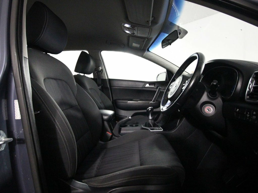 2 Owners. Full service history with 7 services. Last serviced at 47,007 miles in April 2025. This 2018 Kia Sportage 1.6 GDi 1 SUV features a 130bhp petrol engine with manual transmission and Euro 6 compliance, offering efficient and responsive performance. It rides on 16-inch alloy wheels complemented by black side sill and wheel arch mouldings, chrome beltline mouldings, and a black diamond mesh radiator grille surrounded by a chrome front grille surround. The exterior also features LED daytime running lights, body-coloured door mirrors and handles, rear spoiler, and tinted glass for stylish presence.  Inside, the Sportage boasts comfort and convenience with air conditioning, leather-trimmed gearshift and steering wheel, front and rear centre armrests, and height-adjustable driver's seat. Connectivity and entertainment include a 6-speaker audio system, DAB radio with MP3 compatibility, USB and AUX ports, Bluetooth with voice recognition and music streaming, and steering wheel-mounted audio controls. Practical features include all-round electric windows with driver's auto down, front and rear door storage, glovebox illumination, and rear ventilation ducts.  Safety is comprehensive with twin front, side, and curtain airbags with rollover sensors, ABS with electronic brakeforce distribution, electronic stability control with downhill brake control, hill start assist, trailer stability assist, tyre pressure monitoring, emergency stop signalling, and ISOFIX child seat m 12V Power Sockets - Front and Rear Conso, 16in Alloy Wheels, 3 x Passenger Assist Grips, 6-Speaker System, 60-40 Split Folding 2nd Row Seats, Advanced Anti-Theft System including Imm, Air Conditioning, All-Round 3-Point Seatbelts, All-Round Electric Windows with Drivers , All-Round Height Adjustable Headrests, Anti-Lock Braking System - ABS with Elec, Black Side Sill and Wheel Arch Body Moul, Bluetooth with Voice Recognition and Mus, Body Coloured Door Mirrors, Body Coloured Exterior Door Handles, CD Player, Centre Cabin Light, Centre Console Storage Box, Child Safety Rear Door Locks, Chrome Beltline Mouldings, Chrome Front Grille Surround, Coat Hooks - Rear, Cruise Control with Speed Limite