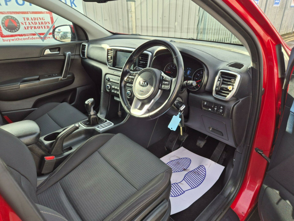 With an MOT valid until January 2027 and a full service history, this 2019 Kia Sportage GDi 2 offers excellent peace of mind. This Euro 6 compliant 1.6 litre petrol model has been meticulously maintained, with its last service completed on 2026-01-26 at 63,299 miles. Inside, you'll find a host of convenient features designed to enhance your driving experience, including rear parking sensors and a reversing camera system to aid with parking. Stay comfortable in all seasons with heated front and outer rear seats, and enjoy consistent cabin temperature thanks to the dual automatic air conditioning. For seamless connectivity, the Sportage is equipped with Bluetooth featuring voice recognition and music streaming.This Kia Sportage stands out with its generous boot space, providing ample room for shopping, luggage, or equipment. Furthermore, its placement in a low insurance group means that running costs are kept to a minimum, making it an economical choice for many drivers. These aspects, combined with its comprehensive service record and long MOT, demonstrate that this Sportage is a well cared for and practical vehicle, offering a superior ownership proposition compared to similar models.. 12V Power Sockets - Front and Rear Consoles, 17in Alloy Wheels, 3 x Passenger Assist Grips, 3.5in Supervision Monochrome Cluster Display, 6-Speaker System, 60-40 Split Folding Rear Seats, 7in Touchscreen Satellite Navigation with European Mapping with Traffic Message Channel - TMC, Advanced Anti-Theft System including Immobiliser and Alarm, All-Round 3-Point Seatbelts, All-Round Electric Windows with Drivers Auto Up-Down Function, All-Round Height Adjustable Headrests, Anti-Lock Braking System - ABS with Electronic Brakeforce Distribution - EBD, Apple CarPlay and Android Auto, Auto Dimming Rear-View Mirror, Automatic Headlight Control, Bi-Function Halogen Headlights, Black Side Sill and Wheel Arch Body Mouldings, Bluetooth with Voice Recognition and Music Streaming, Body Coloured Door Mirrors, Body Coloured Exterior Door Handles with Chrome Insert, Centre Cabin Light, Centre Console Storage Box, Child Safety Rear Door Locks, Chrome Front Grille Surround, Chrome Window Surrounds, Coat Hooks - Rear, Cruise Control with Speed Limiter, Cupholders in Rear Armrest, DAB Radio with MP3 Compatibility, Door Deadlocks, Driver and Passenger Sunvisors with Vanity Mirror and Illumination, Drivers Seat Height Adjuster, Drivers Seat Power Lumbar Support, Drivers Wide View Door Mirror, Dual Automatic Air Conditioning, Electrically Folding-Adjustable and Heated Door Mirrors with LED Indicators, Electronic Stability Control - ESC - with Downhill Brake Control - DBC, Emergency Stop Signalling - ESS, Front Cabin LED Map Light with Sunglasses Case, Front Door Courtesy Reflectors, Front Passenger Airbag Cut Off Switch, Front Seatback Pockets, Front Seatbelt Height Adjusters, Front and Rear Centre Armrests, Front and Rear Door Storage, Gear Shift Indicator, Glovebox with Illumination, Head Rests - Front Active, Headlights - High Beam Assist - HBA, Heated Front and Outer Rear Seats, High Gloss Black Diamond Mesh Radiator Grille, Hill-Start Assist Control - HAC, ISOFIX Child Seat Top Tethers and Anchor Fixings, Ignition Keyhole Illumination, Impact Sensing Auto Door Unlocking, Interior Door Lock-Unlock Function, Kia Connected Services Featuring TomTom - Traffic - Speed Cameras - Local Search and Weather Updates, LED Daytime Running Lights, Lane Keep Assist System - LKAS, Leather Trimmed Door Armrests, Leather Trimmed Gearshift, Light Grey Headlining, Locking Wheel Nuts, Luggage Area Light, Luggage Area Load Cover, Luggage Net Hooks, Manual Headlight Levelling Device, Metallic Finish Centre Fascia Trim, Power Steering, Privacy Glass - Rear Windows and Tailgate, Projection Front Fog Lights, Rain Sensing Front Wipers, Rear Parking Sensors, Rear Spoiler, Rear Ventilation Duct, Remote Central Door Locking with Fold-Away Key, Reversing Camera System, Roof Rails, Satin Chrome Interior Door Handles, Shark Fin Antenna, Speed Limit Information Function - SLIF, Speed Sensing Auto Door Locking, Steering Wheel - Leather, Steering Wheel Mounted Audio Controls, TMK - Tyre Mobility Kit, TSA - Trailer Stability Assist, Tilt and Telescopic Steering Wheel Adjustment, Tinted Glass, Trip Computer - Distance - Fuel Consumption - Average Speed, Twin Curtain Airbags with Roll-Over Sensor, Twin Front Airbags, Twin Side Airbags - Front, Tyre Pressure Monitoring System - TPMS, USB and AUX Ports for Connection of an Audio Media Device - iPod - Memory Stick, Visible Vehicle Identification Number - VIN, Welcome and Follow-Me-Home Light Functionality, Windscreen Washer Level Warning, Premium Cloth - Black. Full service history