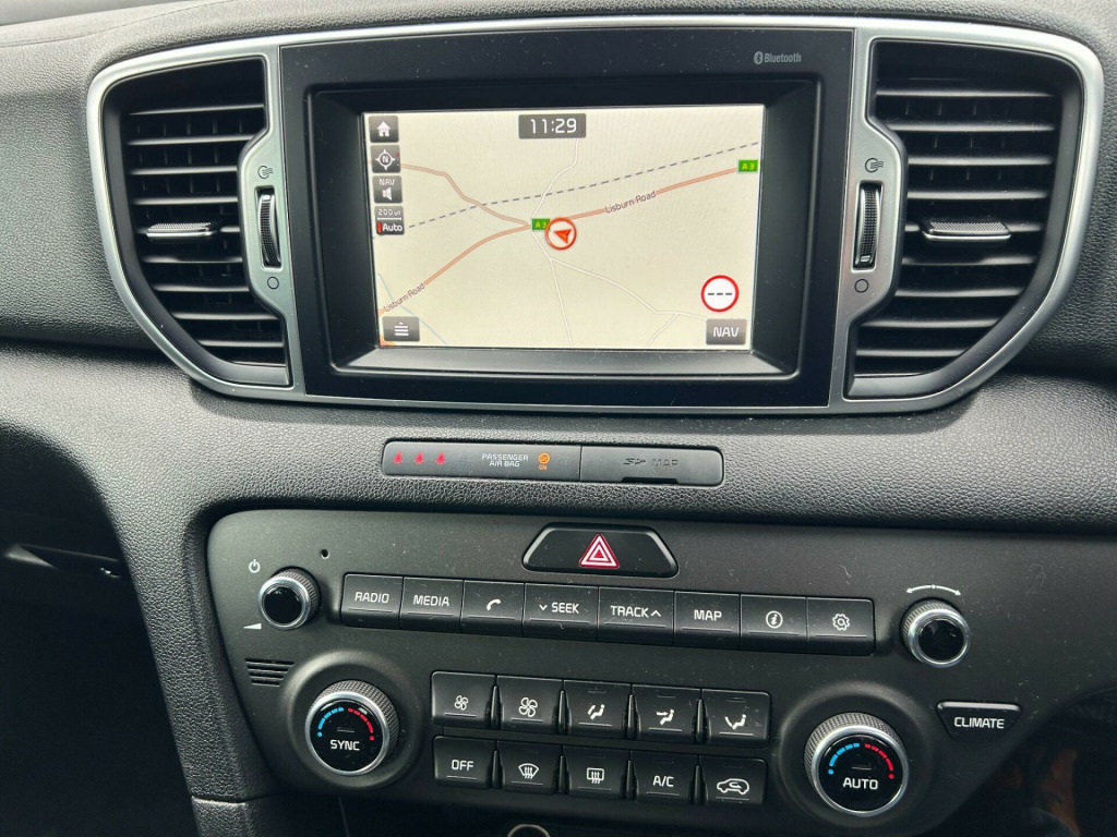 PERFECT EXAMPLE OF THIS VERY LOW MILEAGE KIA SPORTAGE 1.6GDI ISG 2 5DR IN SILVER: FULL SERVICE HISTORY ( 7 SERVICE STAMPS) : FULL YEAR MOT:SPEC INCLUDES:** 19 INCH ALLOYS** SIDE STEPS** SILVER ROOF RAILS** REAR PARK SENSORS** SAT NAV** BLUE TOOTH** CLIMATE CONTROL** CRUISE CONTROLLOW RATE FINANCE DEALS AVAILABLE WITH NO DEPOSIT REQUIREDALL TRADE IN`S WELCOMETELEPHONE MARK OR STUART ON 02892 613600 OR 07802 396444. 19 Inch Alloys, 12V Power Sockets - Front and Rear Consoles, 3 x Passenger Assist Grips, 6-Speaker System, 60-40 Split Folding 2nd Row Seats, 7in Touchscreen Satellite Navigation with European Mapping with Traffic Message Channel - TMC, Advanced Anti-Theft System including Immobiliser and Alarm, All-Round 3-Point Seatbelts, All-Round Electric Windows with Drivers Auto Up-Down Function, All-Round Height Adjustable Headrests, Anti-Lock Braking System - ABS with Electronic Brakeforce Distribution - EBD, Apple CarPlay and Android Auto, Auto Dimming Rear-View Mirror, Automatic Headlight Control, Automatic Windscreen De-Fog, Black Side Sill and Wheel Arch Body Mouldings, Bluetooth with Voice Recognition and Music Streaming, Body Coloured Door Mirrors, Body Coloured Exterior Door Handles with Chrome Insert, Centre Cabin Light, Centre Console Storage Box, Child Safety Rear Door Locks, Chrome Beltline Mouldings, Chrome Front Grille Surround, Coat Hooks - Rear, Cruise Control with Speed Limiter, Cupholders in Rear Armrest, DAB Radio with MP3 Compatibility, Digital Clock, Door Deadlocks, Driver and Passenger Sunvisors with Vanity Mirror and Illumination, Drivers Seat Height Adjuster, Drivers Seat Power Lumbar Support, Drivers Wide View Door Mirror, Dual Automatic Air Conditioning, EcoDynamics Badge, Electrically Folding-Adjustable and Heated Door Mirrors with LED Indicators, Electronic Stability Control - ESC - with Downhill Brake Control - DBC, Emergency Stop Signalling - ESS, Front Cabin Map Light, Front Door Courtesy Reflectors, Front Fog Lights, Front Passenger Airbag Cut Off Switch, Front Seatback Pockets, Front Seatbelt Height Adjusters, Front and Rear Centre Armrests, Front and Rear Door Storage, Gear Shift Indicator, Glovebox with Illumination, Head Rests - Front Active, Headlights - High Beam Assist - HBA, High Gloss Black Diamond Mesh Radiator Grille, Hill-Start Assist Control - HAC, ISOFIX Child Seat Top Tethers and Anchor Fixings, Ignition Keyhole Illumination, Impact Sensing Auto Door Unlocking, Interior Door Lock-Unlock Function, Kia Connected Services Featuring TomTom - Traffic - Speed Cameras - Local Search and Weather Updates, LED Daytime Running Lights, Lane Keep Assist System - LKAS, Leather Trimmed Door Armrests, Leather Trimmed Gear Shift, Leather Trimmed Steering Wheel, Light Grey Headlining, Locking Wheel Nuts, Luggage Area Light, Luggage Area Load Cover, Luggage Net Hooks, Manual Headlight Levelling Device, Metallic Finish Centre Fascia Trim, Privacy Glass - Rear Windows and Tailgate, Rack Mounted Motor Driven Power Steering - R-MDPS, Rain Sensing Front Wipers, Rear Parking Sensors, Rear Spoiler, Rear Ventilation Duct, Remote Central Door Locking with Fold-Away Key, Reversing Camera System - Integrated into Satellite Navigation Screen, Roof Rails, Satin Chrome Interior Door Handles, Shark Fin Antenna, Speed Limit Information Function - SLIF, Speed Sensing Auto Door Locking - Dealer-Activated Feature, Steering Wheel Mounted Audio Controls, TMK - Tyre Mobility Kit, TSA - Trailer Stability Assist, Tilt and Telescopic Steering Wheel Adjustment, Tinted Glass, Trip Computer - Distance - Fuel Consumption - Average Speed, Twin Curtain Airbags with Roll-Over Sensor, Twin Front Airbags, Twin Side Airbags - Front, Tyre Pressure Monitoring System - TPMS, USB and AUX Ports for Connection of an Audio Media Device - iPod - Memory Stick, Visible Vehicle Identification Number - VIN, Welcome and Follow-Me-Home Light Functionality.