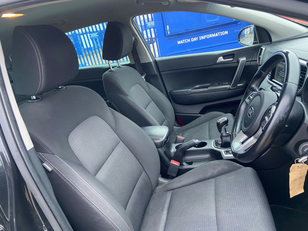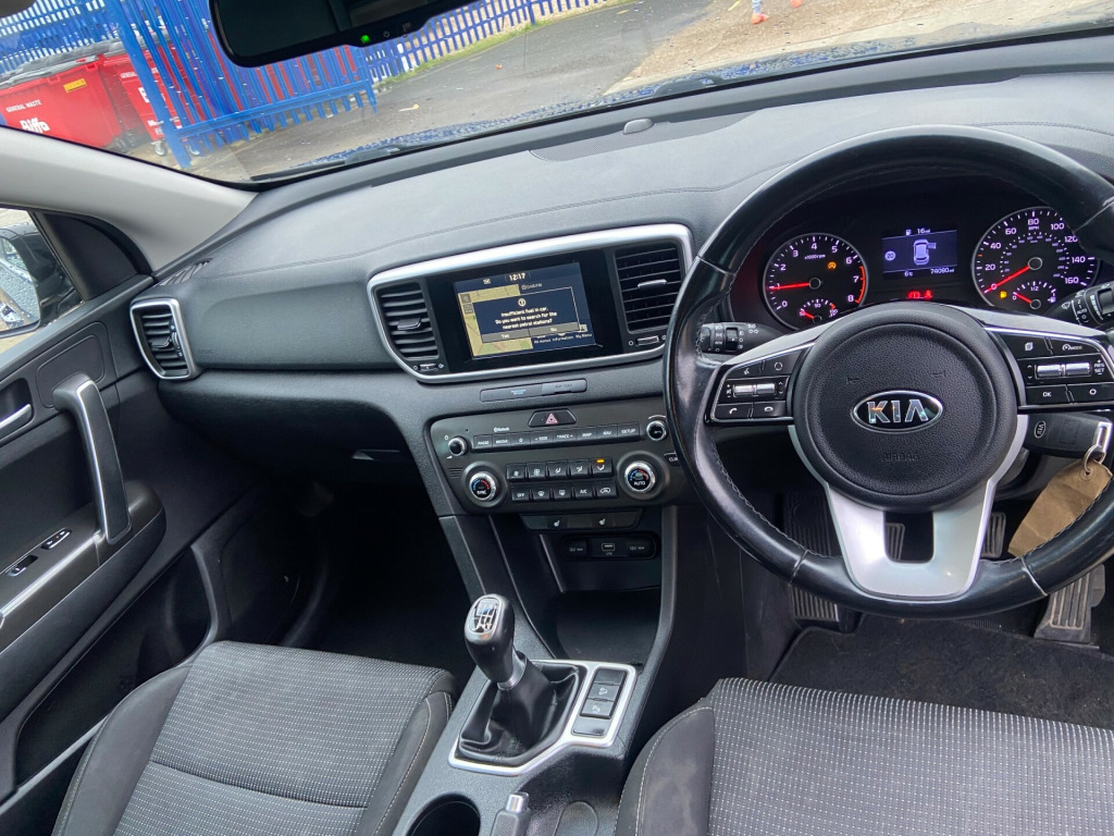 For sale is a 2019 Kia Sportage 1.6 GDi 2 SUV with 73947 miles on the clock, powered by a Petrol engine with a manual transmission that delivers 130 bhp. This 5-door, 5-seat SUV comes with features such as 12V Power Sockets in the front and rear consoles, a 3.5in Supervision Monochrome Cluster Display, a 6-Speaker System, and a 7in Touchscreen Satellite Navigation with European Mapping and Traffic Message Channel - TMC, as well as Apple CarPlay and Android Auto. This vehicle is ULEZ compliant and has an MOT that expires on 26/01/2027. Ideal for city and highway driving, this SUV is a reliable and spacious option for any driver.Please ask about our incredible offers on our warranties! v power sockets - front and rear consoles, 3.5in supervision monochrome cluster display, 6-speaker system, 7in touchscreen satellite navigation with european mapping with traffic message channel - tmc, apple carplay and android auto, bluetooth with voice recognition and music streaming, dab radio with mp3 compatibility, kia connected services featuring tomtom - traffic - speed cameras - local search and weather updates, shark fin antenna, usb and aux ports for connection of an audio media device - ipod - memory stick, 17in alloy wheels, all-round electric windows with drivers auto up-down function, black side sill and wheel arch body mouldings, body coloured door mirrors, body coloured exterior door handles with chrome insert, chrome front grille surround, chrome window surrounds, drivers wide view door mirror, electrically folding-adjustable and heated door mirrors with led indicators, high gloss black diamond mesh radiator grille, locking wheel nuts, privacy glass - rear windows and tailgate, rear spoiler, roof rails, tmk - tyre mobility kit, tinted glass, 3 x passenger assist grips, 60-40 split folding rear seats, all-round height adjustable headrests, auto dimming rear-view mirror, centre cabin light, centre console storage box, coat hooks - rear, cupholders in rear armrest, driver and passenger sunvisors with vanity mirror and illumination, drivers seat height adjuster, drivers seat power lumbar support, dual automatic air conditioning, front cabin led map light with sunglasses case, front door courtesy reflectors, front seatback pockets, front and rear centre armrests, front and rear door storage, glovebox with illumination, head rests - front active, heated front and outer rear seats, ignition keyhole illumination, leather trimmed door armrests, leather trimmed gearshift, light grey headlining, luggage area light, luggage area load cover, luggage net hooks, metallic finish centre fascia trim, rain sensing front wipers, rear ventilation duct, satin chrome interior door handles, steering wheel - leather, steering wheel mounted audio controls, tilt and telescopic steering wheel adjustment, advanced anti-theft system including immobiliser and alarm, all-round 3-point seatbelts, anti-lock braking system - abs with electronic brakeforce distribution - ebd, child safety rear door locks, door deadlocks, electronic stability control - esc - with downhill brake control - dbc, emergency stop signalling - ess, front passenger airbag cut off switch, front seatbelt height adjusters, hill-start assist control - hac, isofix child seat top tethers and anchor fixings, impact sensing auto door unlocking, interior door lock-unlock function, lane keep assist system - lkas, remote central door locking with fold-away key, speed limit information function - slif, speed sensing auto door locking, tsa - trailer stability assist, twin curtain airbags with roll-over sensor, twin front airbags, twin side airbags - front, visible vehicle identification number - vin, automatic headlight control, bi-function halogen headlights, headlights - high beam assist - hba, led daytime running lights, manual headlight levelling device, projection front fog lights, welcome and follow-me-home light functionality, cruise control with speed limiter, gear shift indicator, power steering, rear parking sensors, reversing camera system, trip computer - distance - fuel consumption - average speed, tyre pressure monitoring system - tpms, windscreen washer level warning