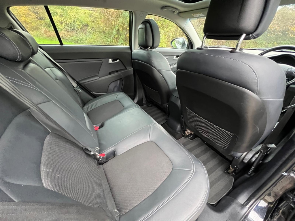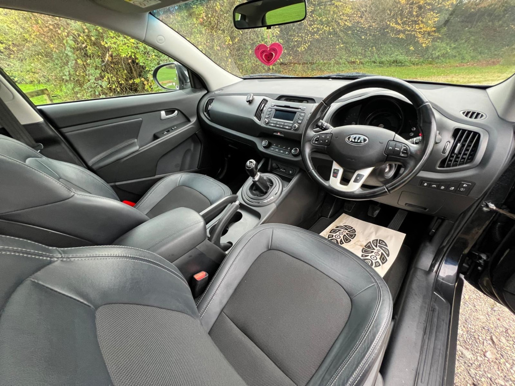 2013 KIA SPORTAGE 2 1.6GDi Petrol 133bhp EcoDynamics 5 Door SUVFirst Supplied and Registered new by Snows Kia Basingstoke in November 2013.Since then the car has had just just one former registered keeper.This popular and always sought after Sportage is finished in Black Metallic with a complimenting part leather trimmed Black interior and Panoramic view Glass RoofPresenting and driving exceptionally well it is clear that the car has been well cared for over the years which is reflected by a Full Documented Service and Maintenance History.New full 12 month MOT Cerficate 3 new tyres included as advised on recent MOT Certificate 3 month unlimited mileage Silver Level Warranty Solutions Group component failure warranty policy . Full details on requestReserve first viewing with option to buy with a small fully returnable £100 HOLDING DEPOSIT. full details on requestVIEWING AND ROAD TEST WELCOME BY PRE CONFIRMED APPONTMENT ONLY , v power socket - front centre console x2, 12v power socket - luggage compartment, 6-speaker system, bluetooth with music streaming, bluetooth with voice recognition, rds radio with cd and mp3, usb and aux ports, ipod connectivity, 17in alloy wheels, body coloured door mirrors, body coloured side sill mouldings, chrome front grille surround, door handles - chrome, ecodynamics badge, electric windows - front and rear with auto up-down function, electrically adjustable and heated door mirrors, electrically folding door mirrors, front grille - chrome, full size alloy spare wheel, integrated indicator lights led in door mirrors, locking wheel nuts, panoramic sunroof - electric one touch with safety function, privacy glass - rear windows and tailgate, radiator grille - black gloss arrow mesh, rear spoiler, roof rails, tinted glass, 3 x passenger assist grips, 60-40 split folding 2nd row seats, air conditioning, air conditioning - dual automatic climate control, air filter, all-round height adjustable headrests, ambient light - front centre console tray illumination, armrest - centre console with storage, armrest - front, centre console storage, coat hooks - rear, cupholders - centre console x2, cupholders - rear, drivers seat height adjuster, front cabin map light, front door courtesy reflectors, front seatback pockets, front and rear door map pockets with bottle holder, front and rear door storage, glovebox - cooled, glovebox with illumination, head rests - front active, ignition keyhole illumination, leather trimmed door armrests, leather trimmed gear shift, leather trimmed steering wheel, luggage area light, luggage compartment - hooks, luggage compartment - load cover, luggage compartment - net, metallic finish interior door handles, rain sensing front wipers, seats - drivers lumbar support, steering wheel mounted audio controls, sunvisors with vanity mirrors illumination, tilt and telescopic steering wheel adjustment, vanity mirror illumination, abs - anti lock braking system, airbags - driver, airbags - front side, airbags - passenger, airbags - side, airbags - twin curtain, alarm system, child safety rear door locks, dbc - downhill brake control, deadlocks, ebd - electronic brakeforce distribution, esc - electronic stability control, emergency stop signalling - ess, engine immobiliser, front passenger airbag cut off switch, hill-start assist control - hac, isofix child seat top tethers and anchor fixings, impact sensing auto door unlocking, remote central locking with folding key, speed sensing auto door locking, tsa - trailer stability assist, adaptive brake lights, cruise control, gear shift indicator, motor driven power steering - mdps, rear parking sensors, trip computer, tyre pressure monitoring system - tpms, voice control, cornering lights, front fog lights, high mounted brake light, led daytime running lights