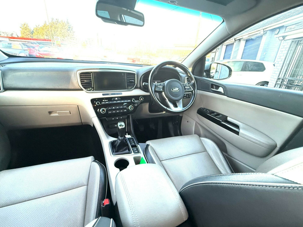 This 2019 Kia Sportage GDi Platinum Edition offers a superb blend of style and practicality, making it an excellent choice for any driver. As a Euro 6 compliant model, it features a responsive 1.6 litre petrol engine and benefits from a low insurance group, which can help keep running costs down. The Platinum Edition trim level ensures a premium experience, with keyless entry and a smart start stop button for effortless access and ignition.You'll find navigating tight spaces is made simple with rear parking sensors and a 360 degree around view monitor, providing complete visibility. Safety is enhanced by the Blind Spot Collision Warning system, offering an extra layer of awareness on the road. Inside, comfort is paramount with heated front and outer rear seats, perfect for those colder mornings. Furthermore, the Sportage boasts a generous boot space, indicating it is better equipped for luggage and shopping than many similar vehicles, making it a truly versatile and appealing option. ather - light grey, 10-way drivers and 8-way passengers power adjustable seat, 12v power sockets - front and rear consoles, 17in alloy wheels, 3 x passenger assist grips, 360 degree around view monitor, 4.2in supervision colour cluster display, 60-40 split folding rear seats, 8-speaker jbl - premium sound system with subwoofer - external amp and front centre speaker, 8in touchscreen satellite navigation with european mapping and traffic messaging channel - tmc, advanced anti-theft system including immobiliser and alarm, all-round 3-point seatbelts, all-round electric windows with drivers auto up-down function, all-round height adjustable headrests, aluminium door scuff plates, android auto with voice control, anti-lock braking system - abs with electronic brakeforce distribution - ebd, apple carplay with voice control, auto dimming rear-view mirror, automatic headlight control, black wheel arch body mouldings and side sills with chrome insert, blind-spot collision warning - bcw, bluetooth with music streaming, body coloured door mirrors, body coloured exterior door handles with chrome insert, centre cabin light, centre console storage box, centre fascia - black high gloss, child safety rear door locks, chrome front bumper insert, chrome front grille surround, chrome window surrounds, coat hooks - rear, cruise control with speed limiter, cupholders in rear armrest, dab radio with mp3 compatibility, door deadlocks, driver attention warning - daw, driver and passenger sunvisors with vanity mirror and illumination, drivers seat power lumbar support, drivers wide view door mirror, dual automatic air conditioning, electrically folding-adjustable and heated door mirrors with led indicators, electronic parking brake, electronic stability control - esc - with downhill brake control - dbc, emergency stop signalling - ess, engine start-stop button with smart entry system, forward collision-avoidance assist - city - pedestrian, front cabin led map light with sunglasses case, front door courtesy reflectors, front parking sensors, front passenger airbag cut off switch, front seatback pockets, front seatbelt height adjusters, front wiper de-icer, front and rear centre armrests, front and rear door storage, gear shift indicator, glovebox with illumination, head rests - front active, headlights - high beam assist - hba, heated front and outer rear seats, heated steering wheel, high gloss black diamond mesh radiator grille, hill-start assist control - hac, isofix child seat top tethers and anchor fixings, impact sensing auto door unlocking, interior door lock-unlock function, kia connected services featuring tomtom - traffic - speed cameras - local search and weather updates, led bi-function headlights, led daytime running lights, led rear tail lights, lane keep assist system - lkas, leather trimmed door armrests, leather trimmed gearshift, light grey headlining, locking wheel nuts, luggage area light, luggage area load cover, luggage net hooks, power steering, privacy glass - rear windows and tailgate, projection front fog lights, rain sensing front wipers, rear parking sensors, rear spoiler, rear usb charging port, rear ventilation duct, reversing camera system, roof rails, satin chrome interior door handles, shark fin antenna, silver painted front and rear skid plates, speed limit information function - slif, speed sensing auto door locking, steering wheel - leather, steering wheel mounted audio controls, tmk - tyre mobility kit, tsa - trailer stability assist, tilt and telescopic steering wheel adjustment, tinted glass, trip computer, twin curtain airbags with roll-over sensor, twin front airbags, twin side airbags - front, tyre pressure monitoring system - tpms, usb port for connection of a media device, visible vehicle identification number - vin, welcome and follow-me-home light functionality, windscreen washer level warning