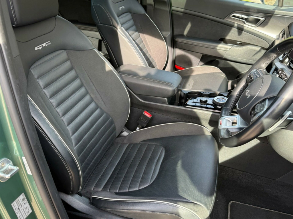 This 2022 Kia Sportage h T-GDi GT-Line S is a superb example, having had only one owner since new. It boasts a responsive 1.6 litre petrol hybrid engine, meeting Euro 6 emissions standards. The GT Line S trim level ensures a premium experience, enhanced by features such as a wireless phone charger for effortless device power, rear parking sensors and a 360 degree around view monitor to aid manoeuvring. Automatic headlight control and dual LED adaptive headlamps provide excellent visibility in all conditions.The Kia Sportage offers impressive performance, reaching 0 to 60 miles per hour in just 7.7 seconds, demonstrating its dynamic capability. This acceleration figure highlights how this Sportage offers a more engaging driving experience compared to many other vehicles in its class. Furthermore, you will appreciate the generous boot space, providing ample room for luggage or shopping, making it a practical choice for everyday life and longer journeys.WE OPERATE BY APPOINTMENT ONLY. PLEASE CALL THE SHOWROOM TO BOOK A TIME SLOT. -way drivers and 8-way passengers power adjustable seat, 12.3in display with navigation, 12.3in supervision colour cluster display, 12v power socket - front centre fascia and luggage compartment, 18in alloy wheels, 2nd row personal lamp, 3 x passenger assist grips, 360 degree around view monitor, 40-20-40 split folding rear seats, advanced anti-theft system including immobiliser and alarm, all-round 3-point seatbelts, all-round electric windows with driver and front passenger auto up-down function, all-round height adjustable headrests, aluminium pattern finish centre fascia and door garnish, ambient lighting, android auto and apple carplay with voice control, anti-lock braking system - abs, auto window defogger, automatic headlight control, backlite glass heated with timer, blind-spot collision-avoidance assist - bca, blind-spot view monitor - bvm, bluetooth with music streaming, body colour door garnish, body coloured door mirrors, body coloured exterior door handles, body coloured radiator upper garnish, body coloured and black bumper with silver accents, centre console storage box, child safety rear door locks, chrome front and rear skid plate, climate control - three zone, coat hooks - rear, cupholders in rear armrest, dbc - downhill brake control, door courtesy lamp, door deadlocks, drink holder at centre armrest, drive mode select, driver and passenger sunvisors with vanity mirror and illumination, dual horn, dual led adaptive headlamps, esc - electronic stability control, electrically folding-adjustable and heated door mirrors with led indicators, electronic chromic mirror, electronic parking brake, engine start-stop button with smart entry system, forward collision-avoidance assist - fca - city-pedestrian-cyclist-junction covering, free 7-year kia connect services - uvo, front parking sensors, front passenger airbag cut off switch, front seatback pockets, front seatbelt height adjusters, front and rear door storage, glossy black radiator grille, glossy black roof rack, glossy black side sill and wheel arch mouldings, glovebox with illumination, harman kardon premium sound system, headlining - black, heated steering wheel, highway driving assist, hill-start assist control - hac, isofix child seat top tethers and anchor fixings - outer rear seats only, impact sensing auto door unlocking, intelligent speed limit assist - isla, interior door lock-unlock function, led daytime running lights, led front fog lamps, led high mounted stop light, led luggage lamp, led overhead console lamp, led personal lamp, led rear combination lamp, lane following assist - lfa, lane keeping assist - lka, locking wheel nuts, low washer fluid warning, luggage area load cover, luggage net hooks, metal paint interior door handles, multi-collision brake, panorama sunroof, parking collision avoidance assist - pca, power steering, rain sensing aero blade wiper, rear fog lamp, rear parking sensors, rear privacy glass, rear seat alert, rear spoiler, rear usb charging port, rear ventilation duct, remote smart parking assist - rspa, reversing camera system, satin finish beltline, seats - drivers lumbar support, seats - heated front and rear, smart cruise control with stop and go functionality, smart power tailgate, speed sensing auto door locking, sports pedal, steering wheel - d-shaped sports leather with perforated inserts and gt-line logo, steering wheel - paddle shift, steering wheel mounted audio controls, tmk - tyre mobility kit, tsa - trailer stability assist, tilt and telescopic steering wheel adjustment, trip computer, twin curtain airbags, twin front airbags, twin side airbags - front, tyre pressure monitoring system - tpms, usb port for connection of a media device, ventilated front seats, visible vehicle identification number - vin, windscreen washer level warning, wireless phone charger