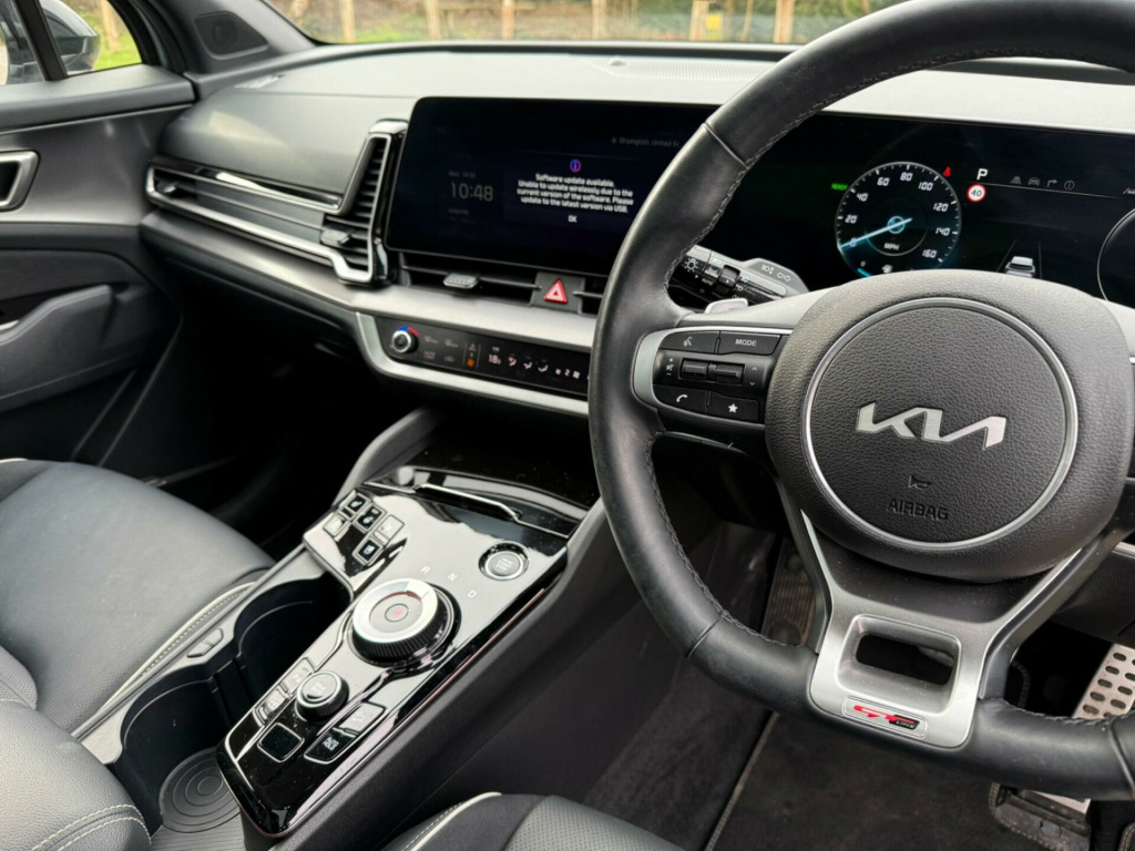 This 2024 Kia Sportage GT-Line S h T-GDi is a superb example, boasting a full dealership service history and a clear vehicle history check, ensuring complete peace of mind. With only one owner and a remarkably low mileage of 12,000 miles for its age, this Euro 6 compliant petrol hybrid is presented in excellent condition. The GT-Line S trim level offers a premium experience, enhanced by a sophisticated Harman Kardon Premium Sound System and convenient three zone climate control.Experience effortless driving with the Sportage's impressive acceleration, reaching 0-60mph in just 7.7 seconds, a performance that sets it apart from many others in its class. The dual LED adaptive headlamps provide superior visibility, automatically adjusting for optimal lighting conditions, while the 360 degree around view monitor makes parking and manoeuvring incredibly simple. Furthermore, the generous boot space ensures practicality for all your needs, making this Kia Sportage a truly versatile and desirable vehicle. -way drivers and 8-way passengers power adjustable seat, 12.3in display with navigation, 12.3in supervision colour cluster display, 12v power socket - front centre fascia and luggage compartment, 18in alloy wheels, 3 x passenger assist grips, 360 degree around view monitor, 40-20-40 split folding rear seats, advanced anti-theft system including immobiliser and alarm, all-round 3-point seatbelts, all-round electric windows with driver and front passenger auto up-down function, all-round height adjustable headrests, aluminium pattern finish centre fascia and door garnish, ambient lighting, android auto and apple carplay with voice control, anti-lock braking system - abs, auto window defogger, automatic headlight control, backlite glass heated with timer, black bumper with silver accents, blind-spot collision-avoidance assist - bca, blind-spot view monitor - bvm, bluetooth with music streaming, body colour door garnish, body coloured exterior door handles, body coloured radiator upper garnish, centre console storage box, child safety rear door locks, chrome front and rear skid plate, climate control - three zone, coat hooks - rear, cupholders in rear armrest, dbc - downhill brake control, door courtesy lamp, door deadlocks, drink holder at centre armrest, drive mode select, driver and passenger sunvisors with vanity mirror and illumination, dual horn, dual led adaptive headlamps, esc - electronic stability control, electrically folding-adjustable and heated door mirrors with led indicators, electronic chromic mirror, electronic parking brake, engine start-stop button with smart entry system, forward collision-avoidance assist - fca - city-pedestrian-cyclist-junction covering, free 7-year kia connect services - uvo, front parking sensors, front passenger airbag cut off switch, front seatback pockets, front seatbelt height adjusters, front and rear door storage, glossy black door mirrors, glossy black radiator grille, glossy black roof rails, glossy black side sill and wheel arch mouldings, glovebox with illumination, harman kardon premium sound system, headlining - black, heated front seats, heated outer rear seats, heated steering wheel, highway driving assist, hill-start assist control - hac, isofix child seat top tethers and anchor fixings - outer rear seats only, impact sensing auto door unlocking, intelligent speed limit assist - isla, interior door lock-unlock function, led daytime running lights, led front fog lamps, led high mounted stop light, led luggage lamp, led overhead console lamp, led personal lamp, led rear combination lamp, lane following assist - lfa, lane keeping assist - lka, locking wheel nuts, low washer fluid warning, luggage area load cover, luggage net hooks, metal paint interior door handles, multi-collision avoidance brake, panorama sunroof, parking collision avoidance assist - pca, power steering, rain sensing aero blade wiper, rear cabin light, rear fog lamp, rear parking sensors, rear privacy glass, rear seat alert, rear spoiler, rear ventilation duct, remote smart parking assist - rspa, reversing camera system, satin finish beltline, seats - drivers lumbar support, smart cruise control with stop and go functionality, smart power tailgate, speed sensing auto door locking, sports pedal, steering wheel - d-shaped sports leather with perforated inserts and gt-line logo, steering wheel - paddle shift, steering wheel mounted audio controls, tmk - tyre mobility kit, tsa - trailer stability assist, tilt and telescopic steering wheel adjustment, trip computer, twin curtain airbags, twin front airbags, twin side airbags - front, tyre pressure monitoring system - tpms, usb port for connection of a media device, usb-c charging ports on centre console, usb-c charging ports on the side of front seats, ventilated front seats, visible vehicle identification number - vin, windscreen washer level warning, wireless phone charger