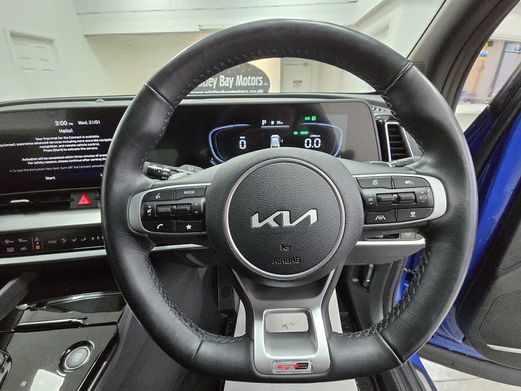 4,769 miles, 1 former keeper, finished in blue flame, black half leather upholstery, 18'' anthracite alloy wheels.Specification includes; virtual dash display, satnav, bluetooth, android auto & apple carplay compatible, heated seats, multifunctional heated steering wheel, cruise control, auto lights, auton wipers, various drive modes, front & rear parking sensors, reversing camera, powerfold mirrors, comes with 2 central locking keys.Please see the 'Vehicle Equipment' tab on our website for full specification.Please call our experienced sales team on 0191 4153540 for any additional specification query, an in-depth appraisal/video call or maybe we can help fund your new car. All of our vehicles are subject to a £199 Service Support Fee and are therefore supplied with 12 months MOT, Full Pre Delivery Service, 6 Months Complimentary In-House Warranty, Premium Pre-Collection Valet, Fuel for Your First Journey and a HPI Certificate. We offer a wide range of Finance and Warranty packages as well as fantastic trade rates for alloy wheel refurbs/colour changes, window tinting and much more.. 12.3in Touchscreen Navigation, 12v Power Socket - Front Centre Fascia and Luggage Compartment, 6-Speaker System, Apple CarPlay and Android Auto, Bluetooth Connection, eCall System, Free 7-year Kia Connect Services, Front Passenger USB-C Charging Ports x 1, Rear Passenger USB-C Charging Ports x 2, USB Port for Media Device Connection, Drive Mode Select, Driver Attention Warning - DAW, Front and Rear Parking Sensors, Lane Follow Assist 1.0, Reversing Camera System, Smart Cruise Control with Stop and Go Functionality, Tyre Pressure Monitoring System - TPMS, 18in Alloy Wheels with 235-55 R18 Tyres, Black and Body Colour Bumpers, Electric Front and Rear Windows with Front One-Touch, Electrically Adjustable - Folding and Heated Door Mirrors with LED Indicators, Gloss Black Door Mirrors, Gloss Black Roof Rails, Gloss Black Wheel Arches, Glossy Black Radiator Grille, GT-Line Exterior Styling, Heated Rear Window, Locking Wheel Nuts, Privacy Glass - Rear Windows and Tailgate, Rear Fog Light, Rear Spoiler, Rear Wiper, Silver Window Surround, TMK - Tyre Mobility Kit, Automatic Headlight Control, LED Daytime Running Lights, LED Front Fog Lights, LED Headlights, LED High Mounted Brake Light, LED Rear Lights, 4.2in Driver Display Screen, 40-20-40 Split Folding Rear Seats, Alloy Pedals, All-Round Height Adjustable Headrests, Auto Dimming Rear-View Mirror, Automatic Air Conditioning, Automatic Defog System, Black Headlining, Centre Console with Storage Box, Customisable Automatic Door Unlocking, Drivers Seat Manual Height Adjuster, Electric Drivers Seat Lumbar Support, Front and Rear Door Storage, Front Cabin - Rear and Luggage Compartment Lights, Glovebox, GT-Line Interior Styling, Heated Front Seats, Heated Steering Wheel, Luggage Board, Luggage Compartment Parcel Shelf, Luggage Compartment Under Floor Storage, Luggage Net Hooks, Manual Front Passengers Seat Adjustment, Manual Steering Wheel Adjustment, Paddle Shifter, Rain Sensing Front Wipers, Rear Air Conditioning, Rear Centre Armrest with Cupholders, Steering Wheel - Leather, Sunvisors with Illuminated Vanity Mirror - Driver and Front Passenger, Motor Driven Power Steering - MDPS, Speed Limiter, Airbags - Curtain, Airbags - Front, Airbags - Rear, Airbags - Side, All-Round 3-Point Seatbelts, Anti-Lock Braking System with Emergency Stop Signalling, Chrome Front and Rear Skid Plate, Customisable Automatic Door Locking, DBC - Downhill Brake Control, Dynamic Brake Control - DBC, Electronic Parking Brake with Autohold Function, Engine Start-Stop Button with Smart Entry System, ESC - Electronic Stability Control, Forward Collision Avoidance Assist - FCA 1.5 City - Pedestrian - Cyclist - Junction Turning, Front Passenger Airbag Cut Off Switch, Height Adjustable Front Seatbelts, Highway Driving Assist - HDA 1.0, Hill-Start Assist Control - HAC, Intelligent Speed Limit Assist - ISLA, ISOFIX Child Seat Top Tethers and Anchor Fixings - Outer Rear Seats, Lane Keeping Assist - LKA, Manual Child Lock, Multi-Collision Braking System, Rear Occupant Alert, Seatbelt Reminder Warning, Smart Key with Motion Sensor, Thatcham Category 2 - Security Alarm and Immobiliser, TSA - Trailer Stability Assist, Vehicle Stability Management - VSM, Visible Vehicle Identification Number - VIN.