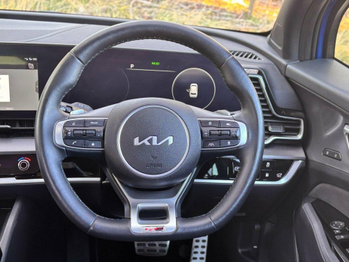 The 2023 Kia Sportage T-GDi GT-Line S is a versatile car with a petrol plug-in hybrid engine and four-wheel drive. The 1.6-litre engine meets Euro 6 emission standards. The GT-Line S trim includes a heated steering wheel for those frosty mornings, and a 360-degree around-view monitor to make parking a breeze. Stay connected on the go with Bluetooth music streaming and keep your devices charged with the wireless phone charger. The panorama sunroof adds an airy, open feel to the cabin, perfect for enjoying the scenery on long drives. With a generous boot space of 540 litres, the Kia Sportage offers ample room for luggage, shopping, or sports equipment, making it more practical than many similar vehicles. This car combines advanced technology with everyday usability, ensuring a comfortable and convenient driving experience.