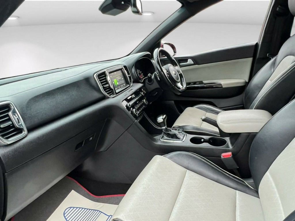 This 2016 Kia Sportage T GDi GT Line boasts a clear vehicle history, offering you peace of mind. This stylish SUV features a powerful 1.6 litre petrol engine paired with a four wheel drive system, ensuring confident handling in various conditions. Its Euro 6 emission class means it meets modern environmental standards. Inside, you'll find comfort and convenience with dual automatic air conditioning, heated outer rear seats, and a smart key entry system for effortless access. The GT Line trim level also includes front parking sensors to aid manoeuvring and Bluetooth connectivity for seamless music streaming and calls.Experience impressive performance with this Sportage, capable of accelerating from 0 to 60 miles per hour in just 8.8 seconds, demonstrating its dynamic capabilities. This model also stands out with its generous boot space, providing ample room for luggage, shopping, or sports equipment. Furthermore, its placement in a low insurance group indicates that running costs are kept competitive, making it an attractive option for many drivers. These highlights collectively position this Kia Sportage as a well rounded and practical choice. v power socket - front - centre console, 12v power socket - rear - centre console, 19in alloy wheels b-type, 3 x passenger assist grips, 4.2in supervision cluster with lcd tft colour display, 6-speaker system, 60-40 split folding 2nd row seats, 7in touchscreen, abs - anti lock braking system, airbags - driver, airbags - front side, airbags - passenger, airbags - twin curtain, alarm system, all-round 3-point seatbelts, all-round height adjustable headrests, ambient light - front centre console tray illumination, armrest - front centre console storage with silver stitching, armrest - rear centre, auto dimming rear-view mirror, automatic headlight control, automatic windscreen de-fog, aux connectivity, bluetooth with music streaming, body coloured door mirrors, centre cabin light, centre console storage, centre fascia - black high gloss, child safety rear door locks, coat hooks - rear, connected services with tomtom, cornering lights, cruise control, cupholders - rear, dab radio, dbc - downhill brake control, deadlocks, digital clock, door handles - body colour with satin chrome insert, door handles - body coloured and chrome, drive mode select, drivers seat height adjuster, drivers seat power lumbar support, drivers wide view door mirror, dual automatic air conditioning with ioniser, ebd - electronic brakeforce distribution, esc - electronic stability control, electrically folding door mirrors, emergency stop signalling - ess, engine immobiliser, engine start-stop button, european mapping, exhaust - dual, fog lights - led ice-cube, front cabin map light, front door courtesy reflectors, front grille - satin chrome surround, front parking sensors, front passenger airbag cut off switch, front seatback pockets, front wiper de-icer, front and rear electric windows with drivers auto up-down function, gt-line badge - rear, gt-line exterior styling pack, gt-line interior styling pack, glovebox - cooled, glovebox with illumination, grab-type exterior door handles, head rests - front active, headlight levelling system, headlights - follow me home function, headlights - high beam assist - hba, headlining - black, heated front seats, heated outer rear seats, hill-start assist control - hac, isofix child seat top tethers and anchor fixings, impact sensing auto door unlocking, integrated indicator lights led in door mirrors, internal door lock - unlock function, led daytime running lights, lane keep assist system - lkas, leather trimmed door armrests, leather trimmed gear shift, locking wheel nuts, luggage area light, luggage compartment - chrome sill guard, luggage compartment - hooks, luggage compartment - load cover, motor driven power steering - mdps, mouldings - side sill - black with satin chrome insert, mouldings - waistline - satin chrome, pollen filter, privacy glass - rear windows and tailgate, radiator grille - gloss black blade mesh, radio - mp3 compatiblity, rain sensing front wipers, rear air ventilation, rear lights - led, rear parking sensors, rear spoiler, reversing camera system, roll-over sensor, roof rails, satellite navigation, satellite navigation display - colour, satin chrome interior door handles, seatbelt - front with height adjustment, shark fin antenna, skid plates - front and rear - silver, smart key entry system, speed limit information function - slif, speed limiter, speed sensing auto door locking, stainless steel door scuff plates, stainless steel pedals, steering wheel - d-shaped sports leather with perforated inserts and gt-line logo, steering wheel - paddle shift, steering wheel mounted audio controls, storage - front doors, storage - rear doors, sunvisors with vanity mirrors illumination, tsa - trailer stability assist, tailgate - satin chrome insert, temporary spare wheel, tilt and telescopic steering wheel adjustment, tinted glass, traction control, traffic message channel - tmc, trip computer, tyre pressure monitoring system - tpms, usb connection, upholstery with silver stitching, visible vehicle identification number - vin, wheel arch - black with satin chrome insert, ipod connectivity