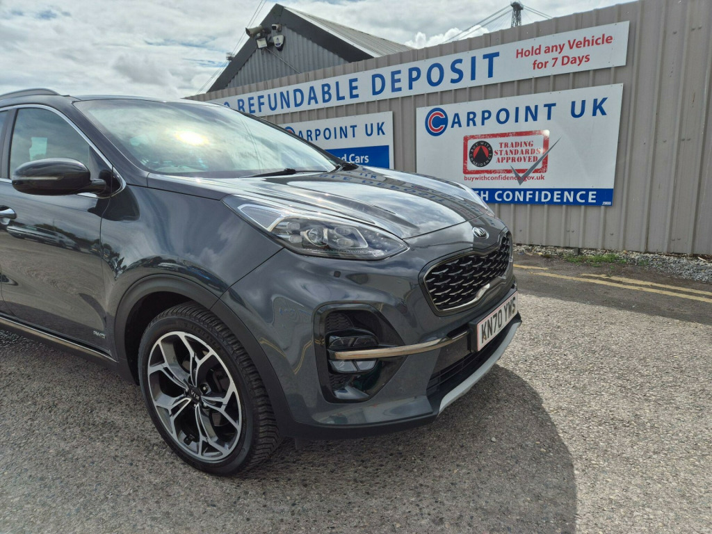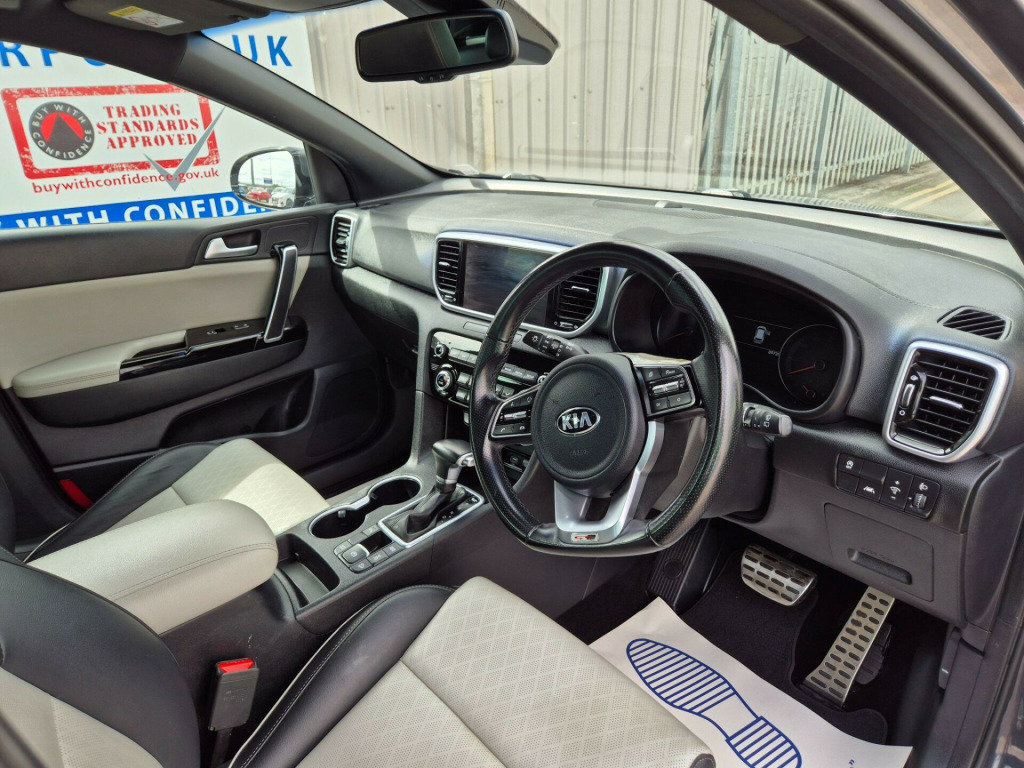 This 2020 Kia Sportage T-GDi GT-Line boasts a full service history, with its last service completed on 27 August 2025 at 89,731 miles, and an MOT valid until August 2026, offering excellent peace of mind. This one owner vehicle is a Euro 6 compliant model, powered by a 1.6 litre petrol engine and featuring Four Wheel Drive for confident handling in various conditions. Inside, you'll find a host of convenient features including Automatic Light Control with automatic headlights, Android Auto with Voice Control, and Bluetooth with Music Streaming. The GT-Line trim also benefits from LED Bi-Function Headlights and Dual Automatic Air Conditioning for enhanced comfort.The Kia Sportage T-GDi GT-Line is designed to impress, with a brisk 0-60mph acceleration time of just 8.8 seconds, demonstrating its responsive performance. This particular model also stands out with its low insurance group, making it an economical choice for many drivers. Furthermore, the generous boot space ensures practicality for everyday use and longer journeys, indicating how this Sportage is better equipped for carrying luggage and shopping compared to similar vehicles.. 12V Power Sockets - Front and Rear Consoles, 19in Alloy Wheels - GT Line, 3 x Passenger Assist Grips, 4.2in Supervision Colour Cluster Display, 6-Speaker System, 60-40 Split Folding Rear Seats, 8in Touchscreen Satellite Navigation with European Mapping and Traffic Messaging Channel - TMC, Advanced Anti-Theft System including Immobiliser and Alarm, All-Round 3-Point Seatbelts, All-Round Electric Windows with Drivers Auto Up-Down Function, All-Round Height Adjustable Headrests, Aluminium Door Scuff Plates, Aluminium Pedals, Android Auto with Voice Control, Anti-Lock Braking System - ABS with Electronic Brakeforce Distribution - EBD, Apple CarPlay with Voice Control, Auto Dimming Rear-View Mirror, Automatic Light Control, Black Wheel Arch Body Mouldings and Side Sills with Dark Chrome Insert, Bluetooth with Music Streaming, Body Coloured Door Mirrors, Body Coloured Exterior Door Handles with Chrome Insert, Centre Cabin Light, Centre Console Storage Box, Centre Fascia - Black High Gloss, Child Safety Rear Door Locks, Chrome Boot Sill Guard, Chrome Window Surrounds, Coat Hooks - Rear, Cruise Control with Speed Limiter, Cupholders in Rear Armrest, DAB Radio with MP3 Compatibility, Dark Chrome Front Bumper Insert, Dark Chrome Front Grille Surround, Door Deadlocks, Drive Mode Select, Driver Attention Warning - DAW, Driver and Passenger Sunvisors with Vanity Mirror and Illumination, Drivers Seat Manual Height Adjuster, Drivers Seat Power Lumbar Support, Drivers Wide View Door Mirror, Dual Automatic Air Conditioning, Electrically Folding-Adjustable and Heated Door Mirrors with LED Indicators, Electronic Parking Brake, Electronic Stability Control - ESC - with Downhill Brake Control - DBC, Emergency Stop Signalling - ESS, Engine Start-Stop Button with Smart Entry System, Front Cabin LED Map Light with Sunglasses Case, Front Door Courtesy Reflectors, Front Parking Sensors, Front Passenger Airbag Cut Off Switch, Front Seatback Pockets, Front Seatbelt Height Adjusters, Front Wiper De-Icer, Front and Rear Centre Armrests, Front and Rear Door Storage, Gear Shift Indicator, Glovebox with Illumination, Head Rests - Front Active, Headlights - High Beam Assist - HBA, Headlining - Black, Heated Front and Outer Rear Seats, High Gloss Black Blade Mesh Radiator Grille, Hill-Start Assist Control - HAC, ISOFIX Child Seat Top Tethers and Anchor Fixings, Impact Sensing Auto Door Unlocking, Interior Door Lock-Unlock Function, Kia Connected Services Featuring TomTom - Traffic - Speed Cameras - Local Search and Weather Updates, LED Bi-Function Headlights, LED Daytime Running Lights, LED Ice-Cube Front Fog Lights, LED Rear Tail Lights, Lane Keep Assist System - LKAS, Leather Trimmed Door Armrests, Leather Trimmed Gearshift, Locking Wheel Nuts, Luggage Area Light, Luggage Area Load Cover, Luggage Net Hooks, Privacy Glass - Rear Windows and Tailgate, Rain Sensing Front Wipers, Rear Parking Sensors, Rear Spoiler, Rear USB Charging Port, Rear Ventilation Duct, Reversing Camera System, Roof Rails, Satin Chrome Interior Door Handles, Shark Fin Antenna, Silver Painted Front and Rear Skid Plates, Speed Limit Information Function - SLIF, Speed Sensing Auto Door Locking, Steering Wheel - D-Shaped Sports Leather with Perforated Inserts and GT-Line Logo, Steering Wheel - Paddle Shift, Steering Wheel Mounted Audio Controls, TMK - Tyre Mobility Kit, TSA - Trailer Stability Assist, Telematics System with UVO Connect Services, Tilt and Telescopic Steering Wheel Adjustment, Tinted Glass, Trip Computer, Twin Curtain Airbags with Roll-Over Sensor, Twin Front Airbags, Twin Side Airbags - Front, Tyre Pressure Monitoring System - TPMS, USB Port for Connection of a Media Device, Visible Vehicle Identification Number - VIN, Welcome and Follow-Me-Home Light Functionality, Windscreen Washer Level Warning, Leather - Grey & Black. Full service history