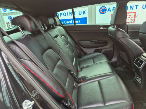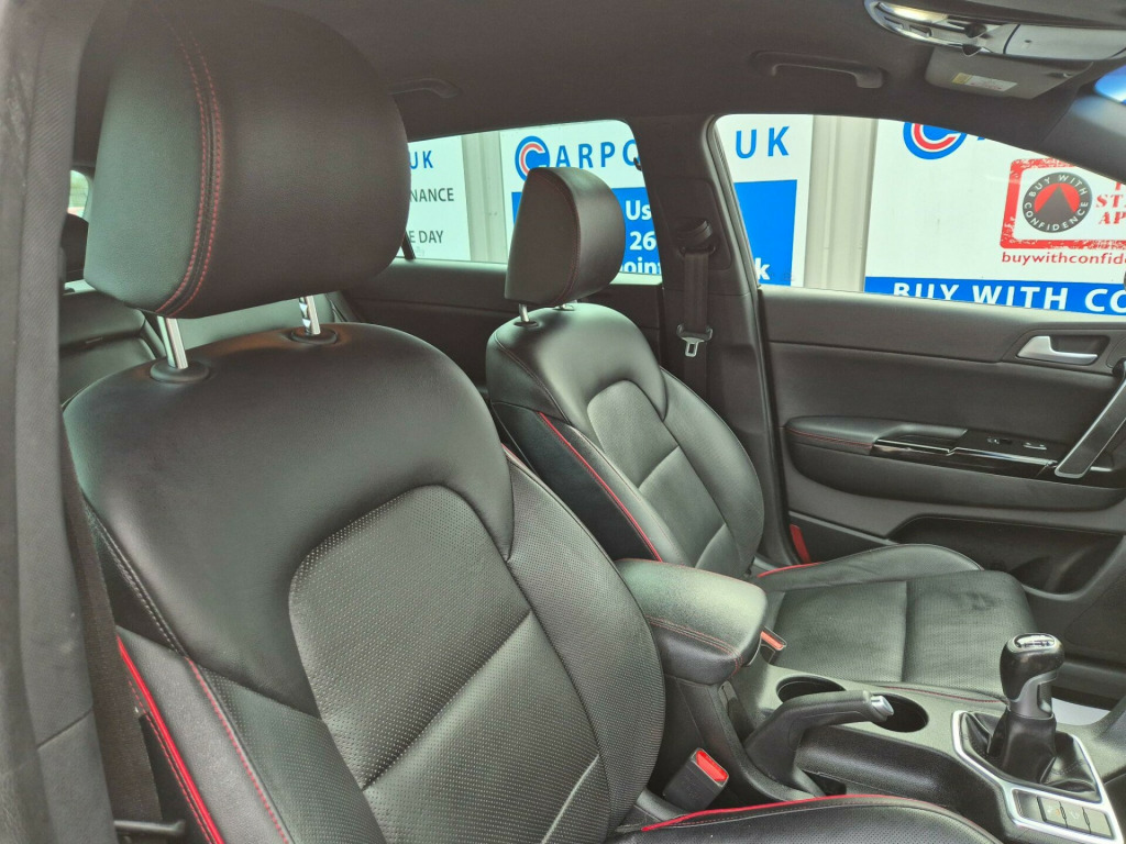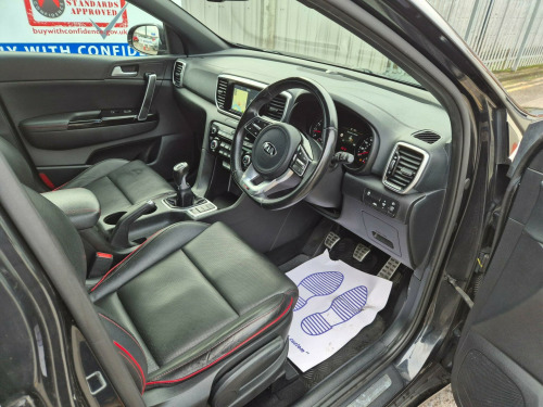 With an MOT valid until February 2027 and a full service history, this 2018 Kia Sportage T-GDi GT-Line offers excellent peace of mind. This stylish SUV is powered by a 1.6 litre petrol engine, meeting Euro 6 emissions standards. It boasts a range of impressive features including LED Bi-Function headlights with adaptive lighting, a reversing camera system for easier parking, and automatic headlight control. Inside, you'll appreciate the dual automatic air conditioning with climate control, and seamless integration of your smartphone with Apple CarPlay and Android Auto.The Sportage GT-Line stands out with its brisk 0-60mph acceleration in just 8.9 seconds, demonstrating its lively performance. Its low insurance group rating means more affordable running costs compared to similar vehicles. Furthermore, the generous boot space provides ample room for luggage, shopping, or equipment, making it a practical choice for families and individuals alike. This combination of performance, practicality, and advanced features makes this Kia Sportage a compelling option.. 12V Power Sockets - Front and Rear Consoles, 19in Alloy Wheels B-Type, 3 x Passenger Assist Grips, 4.2in Supervision Colour Cluster Display, 6-Speaker System, 60-40 Split Folding Rear Seats, 7in Touchscreen Satellite Navigation with European Mapping with Traffic Message Channel - TMC, Advanced Anti-Theft System including Immobiliser and Alarm, All-Round 3-Point Seatbelts, All-Round Electric Windows with Drivers Auto Up-Down Function, All-Round Height Adjustable Headrests, Anti-Lock Braking System - ABS with Electronic Brakeforce Distribution - EBD, Apple CarPlay and Android Auto, Auto Dimming Rear-View Mirror, Automatic Headlight Control, Black Wheel Arch Body Mouldings and Side Sills with Dark Chrome Insert, Bluetooth with Voice Recognition and Music Streaming, Body Coloured Door Mirrors, Body Coloured Exterior Door Handles with Chrome Insert, Centre Cabin Light, Centre Console Storage Box, Centre Fascia - Black High Gloss, Child Safety Rear Door Locks, Chrome Boot Sill Guard, Chrome Window Surrounds, Coat Hooks - Rear, Cruise Control with Speed Limiter, Cupholders in Rear Armrest, DAB Radio with MP3 Compatibility, Dark Chrome Front Grille Surround, Door Deadlocks, Driver and Passenger Sunvisors with Vanity Mirror and Illumination, Drivers Seat Power Lumbar Support, Drivers Wide View Door Mirror, Dual Automatic Air Conditioning, Electrically Folding-Adjustable and Heated Door Mirrors with LED Indicators, Electronic Stability Control - ESC - with Downhill Brake Control - DBC, Emergency Stop Signalling - ESS, Engine Start-Stop Button with Smart Entry System, Exhaust - Dual, Front Cabin LED Map Light with Sunglasses Case, Front Door Courtesy Reflectors, Front Parking Sensors, Front Passenger Airbag Cut Off Switch, Front Seatback Pockets, Front Seatbelt Height Adjusters, Front Wiper De-Icer, Front and Rear Centre Armrests, Front and Rear Door Storage, Gear Shift Indicator, Glovebox with Illumination, Head Rests - Front Active, Headlights - High Beam Assist - HBA, Headlining - Black, Heated Front and Outer Rear Seats, Hill-Start Assist Control - HAC, ISOFIX Child Seat Top Tethers and Anchor Fixings, Impact Sensing Auto Door Unlocking, Interior Door Lock-Unlock Function, Kia Connected Services Featuring TomTom - Traffic - Speed Cameras - Local Search and Weather Updates, LED Bi-Function Headlights with Auto Levelling and Adaptive Lighting System, LED Daytime Running Lights, LED Ice-Cube Front Fog Lights, LED Rear Tail Lights, Lane Keep Assist System - LKAS, Leather Trimmed Door Armrests, Leather Trimmed Gearshift, Locking Wheel Nuts, Luggage Area Light, Luggage Area Load Cover, Luggage Net Hooks, Power Steering, Privacy Glass - Rear Windows and Tailgate, Radiator Grille - Gloss Black Blade Mesh, Rain Sensing Front Wipers, Rear Parking Sensors, Rear Spoiler, Rear Ventilation Duct, Reversing Camera System, Roof Rails, Satin Chrome Interior Door Handles, Shark Fin Antenna, Silver Painted Front and Rear Skid Plates, Speed Limit Information Function - SLIF, Speed Sensing Auto Door Locking, Stainless Steel Door Scuff Plates, Stainless Steel Pedals, Steering Wheel - D-Shaped Sports Leather with Perforated Inserts and GT-Line Logo, Steering Wheel Mounted Audio Controls, TMK - Tyre Mobility Kit, TSA - Trailer Stability Assist, Tilt and Telescopic Steering Wheel Adjustment, Tinted Glass, Trip Computer - Distance - Fuel Consumption - Average Speed, Twin Curtain Airbags with Roll-Over Sensor, Twin Front Airbags, Twin Side Airbags - Front, Tyre Pressure Monitoring System - TPMS, USB and AUX Ports for Connection of an Audio Media Device - iPod - Memory Stick, Visible Vehicle Identification Number - VIN, Welcome and Follow-Me-Home Light Functionality, Windscreen Washer Level Warning, Leather - Black with Red Piping and Stitching. Full service history