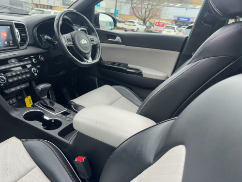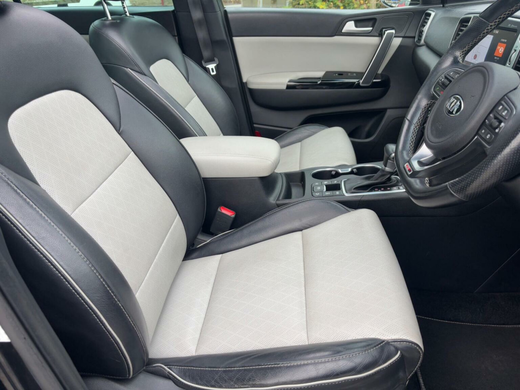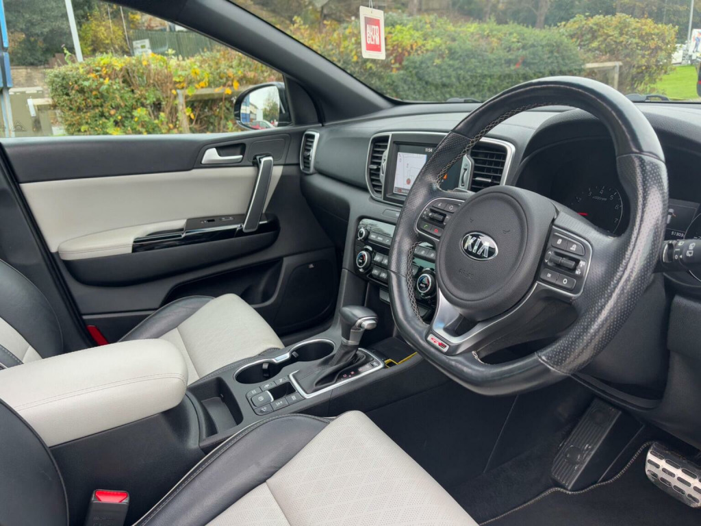 WE ARE PLEASED TO OFFER THIS HIGHLY DESIRABLE HIGH SPECIFICATION HIGHLY MAINTAINED RARE LOW OWNERSHIP PETROL AUTOMATIC KIA SPORTAGE 1.6 T-GDi GT-LINE S DCT AWD EURO SIX FIVE DOOR WHICH IS FINISHED IN THE BEST COLOUR OF BLACK PEARLESCENT AND IS COMPLEMENTED WITH A TWO TONE BLACK AND LIGHT GREY LEATHER UPHOLSTERY + ONLY 51,295 MILES HAS BEEN COVERED IN TOTAL BY ONE OWNER AND IS BACKED WITH AN EXCELLENT FULL SERVICE HISTORY WHICH IS COMPRISED OF EIGHT SERVICES + THE SERVICES HAVE BEEN CARRIED OUT AT 7627 MILES, 14795 MILES, 18925 MILES, 22940 MILES, 27607 MILES, 32981 MILES, 37839 MILES, 46580 MILES AND 50101 MILES + THE MOT IS TILL THE 9TH OF SEPTEMBER 2026 + OUTSTANDING CONDITION THROUGHOUT AND DRIVES SUPERB + 174 BHP MODEL + FULL GT-LINE S SPECIFICATION WHICH INCLUDES AN ELECTRIC PANORAMIC TILT N SLIDE GLASS SUNROOF / SATELLITE NAVIGATION / FRONT AND REAR PARKING DISTANCE CONTROL WITH REVERSING CAMERA PLUS PARK ASSIST / HEATED FRONT AND REAR SEATS PLUS HEATED STEERING WHEEL / CRUISE CONTROL / APPLE AND ANDROID CAR PLAY / FULL ELECTRIC PACK WITH POWERFOLD DOOR MIRRORS PLUS ELECTRIC ADJUSTABLE DRIVERS SEAT / DAB TUNER / MEDIA PACK / TINTED GLASS / 19 B TYOE ALLOY WHEELS / JBL PREMIUM SOUND PACK PLUS MUCH MORE + HANDBOOK PACK + FULLY STAMPED SERVICE BOOK + 2 X KEYS + ANY TRIAL OR INSPECTION IS WELCOMED + HPI CLEAR WITH CERTIFICATE + SIX MONTHS NATIONWIDE WARRANTY IS INCLUDED + KIA BUILD QUALITY + VIEWING IS ESSENTIAL TO APPRECIATE THIS TRULY CHERISHED EXAMPLE OF THIS MUCH SOUGHT AFTER SUV. We have been established in Baildon for over 20 years. All our vehicles are fully inspected, prepared and valeted. We are finance specialists. Part exchange is welcome. All major credit and debits accepted. Open 7 days. Our postcode is BD177EX.
