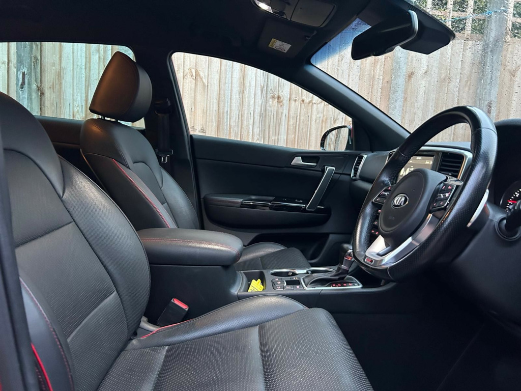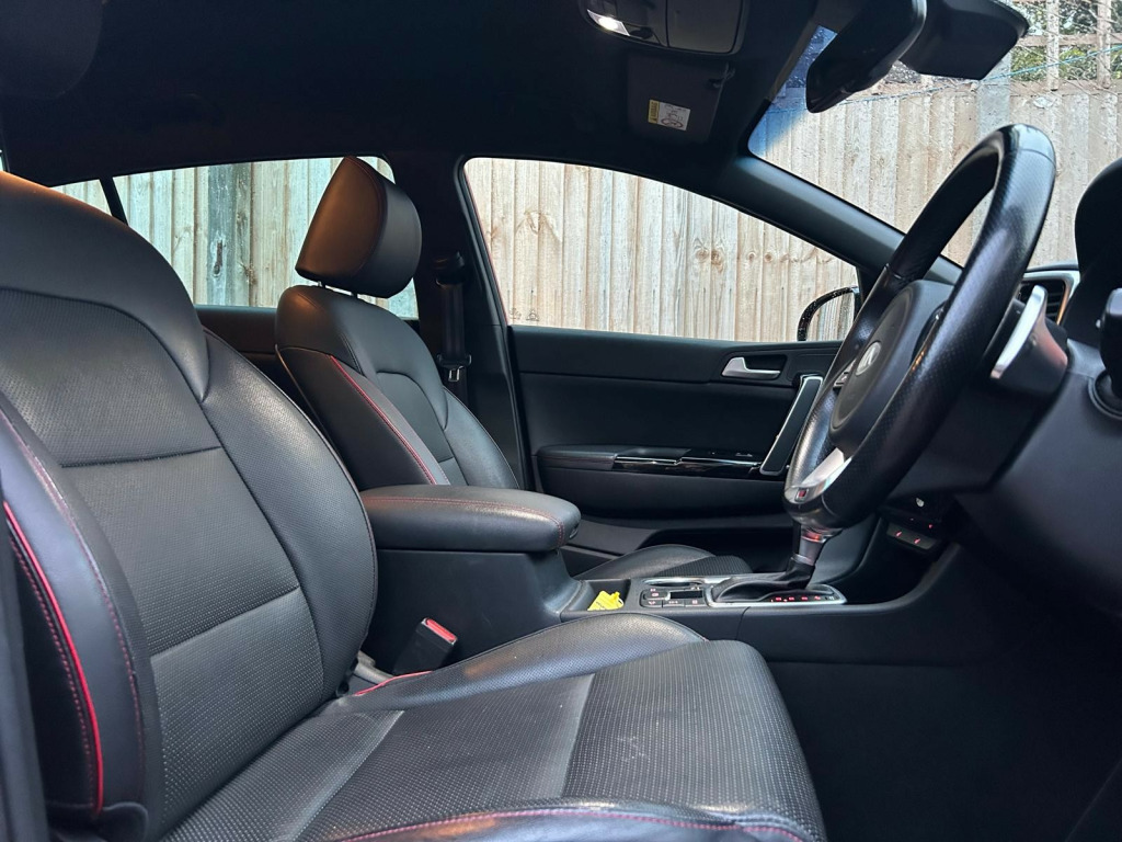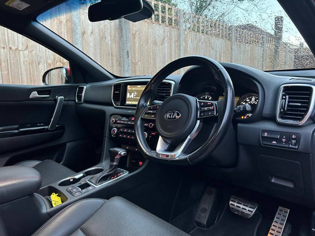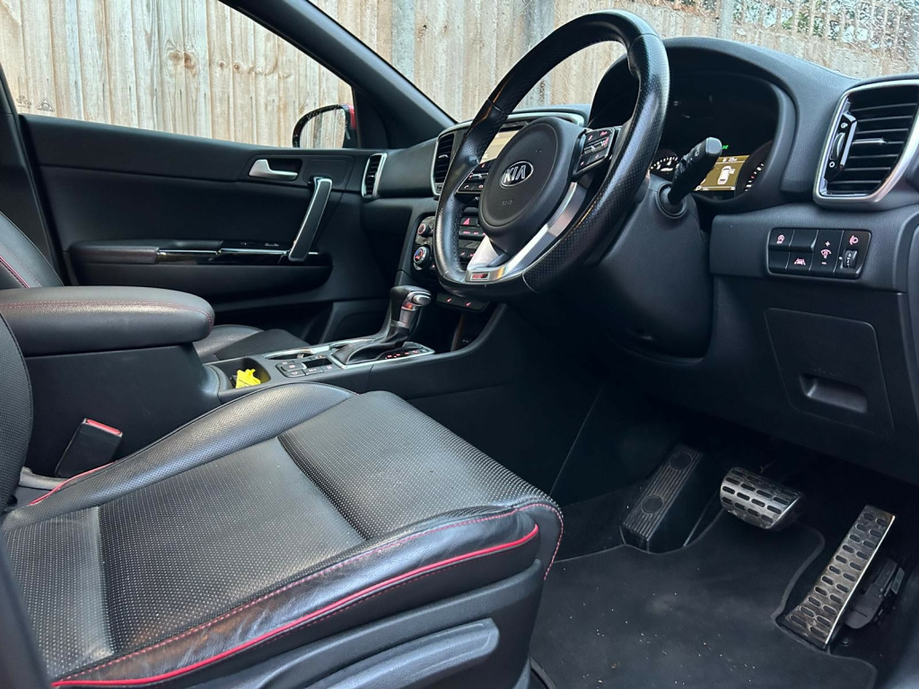 This 2019 Kia Sportage 1.6 T-GDi GT-Line SUV, with 56682 miles on the clock, is a stylish and capable SUV powered by a petrol engine. Its MOT expires on 08/08/2026, offering peace of mind to the next owner. This Euro 6 (s/s) vehicle boasts 174 bhp, ensuring a powerful driving experience. Inside, the car is well-equipped with features such as 12V Power Sockets, a 4.2in Supervision Colour Cluster Display, a 6-Speaker System, and a 7in Touchscreen Satellite Navigation system with European Mapping and Traffic Message Channel - TMC. Additionally, this car includes Apple CarPlay and Android Auto, making it easy to stay connected on the go. Whether for daily commuting or weekend adventures, this Kia Sportage ticks all the boxes for a modern and practical SUV. Full Main Dealer Service History , Ghost Immobiliser. v power sockets - front and rear consoles, 4.2in supervision colour cluster display, 6-speaker system, 7in touchscreen satellite navigation with european mapping with traffic message channel - tmc, apple carplay and android auto, bluetooth with voice recognition and music streaming, dab radio with mp3 compatibility, kia connected services featuring tomtom - traffic - speed cameras - local search and weather updates, shark fin antenna, usb and aux ports for connection of an audio media device - ipod - memory stick, 19in alloy wheels b-type, all-round electric windows with drivers auto up-down function, black wheel arch body mouldings and side sills with dark chrome insert, body coloured door mirrors, body coloured exterior door handles with chrome insert, chrome window surrounds, dark chrome front grille surround, drivers wide view door mirror, electrically folding-adjustable and heated door mirrors with led indicators, exhaust - dual, locking wheel nuts, privacy glass - rear windows and tailgate, radiator grille - gloss black blade mesh, rear spoiler, roof rails, stainless steel door scuff plates, tmk - tyre mobility kit, tinted glass, 3 x passenger assist grips, 60-40 split folding rear seats, all-round height adjustable headrests, auto dimming rear-view mirror, centre cabin light, centre console storage box, centre fascia - black high gloss, chrome boot sill guard, coat hooks - rear, cupholders in rear armrest, driver and passenger sunvisors with vanity mirror and illumination, drivers seat power lumbar support, dual automatic air conditioning, front cabin led map light with sunglasses case, front door courtesy reflectors, front seatback pockets, front wiper de-icer, front and rear centre armrests, front and rear door storage, glovebox with illumination, head rests - front active, headlining - black, heated front and outer rear seats, leather trimmed door armrests, leather trimmed gearshift, luggage area light, luggage area load cover, luggage net hooks, rain sensing front wipers, rear ventilation duct, satin chrome interior door handles, stainless steel pedals, steering wheel - d-shaped sports leather with perforated inserts and gt-line logo, steering wheel - paddle shift, steering wheel mounted audio controls, tilt and telescopic steering wheel adjustment, advanced anti-theft system including immobiliser and alarm, all-round 3-point seatbelts, anti-lock braking system - abs with electronic brakeforce distribution - ebd, child safety rear door locks, door deadlocks, electronic stability control - esc - with downhill brake control - dbc, emergency stop signalling - ess, engine start-stop button with smart entry system, front passenger airbag cut off switch, front seatbelt height adjusters, hill-start assist control - hac, isofix child seat top tethers and anchor fixings, impact sensing auto door unlocking, interior door lock-unlock function, lane keep assist system - lkas, silver painted front and rear skid plates, speed limit information function - slif, speed sensing auto door locking, tsa - trailer stability assist, twin curtain airbags with roll-over sensor, twin front airbags, twin side airbags - front, visible vehicle identification number - vin, automatic headlight control, headlights - high beam assist - hba, led bi-function headlights with auto levelling and adaptive lighting system, led daytime running lights, led ice-cube front fog lights, led rear tail lights, welcome and follow-me-home light functionality, cruise control with speed limiter, drive mode select, front parking sensors, power steering, rear parking sensors, reversing camera system, trip computer - distance - fuel consumption - average speed, tyre pressure monitoring system - tpms, windscreen washer level warning