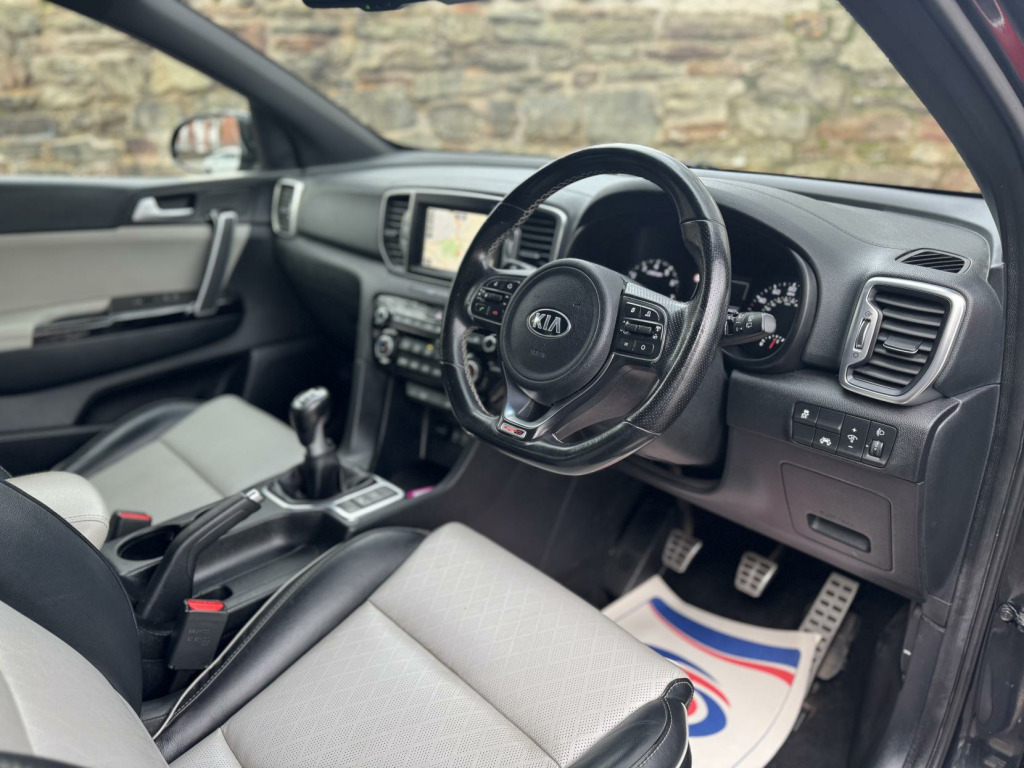 2017 (67 Plate) Kia Sportage 1.6 T-GDi GT-Line SUV 5dr Petrol Manual Euro 6 (174 bhp) in black metallic coachwork, with just 56’614 miles.