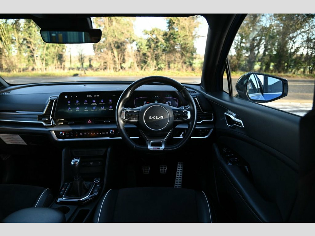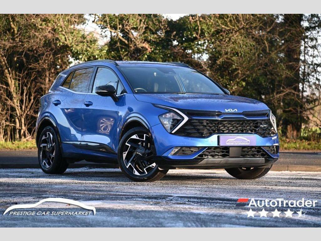 Prestige Car Supermarket in York presents this 2022 Kia Sportage 1.6 T-GDi GT-Line SUV, a Euro 6 petrol manual producing 148 bhp and finished in striking Blue Flame metallic with 19in alloy wheels, silver roof rails and distinctive GT-Line exterior detailing. The interior is trimmed in black suede leather with quilted design, complemented by a black headlining and a D-shaped perforated leather GT-Line steering wheel. Technology is a strong highlight, featuring a 12.3in navigation display, 4.2in supervision colour cluster, Android Auto and Apple CarPlay with voice control, Bluetooth connectivity and a six-speaker audio system. Comfort and practicality are enhanced by three-zone climate control, all-round electric windows, rear privacy glass, a 40-20-40 split folding rear seat, rear ventilation ducts and generous luggage space with load cover and net hooks. Driver assistance and safety systems include forward collision-avoidance assist with pedestrian and cyclist detection, lane following assist, lane keeping assist, intelligent speed limit assist, cruise control with speed limiter, front and rear parking sensors and a rear-view monitor with reversing camera. Additional features such as keyless entry with start-stop button, electronic parking brake, drive mode select, LED headlights and fog lamps, rain sensing wipers and trailer stability assist make this Sportage GT-Line a well-equipped, stylish and highly capable modern SUV. Suede Leather with Quilt Design - Black, Blue Flame, 12.3in Display with Navigation, 12v Power Socket - Front Centre Fascia a, 19in Alloy Wheels, 2nd Row Personal Lamp, 3 x Passenger Assist Grips, 4.2in Supervision Colour Cluster Display, 40-20-40 Split Folding Rear Seats, 6-Speaker System, Advanced Anti-Theft System including Imm, All-Round 3-Point Seatbelts, All-Round Electric Windows with Driver a, All-round Height Adjustable Headrests, Aluminium Pattern Finish Centre Fascia a, Android Auto and Apple Carplay with Voic, Anti-Lock Braking System - ABS, Auto Window Defogger, Automatic Headlight Control, Backlite Glass Heated with Timer, Bluetooth with Music Streaming, Body Colour Door Garnis