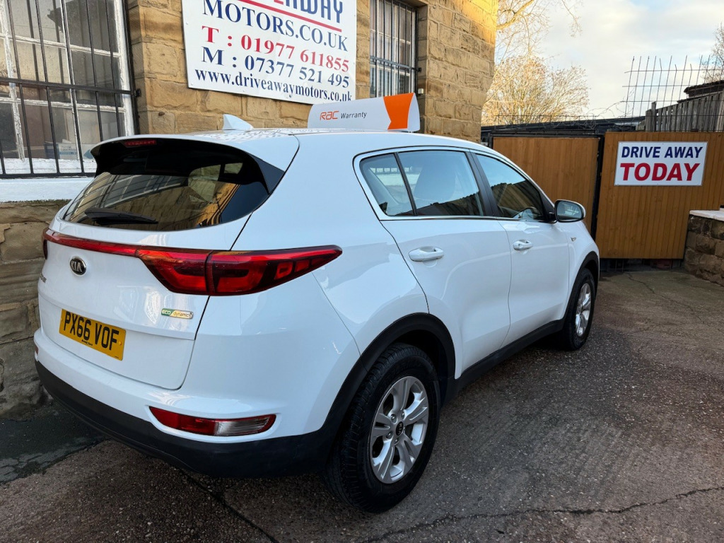 2016 KIA SPORTAGE 1.7 DIESEL 5 DOOR WHITE, 12 MONTHS MOT, OIL & FILTER SERVICE, £35 ROAD TAX, EXCELLENT CONDITION THROUGHOUT, 12 MONTHS FREE RAC ROADSIDE COVER, RAC PLATINUM WARRANTY, PROFESSIONALLY VALETED, CLEAR ON EXPERIAN, £100 DEPOSIT SECURES THIS VEHICLE, DRIVEAWAY TODAY! Driveaway Motors is centrally located in the village of Ackworth, West Yorkshire, WF7 7HY, close to Doncaster, Barnsley, Wakefield, Pontefract and Castleford, Excellent reviews, Established 2011, Over 20 vehicles in stock, Finance available with no deposit, Extended warranty available, Part exchange considered, New vehicles arriving daily please visit driveawaymotors.co.uk, If you require any further information then please do not hesitate to contact us, Next MOT due 16/12/2026, Last serviced on 02/12/2025 at 87,934 miles, Part service history, 5 seats, White, Any inspection, viewing or test drive welcome, £6,750. , This car comes with:, 12V Power Socket - Front - Centre Console, 16in Alloy Wheels, 3 x Passenger Assist Grips, 6-Speaker System, 60-40 Split Folding 2nd Row Seats, ABS - Anti Lock Braking System, Air Conditioning, Alarm System, All-Round 3-Point Seatbelts, All-Round Height Adjustable Headrests, Ambient Light - Front Centre Console Tray Illumination, Armrest - Centre Console with Storage, Armrest - Rear Centre, Aux Connectivity, Bluetooth with Music Streaming, Body Coloured Door Mirrors, Body Coloured Exterior Door Handles, CD Player, Centre Cabin Light, Centre Console Storage, Child Safety Rear Door Locks, Chrome Beltline Mouldings, Chrome Front Grille Surround, Coat Hooks - Rear, Cornering Lights, Cruise Control, Cupholders - Rear, DAB Radio, DBC - Downhill Brake Control, Deadlocks, Digital Clock, Drivers Seat Height Adjuster, EBD - Electronic Brakeforce Distribution, ESC - Electronic Stability Control, EcoDynamics Badge, Electric Windows - Front and Rear with Drivers Auto Down Function, Electrically Adjustable Door Mirrors, Emergency Stop Signalling - ESS, Engine Immobiliser, Front Cabin Map Light, Front Door Courtesy Reflectors, Front Fog Lights, Front Passenger Airbag Cut Off Switch, Front Seatback Pockets, Gear Shift Indicator, Glovebox with Illumination, Grab-Type Exterior Door Handles, Head Rests - Front Active, Headlight Levelling System, Hill-Start Assist Control - HAC, ISOFIX Child Seat Top Tethers and Anchor Fixings, Ignition Keyhole Illumination, Impact Sensing Auto Door Unlocking, Internal Door Lock - Unlock Function, LED Daytime Running Lights, Leather Trimmed Gear Shift, Leather Trimmed Steering Wheel, Light Grey Headlining, Luggage Area Light, Luggage Compartment - Hooks, Luggage Compartment - Load Cover, Metallic Finish Centre Fascia Trim, Metallic Finish Interior Door Handles, Motor Driven Power Steering - MDPS, Mouldings - Side Sill - Black, Pollen Filter, Radiator Grille - Black Diamond Mesh, Radio - MP3 Compatiblity, Rear Air Ventilation, Rear Spoiler, Remote Central Locking with Folding Key, Roll-Over Sensor, Seatbelt - Front with Height Adjustment, Speed Limiter, Speed Sensing Auto Door Locking, Steering Wheel Mounted Audio Controls, Storage - Front Doors, Storage - Rear Doors, Sunvisors with Vanity Mirrors Illumination, TSA - Trailer Stability Assist, Tilt and Telescopic Steering Wheel Adjustment, Tinted Glass, Traction Control, Trip Computer, Tyre Pressure Monitoring System - TPMS, USB Connection, Visible Vehicle Identification Number - VIN, Voice Control, Wheel Arch - Black, iPod Connectivity.