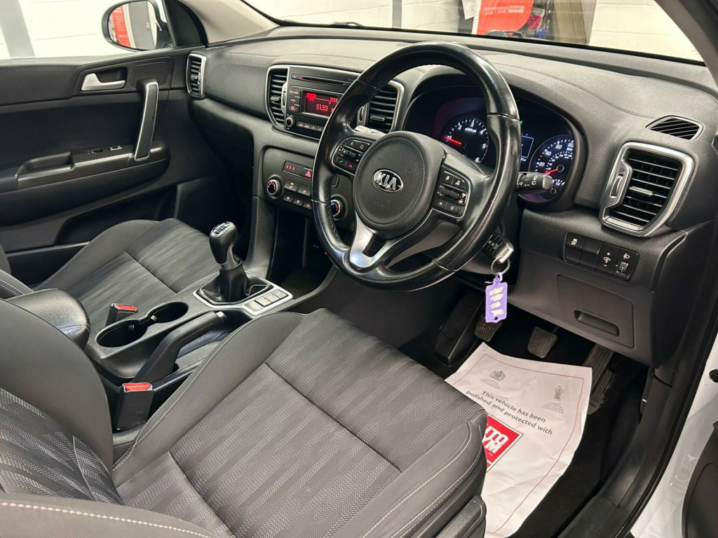 Viewings by appointment . + . Award winning, 5* Rated dealership . + . Nationwide delivery available . + . See our walk around video. JUST THIRTY FIVE POUNDS ROAD TAX! REAR PARKING SENSORS/4x BRAND NEW TYRES and a full PDI Completed. Discover this 2016 Kia Sportage CRDi 1, a well presented example of this popular family SUV. Powered by a 1.7 litre diesel engine, this Euro 6 compliant model offers an impressive fuel economy of up to 61 miles per gallon. Inside, you will find essential comfort features including air conditioning to keep you cool, and Bluetooth connectivity with music streaming so you can enjoy your favourite tunes on the go.This Kia Sportage stands out with its low CO2 emissions, contributing to a more environmentally conscious drive. Furthermore, its low insurance group rating means potentially lower running costs, making it an economical choice. You will also appreciate the generous boot space, perfect for carrying shopping, luggage, or sports equipment, making this Sportage a practical and sensible option for everyday life.All of our strict PDI processes have been completed, signed off along with certificates and its also received a fresh service by us so it's ready to go . + . Please view our website to see what we offer as a dealership along with details of our processes to ensure peace of mind motoring for all of our customers . + ., v power socket - front - centre console, 12v power socket - rear - centre console, 16in alloy wheels, 3 x passenger assist grips, 6-speaker system, 60-40 split folding 2nd row seats, abs - anti lock braking system, air conditioning, airbags - driver, airbags - front side, airbags - passenger, airbags - twin curtain, alarm system, all-round 3-point seatbelts, all-round height adjustable headrests, ambient light - front centre console tray illumination, armrest - centre console with storage, armrest - rear centre, aux connectivity, bluetooth with music streaming, body coloured door mirrors, body coloured exterior door handles, cd player, centre cabin light, centre console storage, child safety rear door locks, chrome beltline mouldings, chrome front grille surround, coat hooks - rear, cornering lights, cruise control, cupholders - rear, dab radio, dbc - downhill brake control, deadlocks, digital clock, drivers seat height adjuster, ebd - electronic brakeforce distribution, esc - electronic stability control, ecodynamics badge, electric windows - front and rear with drivers auto down function, electrically adjustable door mirrors, emergency stop signalling - ess, engine immobiliser, front cabin map light, front door courtesy reflectors, front fog lights, front passenger airbag cut off switch, front seatback pockets, gear shift indicator, glovebox with illumination, grab-type exterior door handles, head rests - front active, headlight levelling system, hill-start assist control - hac, isofix child seat top tethers and anchor fixings, ignition keyhole illumination, impact sensing auto door unlocking, internal door lock - unlock function, led daytime running lights, leather trimmed gear shift, leather trimmed steering wheel, light grey headlining, locking wheel nuts, luggage area light, luggage compartment - hooks, luggage compartment - load cover, metallic finish centre fascia trim, metallic finish interior door handles, motor driven power steering - mdps, mouldings - side sill - black, pollen filter, radiator grille - black diamond mesh, radio - mp3 compatiblity, rear air ventilation, rear spoiler, remote central locking with folding key, roll-over sensor, seatbelt - front with height adjustment, speed limiter, speed sensing auto door locking, steering wheel mounted audio controls, storage - front doors, storage - rear doors, sunvisors with vanity mirrors illumination, tsa - trailer stability assist, temporary spare wheel, tilt and telescopic steering wheel adjustment, tinted glass, traction control, trip computer, tyre pressure monitoring system - tpms, usb connection, visible vehicle identification number - vin, voice control, wheel arch - black, ipod connectivity