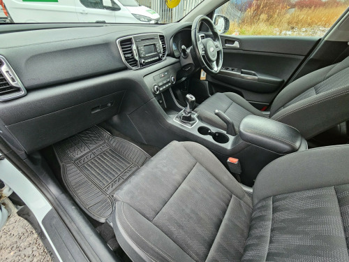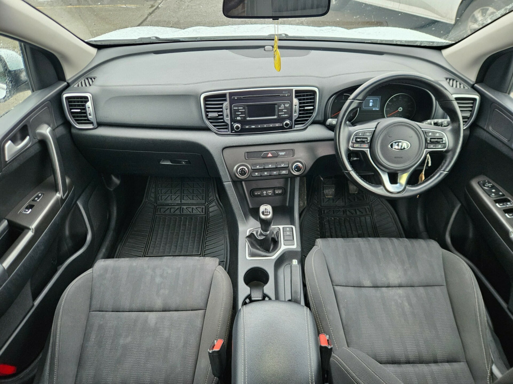 This 2018 Kia Sportage 1.7 CRDi 1 SUV with 5 doors and 5 seats has a mileage of 90000 and runs on diesel. It is ULEZ compliant and comes with an MOT that expires on 05/06/2026. This Euro 6 (s/s) vehicle is equipped with a 114 bhp engine and includes features such as 12V Power Sockets in the front and rear consoles, a 6-Speaker System, Bluetooth with Voice Recognition and Music Streaming, CD Player, and DAB Radio with MP3 Compatibility. This SUV is perfect for those looking for a reliable and fuel-efficient vehicle, suitable for both urban and long-distance driving. v power sockets - front and rear consoles, 6-speaker system, bluetooth with voice recognition and music streaming, cd player, dab radio with mp3 compatibility, usb and aux ports for connection of an audio media device - ipod - memory stick, 16in alloy wheels, all-round electric windows with drivers auto down function, black side sill and wheel arch body mouldings, body coloured door mirrors, body coloured exterior door handles, chrome beltline mouldings, chrome front grille surround, ecodynamics badge, electrically adjustable door mirrors, locking wheel nuts, radiator grille - black diamond mesh, rear spoiler, temporary spare wheel, tinted glass, 3 x passenger assist grips, 60-40 split folding 2nd row seats, air conditioning, all-round height adjustable headrests, centre cabin light, centre console storage box, coat hooks - rear, cupholders in rear armrest, driver and passenger sunvisors with vanity mirror and illumination, drivers seat height adjuster, front cabin map light, front door courtesy reflectors, front seatback pockets, front and rear centre armrests, front and rear door storage, glovebox with illumination, head rests - front active, ignition keyhole illumination, leather trimmed gear shift, leather trimmed steering wheel, light grey headlining, luggage area light, luggage area load cover, luggage net hooks, metallic finish centre fascia trim, metallic finish interior door handles, rear ventilation duct, steering wheel mounted audio controls, tilt and telescopic steering wheel adjustment, advanced anti-theft system including immobiliser and alarm, all-round 3-point seatbelts, anti-lock braking system - abs with electronic brakeforce distribution - ebd, child safety rear door locks, door deadlocks, electronic stability control - esc - with downhill brake control - dbc, emergency stop signalling - ess, front passenger airbag cut off switch, front seatbelt height adjusters, hill-start assist control - hac, isofix child seat top tethers and anchor fixings, impact sensing auto door unlocking, interior door lock-unlock function, remote central door locking with fold-away key, speed sensing auto door locking - dealer-activated feature, tsa - trailer stability assist, twin curtain airbags with roll-over sensor, twin front airbags, twin side airbags - front, visible vehicle identification number - vin, cruise control with speed limiter, digital clock, gear shift indicator, rack mounted motor driven power steering - r-mdps, trip computer - distance - fuel consumption - average speed, tyre pressure monitoring system - tpms, front fog lights, led daytime running lights, manual headlight levelling device