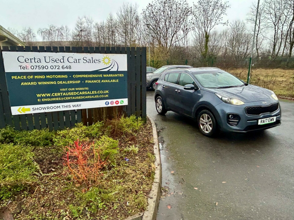 Viewings by appointment . + . Award winning, 5* Rated dealership . + . Nationwide delivery available . + . See our walk around video. This 2017 Kia Sportage CRDi 2 is a well maintained example, offering a superb blend of practicality and efficiency. Powered by a 1.7 litre diesel engine, this Euro 6 compliant model boasts impressive fuel economy, achieving up to 61 miles per gallon. The '2' trim level ensures a comfortable and convenient driving experience, featuring dual automatic air conditioning with an ioniser for climate control, a reversing camera system with rear parking assistance, and rear parking sensors. Stay connected on the go with Bluetooth connectivity for handsfree calls and music streaming, while automatic headlight control adds further ease to your journeys.Beyond its comprehensive features, this Kia Sportage stands out with its low CO2 emissions, contributing to a more environmentally conscious drive. Its low insurance group rating makes it an economical choice for many drivers, and the generous boot space provides ample room for luggage, shopping, or sports equipment. These highlights demonstrate how this Sportage offers excellent value and a superior ownership experience compared to other vehicles in its class.All of our strict PDI processes have been completed, signed off along with certificates and it's also received a fresh service by us so it's ready to go . + . Please view our website to see what we offer as a dealership along with details of our processes to ensure peace of mind motoring for all of our customers . + ., v power socket - front - centre console, 12v power socket - rear - centre console, 17in alloy wheels, 3 x passenger assist grips, 6-speaker system, 60-40 split folding 2nd row seats, 7in touchscreen, abs - anti lock braking system, airbags - driver, airbags - front side, airbags - passenger, airbags - twin curtain, alarm system, all-round 3-point seatbelts, all-round height adjustable headrests, ambient light - front centre console tray illumination, armrest - centre console with storage, armrest - rear centre, auto dimming rear-view mirror, automatic headlight control, automatic windscreen de-fog, aux connectivity, bluetooth with music streaming, body coloured door mirrors, centre cabin light, centre console storage, child safety rear door locks, chrome beltline mouldings, chrome front grille surround, coat hooks - rear, connected services with tomtom, cornering lights, cruise control, cupholders - rear, dab radio, dbc - downhill brake control, deadlocks, digital clock, door handles - body coloured and chrome, drivers seat height adjuster, drivers seat power lumbar support, drivers wide view door mirror, dual automatic air conditioning with ioniser, ebd - electronic brakeforce distribution, esc - electronic stability control, ecodynamics badge, electrically folding door mirrors, emergency stop signalling - ess, engine immobiliser, european mapping, front cabin map light, front door courtesy reflectors, front fog lights, front passenger airbag cut off switch, front seatback pockets, front and rear electric windows with drivers auto up-down function, gear shift indicator, glovebox - cooled, glovebox with illumination, grab-type exterior door handles, head rests - front active, headlight levelling system, headlights - follow me home function, headlights - high beam assist - hba, hill-start assist control - hac, isofix child seat top tethers and anchor fixings, ignition keyhole illumination, impact sensing auto door unlocking, integrated indicator lights led in door mirrors, internal door lock - unlock function, led daytime running lights, lane keep assist system - lkas, leather trimmed door armrests, leather trimmed gear shift, leather trimmed steering wheel, light grey headlining, locking wheel nuts, luggage area light, luggage compartment - hooks, luggage compartment - load cover, metallic finish centre fascia trim, motor driven power steering - mdps, mouldings - side sill - black, pollen filter, privacy glass - rear windows and tailgate, radiator grille - gloss black diamond mesh, radio - mp3 compatiblity, rain sensing front wipers, rear air ventilation, rear parking sensors, rear spoiler, remote central locking with folding key, reversing camera system, roll-over sensor, roof rails, satellite navigation, satellite navigation display - colour, satin chrome interior door handles, seatbelt - front with height adjustment, shark fin antenna, speed limit information function - slif, speed limiter, speed sensing auto door locking, steering wheel mounted audio controls, storage - front doors, storage - rear doors, sunvisors with vanity mirrors illumination, tsa - trailer stability assist, temporary spare wheel, tilt and telescopic steering wheel adjustment, tinted glass, traction control, traffic message channel - tmc, trip computer, tyre pressure monitoring system - tpms, usb connection, visible vehicle identification number - vin, wheel arch - black, ipod connectivity
