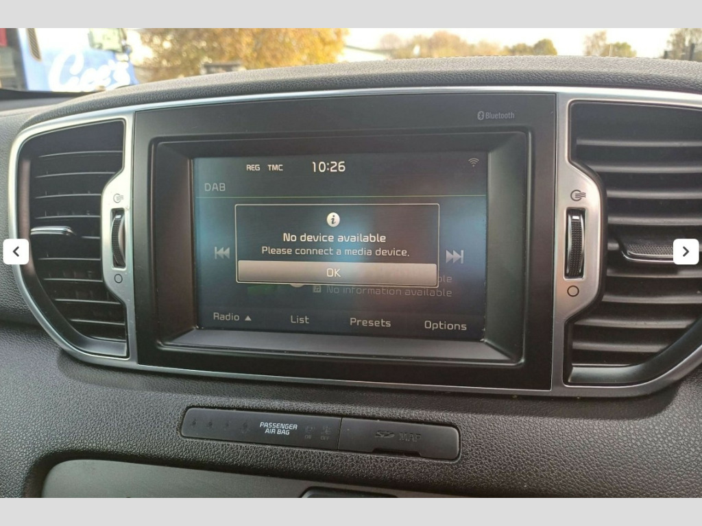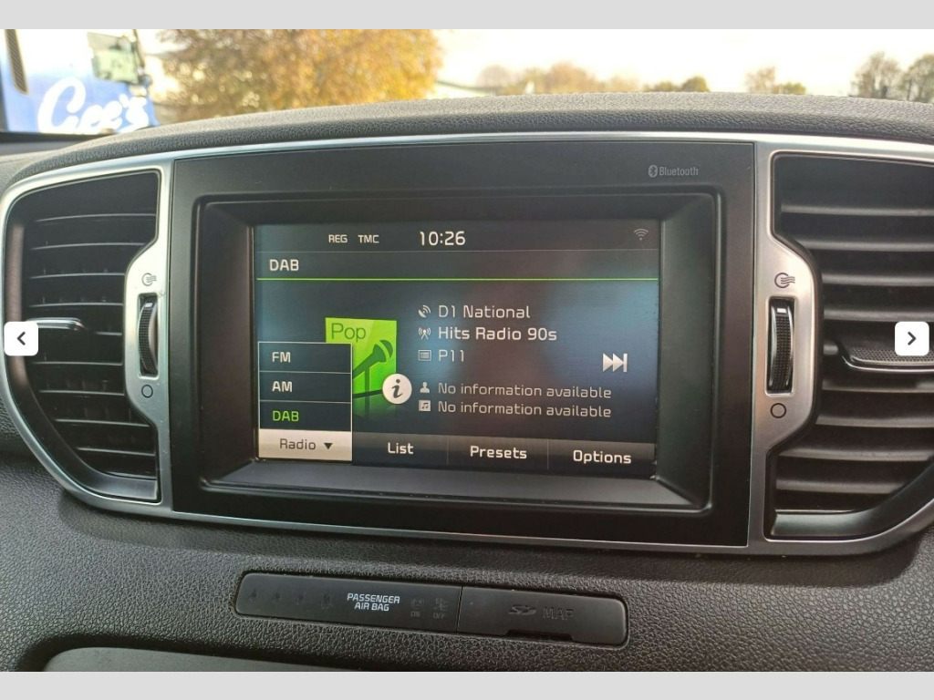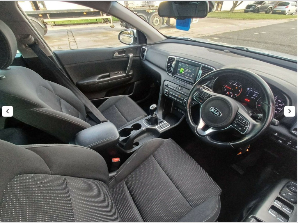 Clean Kia Sportage with 89k miles, full service history (9 services inc 8 at dealer), MOT until Oct 2026 and comes 6 months Comprehensive Nationwide Warranty upon purchase. Features include Sat-Nav, Bluetooth, Reverse Camera, Cruise Control, Voice Activation, Air-Conditioning, Reverse Parking Sensors, Radio/CD/MP3 Player, Aux-In, USB Connection, DAB Tuner, Bluetooth Audio, Lane-Keep Assist, Air-Conditioning, Climate Control, Alloy Wheels, Remote Central Locking, Power Assisted Steering, Electric Windows and Folding Mirrors, etc,  v power socket - front - centre console, 12v power socket - rear - centre console, 6-speaker system, 7in touchscreen, aux connectivity, bluetooth with music streaming, connected services with tomtom, dab radio, european mapping, radio - mp3 compatiblity, satellite navigation, satellite navigation display - colour, shark fin antenna, traffic message channel - tmc, usb connection, ipod connectivity, 17in alloy wheels, body coloured door mirrors, chrome beltline mouldings, chrome front grille surround, door handles - body coloured and chrome, drivers wide view door mirror, ecodynamics badge, electrically folding door mirrors, front and rear electric windows with drivers auto up-down function, grab-type exterior door handles, integrated indicator lights led in door mirrors, locking wheel nuts, mouldings - side sill - black, privacy glass - rear windows and tailgate, radiator grille - gloss black diamond mesh, rear spoiler, roof rails, temporary spare wheel, tinted glass, wheel arch - black, 3 x passenger assist grips, 60-40 split folding 2nd row seats, all-round height adjustable headrests, ambient light - front centre console tray illumination, armrest - centre console with storage, armrest - rear centre, auto dimming rear-view mirror, automatic windscreen de-fog, centre cabin light, centre console storage, coat hooks - rear, cupholders - rear, drivers seat height adjuster, drivers seat power lumbar support, dual automatic air conditioning with ioniser, front cabin map light, front door courtesy reflectors, front seatback pockets, glovebox - cooled, glovebox with illumination, head rests - front active, ignition keyhole illumination, leather trimmed door armrests, leather trimmed gear shift, leather trimmed steering wheel, light grey headlining, luggage area light, luggage compartment - hooks, luggage compartment - load cover, metallic finish centre fascia trim, pollen filter, rain sensing front wipers, rear air ventilation, satin chrome interior door handles, steering wheel mounted audio controls, storage - front doors, storage - rear doors, sunvisors with vanity mirrors illumination, tilt and telescopic steering wheel adjustment, abs - anti lock braking system, airbags - driver, airbags - front side, airbags - passenger, airbags - twin curtain, alarm system, all-round 3-point seatbelts, child safety rear door locks, dbc - downhill brake control, deadlocks, ebd - electronic brakeforce distribution, esc - electronic stability control, emergency stop signalling - ess, engine immobiliser, front passenger airbag cut off switch, hill-start assist control - hac, isofix child seat top tethers and anchor fixings, impact sensing auto door unlocking, internal door lock - unlock function, lane keep assist system - lkas, remote central locking with folding key, roll-over sensor, seatbelt - front with height adjustment, speed limit information function - slif, speed sensing auto door locking, tsa - trailer stability assist, traction control, visible vehicle identification number - vin, automatic headlight control, cornering lights, front fog lights, headlight levelling system, headlights - follow me home function, headlights - high beam assist - hba, led daytime running lights, cruise control, digital clock, gear shift indicator, motor driven power steering - mdps, rear parking sensors, reversing camera system, speed limiter, trip computer, tyre pressure monitoring system - tpms, 2 keys