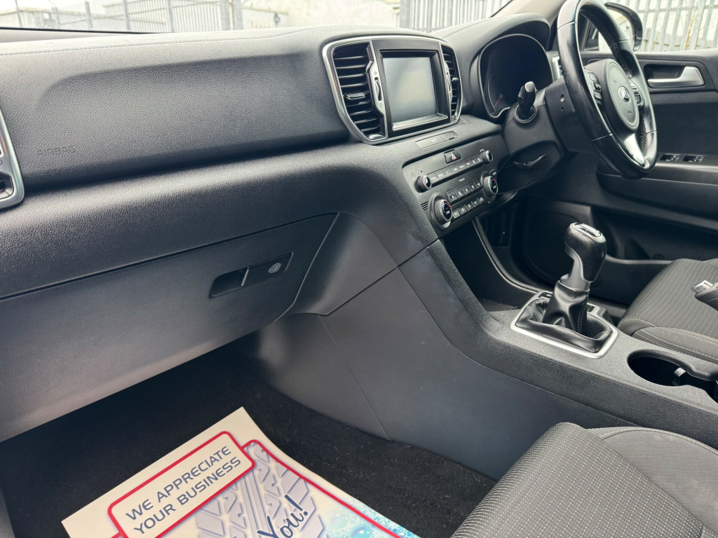 This 2016 Kia Sportage 1.7 CRDi 2 SUV with 94441 miles on it is a reliable diesel vehicle with MOT set to expire on 07/12/2026. It's ULEZ compliant and offers ample space with 5 seats and 5 doors, making it a perfect family car. Featuring a 7in touchscreen satellite navigation with European mapping, Apple CarPlay and Android Auto, Bluetooth with voice recognition and music streaming, it ensures a connected and enjoyable driving experience. Additionally, it comes with 12V power sockets in the front and rear consoles and a 6-speaker system for added convenience and entertainment. With 114 bhp, this SUV is both powerful and efficient, making it an all-round great choice for anyone in need of a sturdy, feature-rich vehicle. v power sockets - front and rear consoles, 6-speaker system, 7in touchscreen satellite navigation with european mapping with traffic message channel - tmc, apple carplay and android auto, bluetooth with voice recognition and music streaming, dab radio with mp3 compatibility, kia connected services featuring tomtom - traffic - speed cameras - local search and weather updates, shark fin antenna, usb and aux ports for connection of an audio media device - ipod - memory stick, 17in alloy wheels, all-round electric windows with drivers auto up-down function, black side sill and wheel arch body mouldings, body coloured door mirrors, body coloured exterior door handles with chrome insert, chrome beltline mouldings, chrome front grille surround, drivers wide view door mirror, ecodynamics badge, electrically folding-adjustable and heated door mirrors with led indicators, high gloss black diamond mesh radiator grille, locking wheel nuts, privacy glass - rear windows and tailgate, rear spoiler, roof rails, temporary spare wheel, tinted glass, 3 x passenger assist grips, 60-40 split folding 2nd row seats, all-round height adjustable headrests, auto dimming rear-view mirror, automatic windscreen de-fog, centre cabin light, centre console storage box, coat hooks - rear, cupholders in rear armrest, driver and passenger sunvisors with vanity mirror and illumination, drivers seat height adjuster, drivers seat power lumbar support, dual automatic air conditioning, front cabin map light, front door courtesy reflectors, front seatback pockets, front and rear centre armrests, front and rear door storage, glovebox with illumination, head rests - front active, ignition keyhole illumination, leather trimmed door armrests, leather trimmed gear shift, leather trimmed steering wheel, light grey headlining, luggage area light, luggage area load cover, luggage net hooks, metallic finish centre fascia trim, rain sensing front wipers, rear ventilation duct, satin chrome interior door handles, steering wheel mounted audio controls, tilt and telescopic steering wheel adjustment, advanced anti-theft system including immobiliser and alarm, all-round 3-point seatbelts, anti-lock braking system - abs with electronic brakeforce distribution - ebd, child safety rear door locks, door deadlocks, electronic stability control - esc - with downhill brake control - dbc, emergency stop signalling - ess, front passenger airbag cut off switch, front seatbelt height adjusters, hill-start assist control - hac, isofix child seat top tethers and anchor fixings, impact sensing auto door unlocking, interior door lock-unlock function, lane keep assist system - lkas, remote central door locking with fold-away key, speed limit information function - slif, speed sensing auto door locking - dealer-activated feature, tsa - trailer stability assist, twin curtain airbags with roll-over sensor, twin front airbags, twin side airbags - front, visible vehicle identification number - vin, automatic headlight control, front fog lights, headlights - high beam assist - hba, led daytime running lights, manual headlight levelling device, welcome and follow-me-home light functionality, cruise control with speed limiter, digital clock, gear shift indicator, rack mounted motor driven power steering - r-mdps, rear parking sensors, reversing camera system - integrated into satellite navigation screen, trip computer - distance - fuel consumption - average speed, tyre pressure monitoring system - tpms