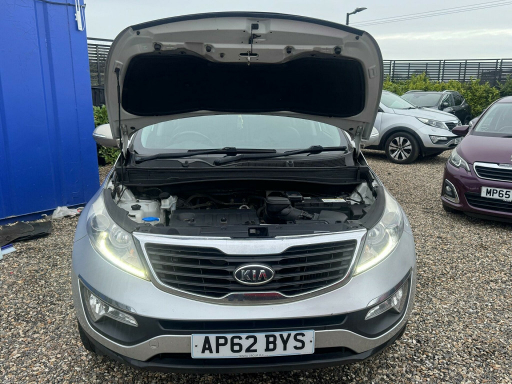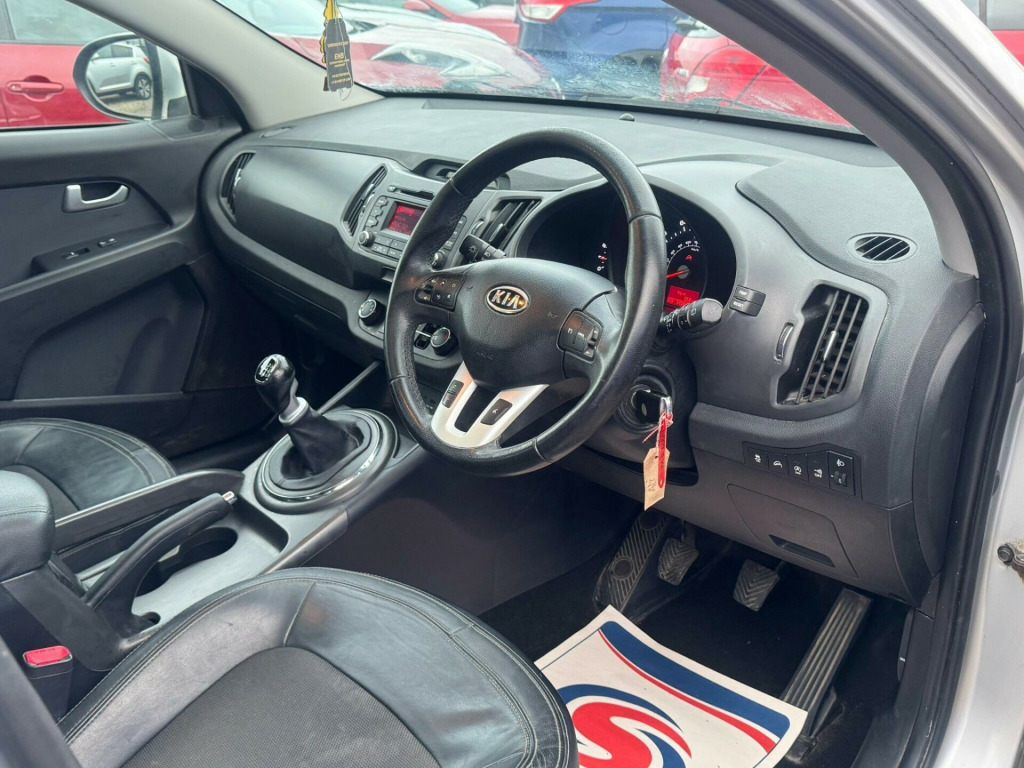 This is a solid and well presented Kia Sportage 1.7 CRDi EcoDynamics 2, registered 2013 (62) and finished in classic silver. With 142,000 miles and 3 previous owners, this Sportage represents excellent value for money and remains a dependable and practical SUV that is built to last.Powered by Kia's proven 1.7 diesel engine, it offers a great balance of fuel economy and everyday usability, making it ideal for commuting, long motorway journeys or family use. The manual gearbox is smooth and easy to drive, while the EcoDynamics technology helps keep running costs sensible. As a Euro 5 vehicle, it remains affordable to own and maintain.This car comes with strong peace of mind for its next owner. It has been recently serviced and benefits from a fresh MOT valid until February 2027, meaning no immediate expenses are required. The engine runs smoothly, the clutch and gearbox perform well, and the vehicle drives exactly as it should.Inside, the Sportage offers a comfortable and spacious cabin with good visibility and plenty of room for passengers and luggage. The 5 door layout makes it practical for daily life, whether you are carrying family, shopping or work equipment. Build quality is solid, and everything is laid out clearly and easy to use.This Kia Sportage is an honest, reliable example that has been sensibly maintained and is ready to be driven away. Ideal for someone looking for a roomy, economical SUV without the high price tag. Clean condition for its age and mileage, good service care and long MOT make this a very sensible purchase. Viewings and test drives are welcome. First to see will appreciate the value on offer. Call today. It offers a comfortable driving position, good road presence and reassuring handling, making it equally suited to town driving and longer trips. With sensible insurance costs and strong reliability, it remains a popular choice among drivers seeking practicality and durability. Supplied with keys and ready for immediate. No warning lights present. v power socket - front centre console x2, 12v power socket - luggage compartment, 17in alloy wheels, 3 x passenger assist grips, 6-speaker system, 60-40 split folding 2nd row seats, abs - anti lock braking system, adaptive brake lights, air conditioning, air conditioning - dual automatic climate control, air filter, airbags - driver, airbags - front side, airbags - passenger, airbags - side, airbags - twin curtain, alarm system, all-round height adjustable headrests, ambient light - front centre console tray illumination, armrest - centre console with storage, armrest - front, bluetooth with music streaming, bluetooth with voice recognition, body coloured door mirrors, body coloured side sill mouldings, centre console storage, child safety rear door locks, chrome front grille surround, coat hooks - rear, cornering lights, cruise control, cupholders - centre console x2, cupholders - rear, dbc - downhill brake control, deadlocks, door handles - chrome, drivers seat height adjuster, ebd - electronic brakeforce distribution, esc - electronic stability control, ecodynamics badge, electric windows - front and rear with auto up-down function, electrically adjustable and heated door mirrors, electrically folding door mirrors, emergency stop signalling - ess, engine immobiliser, front cabin map light, front door courtesy reflectors, front fog lights, front grille - chrome, front passenger airbag cut off switch, front seatback pockets, front and rear door map pockets with bottle holder, front and rear door storage, full size alloy spare wheel, gear shift indicator, glovebox - cooled, glovebox with illumination, head rests - front active, high mounted brake light, hill-start assist control - hac, isofix child seat top tethers and anchor fixings, ignition keyhole illumination, impact sensing auto door unlocking, integrated indicator lights led in door mirrors, led daytime running lights, leather trimmed door armrests, leather trimmed gear shift, leather trimmed steering wheel, locking wheel nuts, luggage area light, luggage compartment - hooks, luggage compartment - load cover, luggage compartment - net, metallic finish interior door handles, motor driven power steering - mdps, panoramic sunroof - electric one touch with safety function, privacy glass - rear windows and tailgate, rds radio with cd and mp3, radiator grille - black gloss arrow mesh, rain sensing front wipers, rear parking sensors, rear spoiler, remote central locking with folding key, roof rails, seats - drivers lumbar support, speed sensing auto door locking, steering wheel mounted audio controls, sunvisors with vanity mirrors illumination, tsa - trailer stability assist, tilt and telescopic steering wheel adjustment, tinted glass, trip computer, tyre pressure monitoring system - tpms, usb and aux ports, vanity mirror illumination, voice control, ipod connectivity
