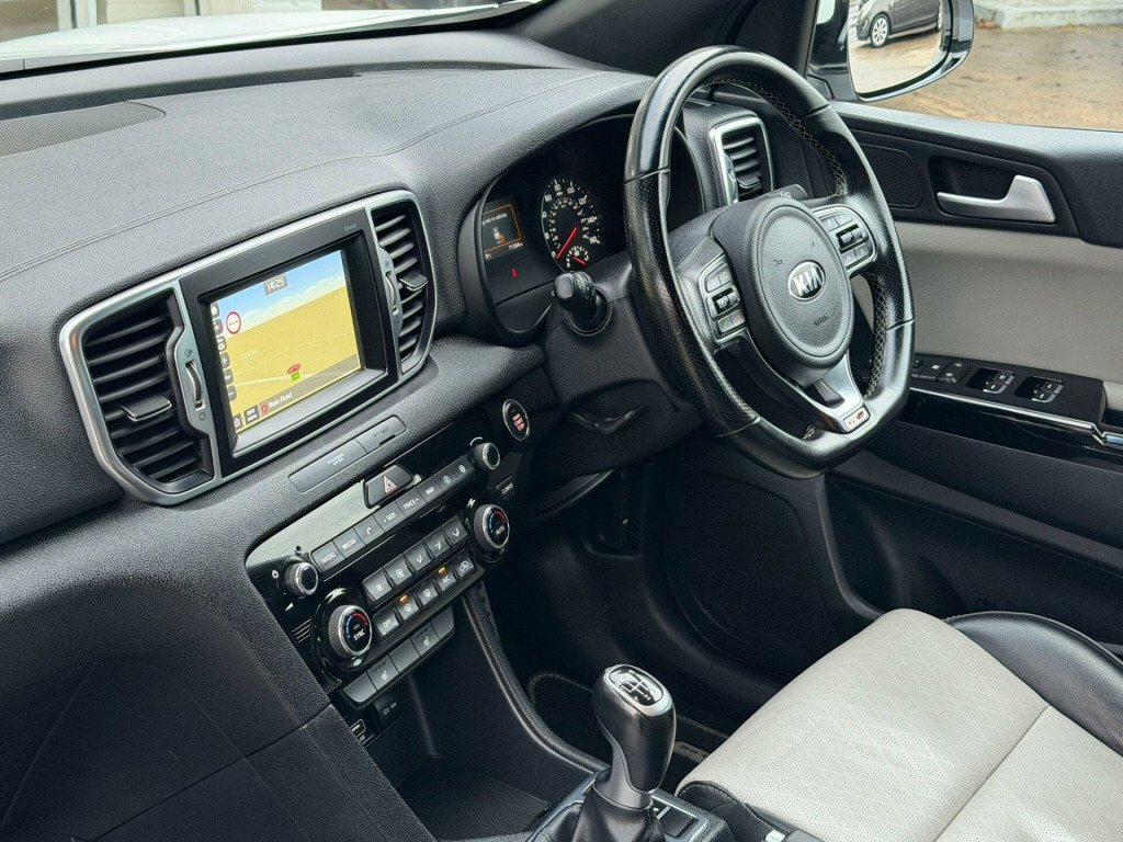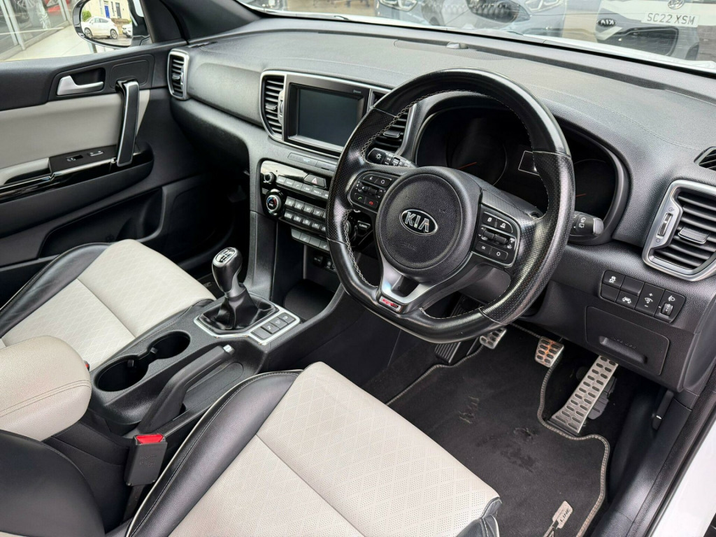 This 2018 Kia Sportage CRDi GT-Line offers excellent peace of mind with a clear vehicle history check. This stylish SUV is equipped with a 1.7L Euro 6 diesel engine, ensuring efficient performance. Inside, you'll find a host of desirable features including heated front and outer rear seats for ultimate comfort, and dual automatic air conditioning to maintain the perfect cabin temperature. Navigating tight spots is made easy with a reversing camera system integrated into the satellite navigation screen, complemented by rear parking sensors. Stay connected on the go with Bluetooth featuring voice recognition and music streaming.The Kia Sportage CRDi GT-Line stands out with its impressive fuel economy, achieving up to 61 mpg, which is significantly better than many other vehicles in its class. Its low CO2 emissions also contribute to a more environmentally conscious drive. Furthermore, this model benefits from a low insurance group, making it an economical choice for many drivers. Practicality is also a strong point, with generous boot space perfect for shopping trips or family holidays.. 12V Power Sockets - Front and Rear Consoles, 19in Alloy Wheels B-Type, 3 x Passenger Assist Grips, 4.2in Supervision Cluster with LCD TFT Colour Display, 6-Speaker System, 60-40 Split Folding 2nd Row Seats, 7in Touchscreen Satellite Navigation with European Mapping with Traffic Message Channel - TMC, Advanced Anti-Theft System including Immobiliser and Alarm, All-Round 3-Point Seatbelts, All-Round Electric Windows with Drivers Auto Up-Down Function, All-Round Height Adjustable Headrests, Anti-Lock Braking System - ABS with Electronic Brakeforce Distribution - EBD, Apple CarPlay and Android Auto, Auto Dimming Rear-View Mirror, Automatic Headlight Control, Automatic Windscreen De-Fog, Black Side Sill and Wheel Arch Body Mouldings with Satin Chrome Insert, Bluetooth with Voice Recognition and Music Streaming, Body Coloured Door Mirrors, Body Coloured Exterior Door Handles with Satin Chrome Insert, Centre Cabin Light, Centre Console Storage Box, Centre Fascia - Black High Gloss, Child Safety Rear Door Locks, Chrome Boot Sill Guard, Coat Hooks - Rear, Cruise Control with Speed Limiter, Cupholders in Rear Armrest, DAB Radio with MP3 Compatibility, Digital Clock, Door Deadlocks, Driver and Passenger Sunvisors with Vanity Mirror and Illumination, Drivers Seat Height Adjuster, Drivers Seat Power Lumbar Support, Drivers Wide View Door Mirror, Dual Automatic Air Conditioning, Electrically Folding-Adjustable and Heated Door Mirrors with LED Indicators, Electronic Stability Control - ESC - with Downhill Brake Control - DBC, Emergency Stop Signalling - ESS, Engine Start-Stop Button with Smart Entry System, Exhaust - Single, Front Cabin Map Light, Front Door Courtesy Reflectors, Front Grille - Satin Chrome Surround, Front Parking Sensors, Front Passenger Airbag Cut Off Switch, Front Seatback Pockets, Front Seatbelt Height Adjusters, Front and Rear Centre Armrests, Front and Rear Door Storage, Gear Shift Indicator, Glovebox with Illumination, Head Rests - Front Active, Headlights - High Beam Assist - HBA, Headlining - Black, Heated Front and Outer Rear Seats, Hill-Start Assist Control - HAC, ISOFIX Child Seat Top Tethers and Anchor Fixings, Impact Sensing Auto Door Unlocking, Interior Door Lock-Unlock Function, Kia Connected Services Featuring TomTom - Traffic - Speed Cameras - Local Search and Weather Updates, LED Daytime Running Lights, LED Ice-Cube Front Fog Lights, LED Rear Tail Lights, Lane Keep Assist System - LKAS, Leather Trimmed Door Armrests, Leather Trimmed Gear Shift, Locking Wheel Nuts, Luggage Area Light, Luggage Area Load Cover, Luggage Net Hooks, Manual Headlight Levelling Device, Privacy Glass - Rear Windows and Tailgate, Rack Mounted Motor Driven Power Steering - R-MDPS, Radiator Grille - Gloss Black Blade Mesh, Rain Sensing Front Wipers, Rear Parking Sensors, Rear Spoiler, Rear Ventilation Duct, Reversing Camera System - Integrated into Satellite Navigation Screen, Roof Rails, Satin Chrome Beltline Mouldings, Satin Chrome Interior Door Handles, Shark Fin Antenna, Silver Painted Front and Rear Skid Plates, Silver Stitching - Front Centre Armrest and Upholstery, Speed Limit Information Function - SLIF, Speed Sensing Auto Door Locking - Dealer-Activated Feature, Stainless Steel Door Scuff Plates, Stainless Steel Pedals, Steering Wheel - D-Shaped Sports Leather with Perforated Inserts and GT-Line Logo, Steering Wheel Mounted Audio Controls, TSA - Trailer Stability Assist, Tailgate - Satin Chrome Insert, Temporary Spare Wheel, Tilt and Telescopic Steering Wheel Adjustment, Tinted Glass, Trip Computer - Distance - Fuel Consumption - Average Speed, Twin Curtain Airbags with Roll-Over Sensor, Twin Front Airbags, Twin Side Airbags - Front, Tyre Pressure Monitoring System - TPMS, USB and AUX Ports for Connection of an Audio Media Device - iPod - Memory Stick, Visible Vehicle Identification Number - VIN, Welcome and Follow-Me-Home Light Functionality.