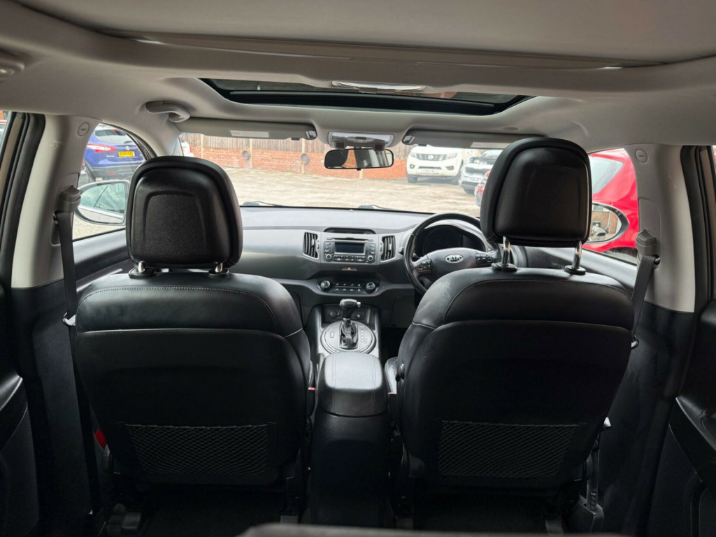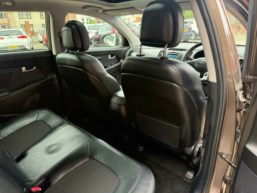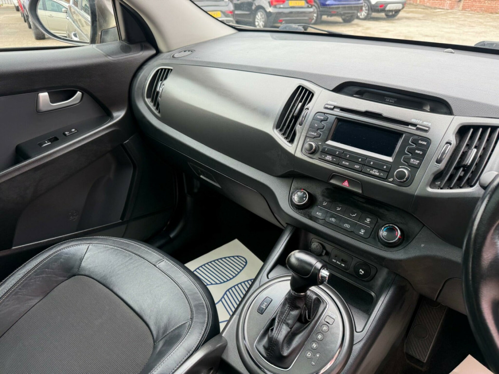 NEED FINANCE? PLEASE VISIT OUR WEBSITE TO QUOTE OR APPLY ONLINE. VIEWING ESSENTIAL.This 2013 Kia Sportage CRDi KX-2 is a standout choice, boasting an impressively low mileage of just 72,848 miles for its age and having been cared for by only two owners. This well maintained example features a robust 2.0L diesel engine paired with a capable Four Wheel Drive system, ensuring confident driving in various conditions. Inside, you'll find comfort and convenience with Air Conditioning, Bluetooth connectivity with voice recognition, and a desirable Electric One Touch Panoramic Sunroof that floods the cabin with light. Practicality is also key, with Rear Parking Sensors to assist with manoeuvring and a generous boot space perfect for luggage or shopping.The Kia Sportage CRDi KX-2 offers excellent value, further enhanced by its low insurance group, making it an economical option for many drivers. These highlights, combined with its clear vehicle history check, indicate that this Sportage has been well looked after and offers a superior ownership experience compared to many other vehicles of its kind. Its blend of comfort, practicality, and reliable performance makes it an appealing proposition for anyone seeking a versatile family car.,  v power socket - front, 12v power socket - luggage compartment, 17in alloy wheels, 3 x passenger assist grips, 6-speaker system, 60-40 split folding 2nd row seats, abs - anti lock braking system, active eco switch, adaptive brake lights, air conditioning, air filter, airbags - curtain twin full length, airbags - driver, airbags - front side, airbags - passenger, alarm system, all-round height adjustable headrests, armrest - centre console with storage, armrest - front, bluetooth with voice recognition, body coloured door mirrors, centre cabin light, child safety rear door locks, cornering lights, cruise control, cupholders - centre console x2, cupholders in rear armrest, dbc - downhill brake control, dashboard - metallic finish trim, deadlocks, door handles - chrome, drivers seat height adjuster, ebd - electronic brakeforce distribution, esc - electronic stability control, electric windows - front and rear, electrically adjustable and heated door mirrors, electrically folding door mirrors, emergency stop signalling - ess, engine immobiliser, front cabin map light, front door courtesy reflectors, front fog lights, front grille - chrome, front passenger airbag cut off switch, front seatback pockets, front and rear door map pockets with bottle holder, front and rear door storage, full size alloy spare wheel, glovebox with illumination, head rests - front active, headlight levelling system, high mounted brake light, hill-start assist control - hac, isofix child seat top tethers and anchor fixings, ignition keyhole illumination, impact sensing auto door unlocking, integrated indicator lights led in door mirrors, interior door lock-unlock function, led daytime running lights, leather trimmed door armrests, leather trimmed gear shift, leather trimmed steering wheel, locking wheel nuts, luggage area light, luggage compartment - hooks, luggage compartment - load cover, metallic finish interior door handles, motor driven power steering - mdps, mouldings - side sill - black, mouldings - waistline - chrome coated, panoramic sunroof - electric one touch with safety function, privacy glass - rear windows and tailgate, rds radio with cd and mp3, rain sensing front wipers, rear parking sensors, rear spoiler, remote central locking with folding key, roof rails, seats - drivers lumbar support, speed sensing auto door locking, steering wheel mounted audio controls, sunvisors with vanity mirrors and ticket holder, tilt and telescopic steering wheel adjustment, tinted glass, trip computer, usb and aux ports, vanity mirror illumination, ipod connectivity, part leather- black