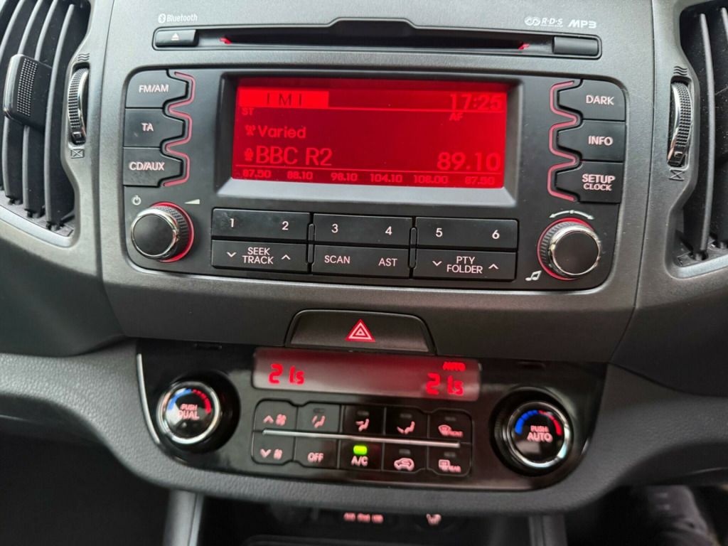 We are delighted to offer you this fantastic Automatic Sportage four-wheel-drive.Full leather interior front and rear heated seats, full Bluetooth connectivity full pan roof and opening sunroof.Front washer jet cover is being replaced.New MOT all advisories have been doneTwo new tyres. Great MOT history so clearly been looked after.Drives really well very clean car.Three months warranty included with Warranty First top cover.Two keys Part exchange welcomeFantastic finance options with Meridian FinanceFamily run business please read our reviewsThe car is available to view and test drive seven days a week including evenings and weekends by appointment only. ather - black, 12v power socket - front, 12v power socket - luggage compartment, 18in alloy wheels, 3 x passenger assist grips, 6-speaker system, 60-40 split folding 2nd row seats, abs - anti lock braking system, active eco switch, adaptive brake lights, air conditioning - dual automatic climate control, air filter, airbags - curtain twin full length, airbags - driver, airbags - front side, airbags - passenger, alarm system, all-round height adjustable headrests, armrest - centre console with storage, armrest - front, auto dimming rear-view mirror, automatic headlight control, bluetooth with voice recognition, body coloured door mirrors, centre cabin light, child safety rear door locks, cornering lights, cruise control, cupholders - centre console x2, cupholders in rear armrest, dbc - downhill brake control, dashboard - metallic finish trim, deadlocks, door handles - chrome, drivers seat height adjuster, ebd - electronic brakeforce distribution, esc - electronic stability control, electric windows - front and rear, electrically adjustable and heated door mirrors, electrically folding door mirrors, emergency stop signalling - ess, engine immobiliser, front cabin map light, front door courtesy reflectors, front fog lights, front grille - chrome, front passenger airbag cut off switch, front seatback pockets, front and rear door map pockets with bottle holder, front and rear door storage, full size alloy spare wheel, glovebox - cooled, glovebox with illumination, head rests - front active, headlight washers, headlights - follow me home function, headlights - xenon with auto levelling, high mounted brake light, hill-start assist control - hac, isofix child seat top tethers and anchor fixings, ignition keyhole illumination, impact sensing auto door unlocking, integrated indicator lights led in door mirrors, interior door lock-unlock function, led daytime running lights, leather trimmed door armrests, leather trimmed gear shift, leather trimmed steering wheel, locking wheel nuts, luggage area light, luggage compartment - hooks, luggage compartment - load cover, metallic finish interior door handles, motor driven power steering - mdps, mouldings - side sill - black, mouldings - waistline - chrome coated, panoramic sunroof - electric one touch with safety function, premium vision instrument cluster, privacy glass - rear windows and tailgate, rds radio with cd and mp3, rain sensing front wipers, rear parking sensors, rear spoiler, remote central locking with folding key, roof rails, seats - drivers lumbar support, seats - heated front and rear, speed sensing auto door locking, steering wheel mounted audio controls, sunvisors with vanity mirrors and ticket holder, tilt and telescopic steering wheel adjustment, tinted glass, trip computer, usb and aux ports, vanity mirror illumination, ipod connectivity