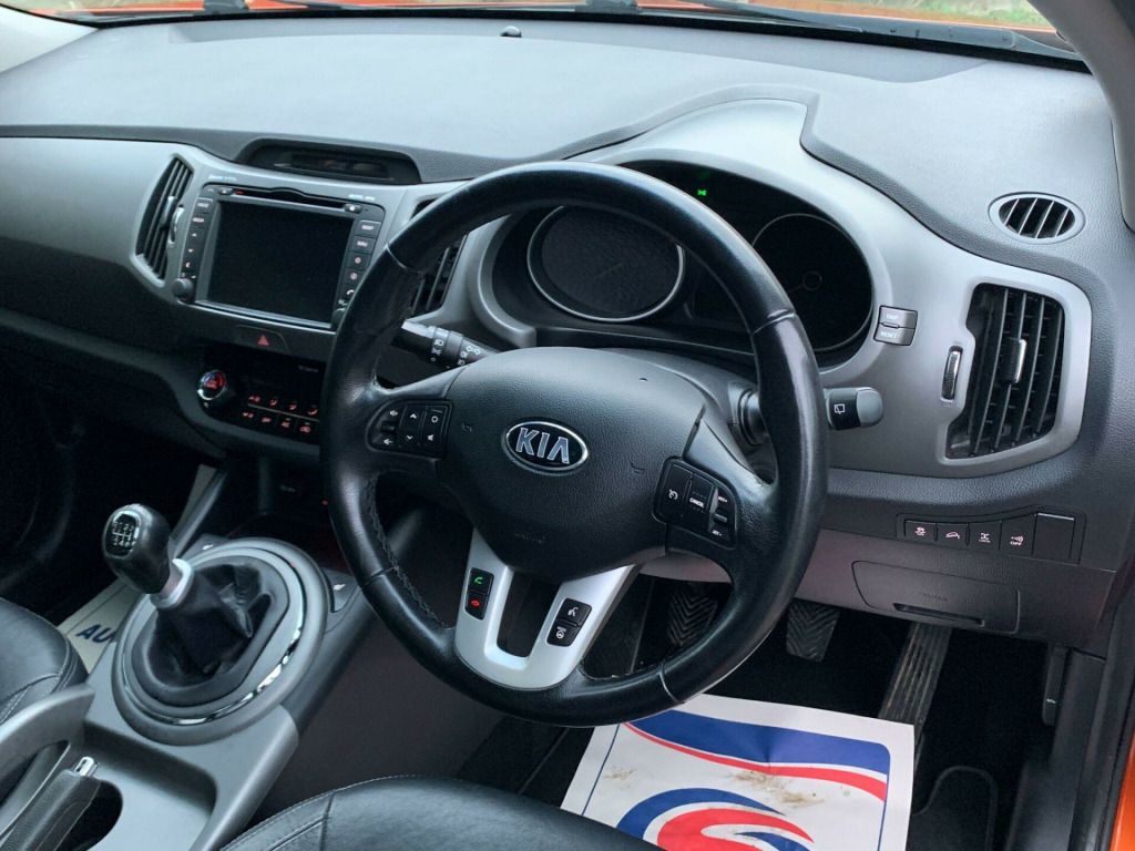 Here we have a 2014 Kia Sportage CRDi KX-3 AWD/Four Wheel Drive finished in stunning Techno Orange covered 97,440 miles from just 2 owners from new with the 2nd owner before coming into ourselves owning the car for nearly 10 years. This Sportage is a desirable and rare example which is presented in absolutely beautiful condition throughout and has been very well cared after throughout. Top of the range with very high specification being the KX-3 Model. The rare Techno Orange Metallic looks stunning and very sharp on this car. Must be seen stunning and excellent condition throughout - been cared for exceptionally well and drives and looks as covered a fraction of mileage.Under the bonnet lies a robust 2.0L diesel engine paired with a capable Four Wheel Drive system, offering confident performance in various conditions. Inside, you'll find a wealth of desirable features designed for comfort and convenience, including a panoramic sunroof with electric one touch operation and safety function, heated front seats for those chilly mornings, and advanced Xenon headlights with auto levelling for enhanced visibility. Practicality is also a strong suit, with rear parking sensors to aid manoeuvring and dual automatic climate control ensuring a pleasant cabin temperature for all occupants.The KX-3 trim level truly shines with its thoughtful additions, indicating a higher standard compared to other models. The generous boot space provides ample room for luggage, shopping, or sports equipment, making it an ideal choice for families or those with active lifestyles. Furthermore, its placement in a low insurance group offers an added benefit, potentially reducing running costs. This Kia Sportage is a well maintained and well equipped SUV that combines practicality with a comfortable and enjoyable driving experience.. 12V Power Socket - Front Centre Console x2, 12V Power Socket - Luggage Compartment, 18in Alloy Wheels, 3 x Passenger Assist Grips, 4.2in Supervision Cluster with LCD TFT Colour Display, 4.3in LCD Colour Touchscreen, 60-40 Split Folding 2nd Row Seats, ABS - Anti Lock Braking System, Air Conditioning - Dual Automatic Climate Control, Airbags - Driver, Airbags - Front Side, Airbags - Passenger, Airbags - Side, Airbags - Twin Curtain, Alarm System, All-Round Height Adjustable Headrests, Ambient Light - Front Centre Console Tray Illumination, Armrest - Rear Centre, Auto Dimming Rear-View Mirror, Automatic Headlight Control, Aux Connectivity, Bluetooth Hands Free Connectivity, Bluetooth with Music Streaming, Body Coloured Door Mirrors, Body Coloured Side Sill Mouldings, Centre Console Storage, Child Safety Rear Door Locks, Chrome Front Grille Surround, Coat Hooks - Rear, Cornering Lights, Cruise Control, Cupholders - Centre Console with Ambient Lighting, Cupholders - Rear, DBC - Downhill Brake Control, Deadlocks, Door Handles - Chrome, Drivers Seat Height Adjuster, EBD - Electronic Brakeforce Distribution, ESC - Electronic Stability Control, Electric Windows - Front and Rear with Auto Up-Down Function, Electrically Folding Door Mirrors, Emergency Stop Signalling - ESS, Engine Immobiliser, Flex Steer, Front Cabin Map Light, Front Centre Console Armrest, Front Door Courtesy Reflectors, Front Fog Lights, Front Passenger Airbag Cut Off Switch, Front Seatback Pockets, Front and Rear Door Storage, Full Size Alloy Spare Wheel, Gear Shift Indicator, Glovebox - Cooled, Glovebox with Illumination, Head Rests - Front Active, Headlight Levelling System, Headlight Washers, Headlights - Follow Me Home Function, Headlights - Xenon with Auto Levelling, Heated Front Seats, Heated Outer Rear Seats, Hill-Start Assist Control - HAC, ISOFIX Child Seat Top Tethers and Anchor Fixings, Ignition Keyhole Illumination, Impact Sensing Auto Door Unlocking, Infinity Premium Sound System, Integrated Indicator Lights LED in Door Mirrors, LED Daytime Running Lights, Leather Trimmed Door Armrests, Leather Trimmed Gear Shift, Leather Trimmed Steering Wheel, Locking Wheel Nuts, Luggage Area Light, Luggage Compartment - Hooks, Luggage Compartment - Load Cover, Luggage Compartment - Net, Motor Driven Power Steering - MDPS, Mouldings - Side Sill - Black, Panoramic Sunroof - Electric One Touch with Safety Function, Privacy Glass - Rear Windows and Tailgate, RDS Radio with CD and MP3, Radiator Grille - Black Gloss Arrow Mesh, Rain Sensing Front Wipers, Rear Parking Sensors, Rear Spoiler, Remote Central Locking with Folding Key, Reversing Camera System, Roof Rails, Seats - Drivers Lumbar Support, Shark Fin Antenna, Speakers x7, Speed Sensing Auto Door Locking, Steering Wheel Mounted Audio Controls, Subwoofer, Sunvisors with Vanity Mirrors Illumination, TSA - Trailer Stability Assist, Tilt and Telescopic Steering Wheel Adjustment, Tinted Glass, Trip Computer, Tyre Pressure Monitoring System - TPMS, USB Connection, Voice Control, Leather - Black. Full service history