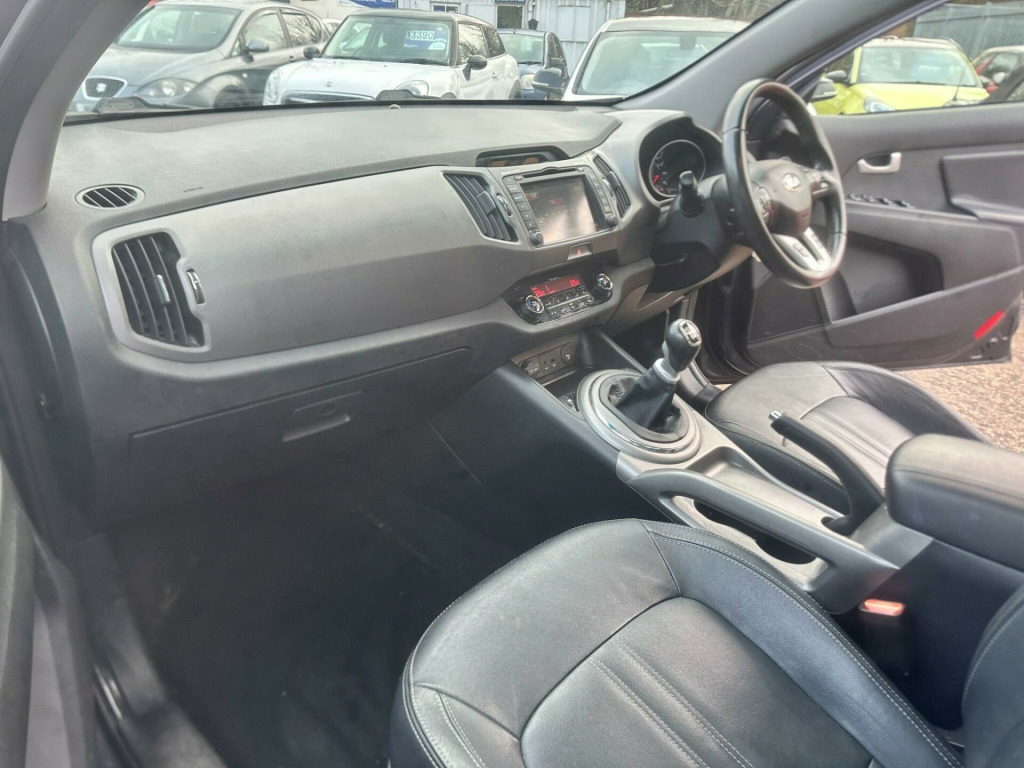This Kia Sportage CRDi KX-3 from 2014 offers excellent peace of mind with its MOT valid until July 2026. This Four Wheel Drive model is powered by a 2.0L Diesel engine and has had only two previous owners. It comes with a partial service history, and features Xenon headlights with auto levelling, a reversing camera system, and Bluetooth hands free connectivity.The KX-3 trim level ensures a comfortable experience, with heated front seats and heated outer rear seats for those colder journeys. You will also appreciate the generous boot space, ideal for luggage or shopping. This Sportage sits in a low insurance group, making it an economical choice, and the four wheel drive system provides added confidence on the road. Warranties & LOW RATE FINANCE AVAILABLE, v power socket - front centre console x2, 12v power socket - luggage compartment, 18in alloy wheels, 3 x passenger assist grips, 4.2in supervision cluster with lcd tft colour display, 4.3in lcd colour touchscreen, 60-40 split folding 2nd row seats, abs - anti lock braking system, air conditioning - dual automatic climate control, airbags - driver, airbags - front side, airbags - passenger, airbags - side, airbags - twin curtain, alarm system, all-round height adjustable headrests, ambient light - front centre console tray illumination, armrest - rear centre, auto dimming rear-view mirror, automatic headlight control, aux connectivity, bluetooth hands free connectivity, bluetooth with music streaming, body coloured door mirrors, body coloured side sill mouldings, centre console storage, child safety rear door locks, chrome front grille surround, coat hooks - rear, cornering lights, cruise control, cupholders - centre console with ambient lighting, cupholders - rear, dbc - downhill brake control, deadlocks, door handles - chrome, drivers seat height adjuster, ebd - electronic brakeforce distribution, esc - electronic stability control, electric windows - front and rear with auto up-down function, electrically folding door mirrors, emergency stop signalling - ess, engine immobiliser, flex steer, front cabin map light, front centre console armrest, front door courtesy reflectors, front fog lights, front passenger airbag cut off switch, front seatback pockets, front and rear door storage, full size alloy spare wheel, gear shift indicator, glovebox - cooled, glovebox with illumination, head rests - front active, headlight levelling system, headlight washers, headlights - follow me home function, headlights - xenon with auto levelling, heated front seats, heated outer rear seats, hill-start assist control - hac, isofix child seat top tethers and anchor fixings, ignition keyhole illumination, impact sensing auto door unlocking, infinity premium sound system, integrated indicator lights led in door mirrors, led daytime running lights, leather trimmed door armrests, leather trimmed gear shift, leather trimmed steering wheel, locking wheel nuts, luggage area light, luggage compartment - hooks, luggage compartment - load cover, luggage compartment - net, motor driven power steering - mdps, mouldings - side sill - black, panoramic sunroof - electric one touch with safety function, privacy glass - rear windows and tailgate, rds radio with cd and mp3, radiator grille - black gloss arrow mesh, rain sensing front wipers, rear parking sensors, rear spoiler, remote central locking with folding key, reversing camera system, roof rails, seats - drivers lumbar support, shark fin antenna, speakers x7, speed sensing auto door locking, steering wheel mounted audio controls, subwoofer, sunvisors with vanity mirrors illumination, tsa - trailer stability assist, tilt and telescopic steering wheel adjustment, tinted glass, trip computer, tyre pressure monitoring system - tpms, usb connection, voice control