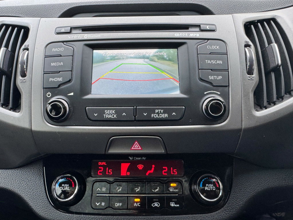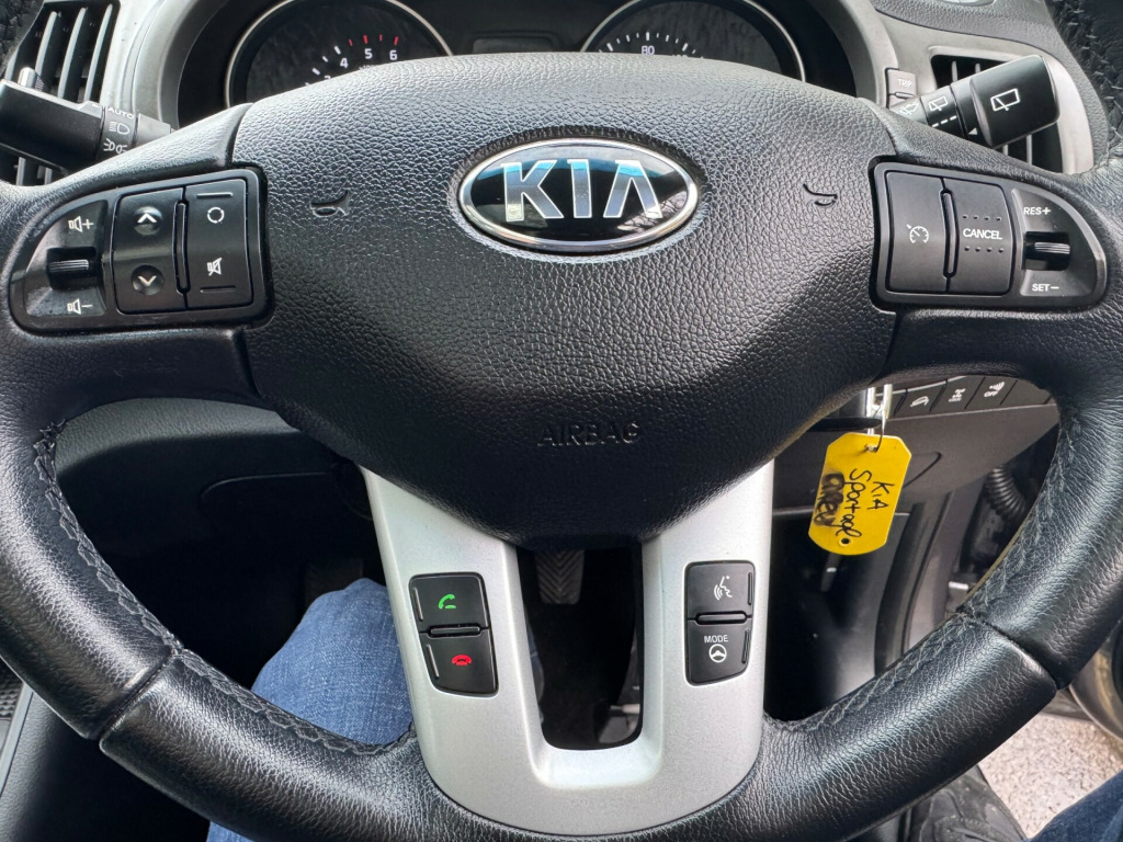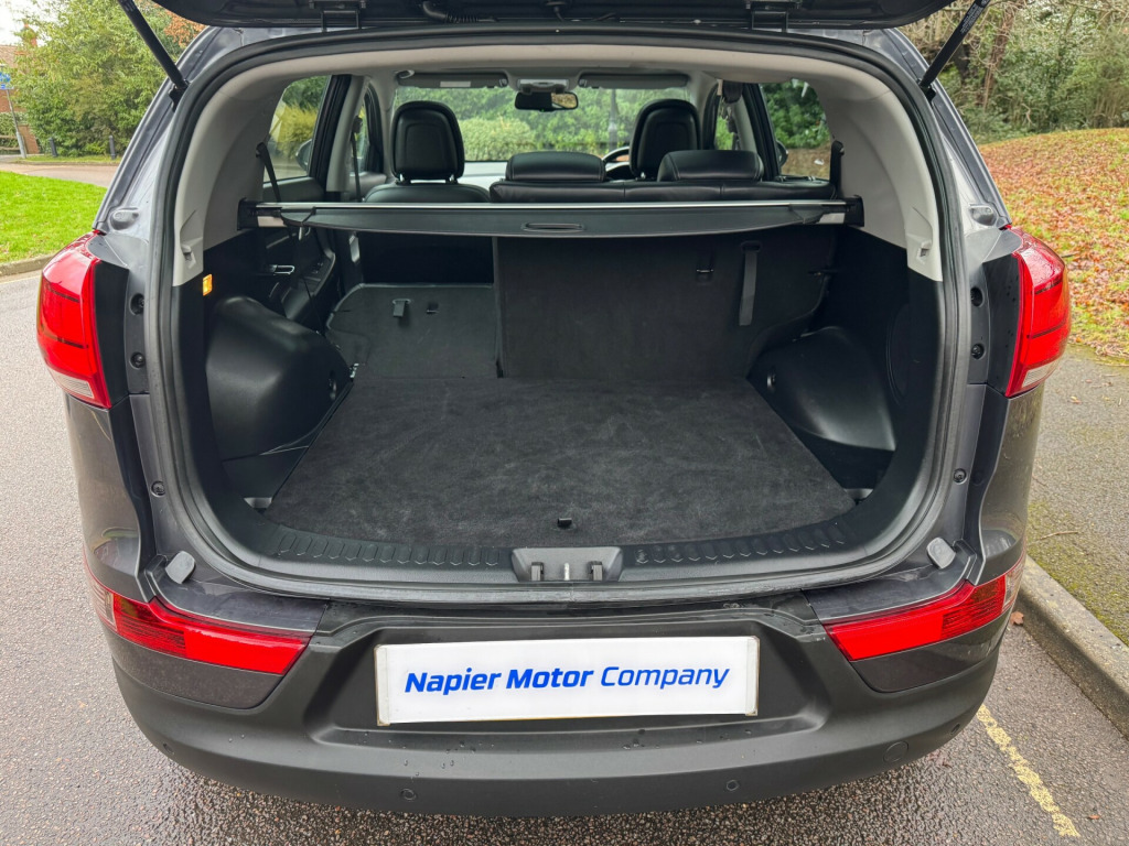 For sale is a 2014 Kia Sportage 2.0 CRDi KX-3 SUV with 31002 miles on the clock. This Diesel-powered SUV is equipped with a 5-speed manual transmission and all-wheel drive, delivering 134 bhp with Euro 5 emissions. The MOT is valid until 30/10/2026. The spacious interior includes black leather seats, a 4.2in LCD TFT colour display, and 12V power sockets in the front centre console and luggage compartment. The exterior is finished in Dark Gun Metal and features 5 doors, accommodating 5 passengers comfortably. Don't miss out on the opportunity to own this reliable and versatile SUV., v power socket - front centre console x2, 12v power socket - luggage compartment, 4.2in supervision cluster with lcd tft colour display, 4.3in lcd colour touchscreen, aux connectivity, bluetooth hands free connectivity, bluetooth with music streaming, infinity premium sound system, rds radio with cd and mp3, shark fin antenna, speakers x7, subwoofer, usb connection, 18in alloy wheels, body coloured door mirrors, body coloured side sill mouldings, chrome front grille surround, door handles - chrome, electric windows - front and rear with auto up-down function, electrically folding door mirrors, full size alloy spare wheel, integrated indicator lights led in door mirrors, locking wheel nuts, mouldings - side sill - black, panoramic sunroof - electric one touch with safety function, privacy glass - rear windows and tailgate, radiator grille - black gloss arrow mesh, rear spoiler, roof rails, tinted glass, 3 x passenger assist grips, 60-40 split folding 2nd row seats, air conditioning - dual automatic climate control, all-round height adjustable headrests, ambient light - front centre console tray illumination, armrest - rear centre, auto dimming rear-view mirror, centre console storage, coat hooks - rear, cupholders - centre console with ambient lighting, cupholders - rear, drivers seat height adjuster, front cabin map light, front centre console armrest, front door courtesy reflectors, front seatback pockets, front and rear door storage, glovebox - cooled, glovebox with illumination, head rests - front active, heated front seats, heated outer rear seats, ignition keyhole illumination, leather trimmed door armrests, leather trimmed gear shift, leather trimmed steering wheel, luggage area light, luggage compartment - hooks, luggage compartment - load cover, luggage compartment - net, rain sensing front wipers, seats - drivers lumbar support, steering wheel mounted audio controls, sunvisors with vanity mirrors illumination, tilt and telescopic steering wheel adjustment, abs - anti lock braking system, airbags - driver, airbags - front side, airbags - passenger, airbags - side, airbags - twin curtain, alarm system, child safety rear door locks, dbc - downhill brake control, deadlocks, ebd - electronic brakeforce distribution, esc - electronic stability control, emergency stop signalling - ess, engine immobiliser, front passenger airbag cut off switch, hill-start assist control - hac, isofix child seat top tethers and anchor fixings, impact sensing auto door unlocking, remote central locking with folding key, speed sensing auto door locking, tsa - trailer stability assist, automatic headlight control, cornering lights, front fog lights, headlight levelling system, headlight washers, headlights - follow me home function, headlights - xenon with auto levelling, led daytime running lights, cruise control, flex steer, gear shift indicator, motor driven power steering - mdps, rear parking sensors, reversing camera system, trip computer, tyre pressure monitoring system - tpms, voice control