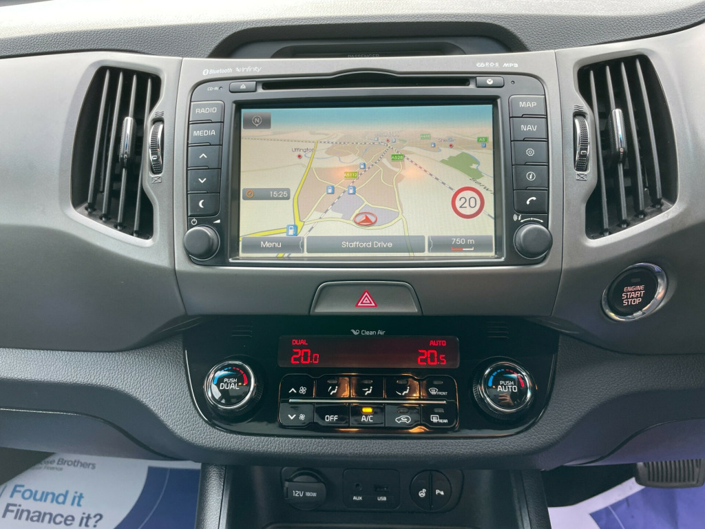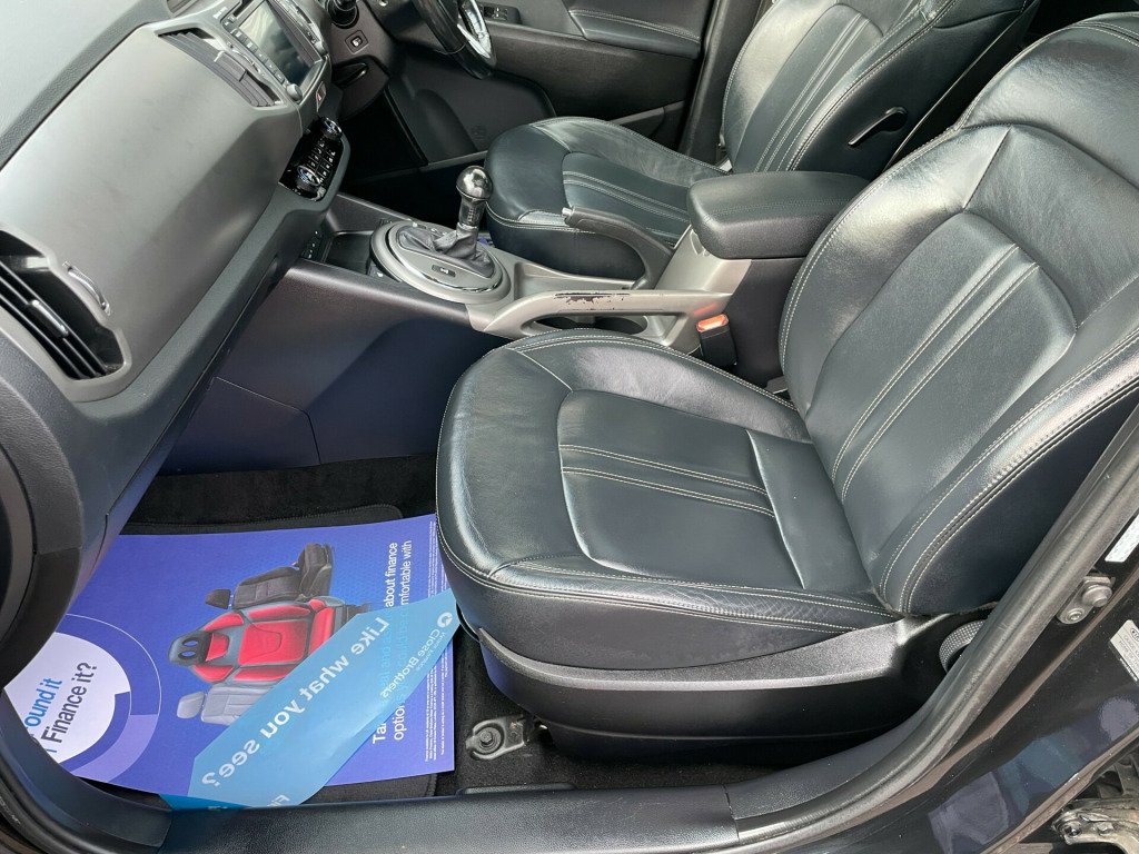 This 2014 Kia Sportage 2.0 CRDi KX-4 SUV with 76093 miles on the clock is a fantastic diesel SUV that comes with 5 seats, 5 doors, and an MOT that expires on 15/06/2026. It boasts a powerful Euro 5 engine with 181 bhp, automatic transmission, and all-wheel drive capability. This SUV is equipped with a range of features including 12V power sockets in the front center console and luggage compartment, a 4.2in supervision cluster with LCD TFT color display, and a 7in touchscreen with satellite navigation and European mapping with traffic message channel - TMC. This vehicle offers both style and practicality and is ready to hit the road for any adventure. LONG MOT,  v power socket - front centre console x2, 12v power socket - luggage compartment, 4.2in supervision cluster with lcd tft colour display, 7in touchscreen, 7in touchscreen satellite navigation with european mapping with traffic message channel - tmc, aux connectivity, bluetooth hands free connectivity, bluetooth with music streaming, infinity premium sound system, rds radio with cd and mp3, shark fin antenna, speakers x7, subwoofer, usb connection, 18in alloy wheels, body coloured door mirrors, body coloured side sill mouldings, chrome front grille surround, door handles - chrome, electric windows - front and rear with auto up-down function, electrically folding door mirrors, full size alloy spare wheel, integrated indicator lights led in door mirrors, locking wheel nuts, mouldings - side sill - black, panoramic sunroof - electric one touch with safety function, privacy glass - rear windows and tailgate, radiator grille - black gloss arrow mesh, rear spoiler, roof rails, stainless steel door scuff plates, tinted glass, 3 x passenger assist grips, 60-40 split folding 2nd row seats, air conditioning - dual automatic climate control, all-round height adjustable headrests, ambient light - front centre console tray illumination, armrest - rear centre, auto dimming rear-view mirror, centre console storage, coat hooks - rear, cupholders - centre console with ambient lighting, cupholders - rear, drivers seat height adjuster, front cabin map light, front centre console armrest, front door courtesy reflectors, front seatback pockets, front and rear door storage, glovebox - cooled, glovebox with illumination, head rests - front active, heated front seats, heated outer rear seats, heated steering wheel, leather trimmed door armrests, leather trimmed gear shift, leather trimmed steering wheel, luggage area light, luggage compartment - hooks, luggage compartment - load cover, luggage compartment - net, rain sensing front wipers, seats - drivers electrical adjustment, seats - drivers lumbar support, steering wheel mounted audio controls, sunvisors with vanity mirrors illumination, tilt and telescopic steering wheel adjustment, abs - anti lock braking system, airbags - driver, airbags - front side, airbags - passenger, airbags - side, airbags - twin curtain, alarm system, child safety rear door locks, dbc - downhill brake control, deadlocks, ebd - electronic brakeforce distribution, esc - electronic stability control, emergency stop signalling - ess, engine immobiliser, engine start-stop button with smart entry system, front passenger airbag cut off switch, hill-start assist control - hac, isofix child seat top tethers and anchor fixings, impact sensing auto door unlocking, speed sensing auto door locking, tsa - trailer stability assist, active eco switch, cruise control, flex steer, front parking sensors, motor driven power steering - mdps, park assist system with front and rear parking sensors, rear parking sensors, reversing camera system, trip computer, tyre pressure monitoring system - tpms, voice control, automatic headlight control, cornering lights, front fog lights, headlight levelling system, headlight washers, headlights - follow me home function, headlights - xenon with auto levelling, led daytime running lights, rear lights - led