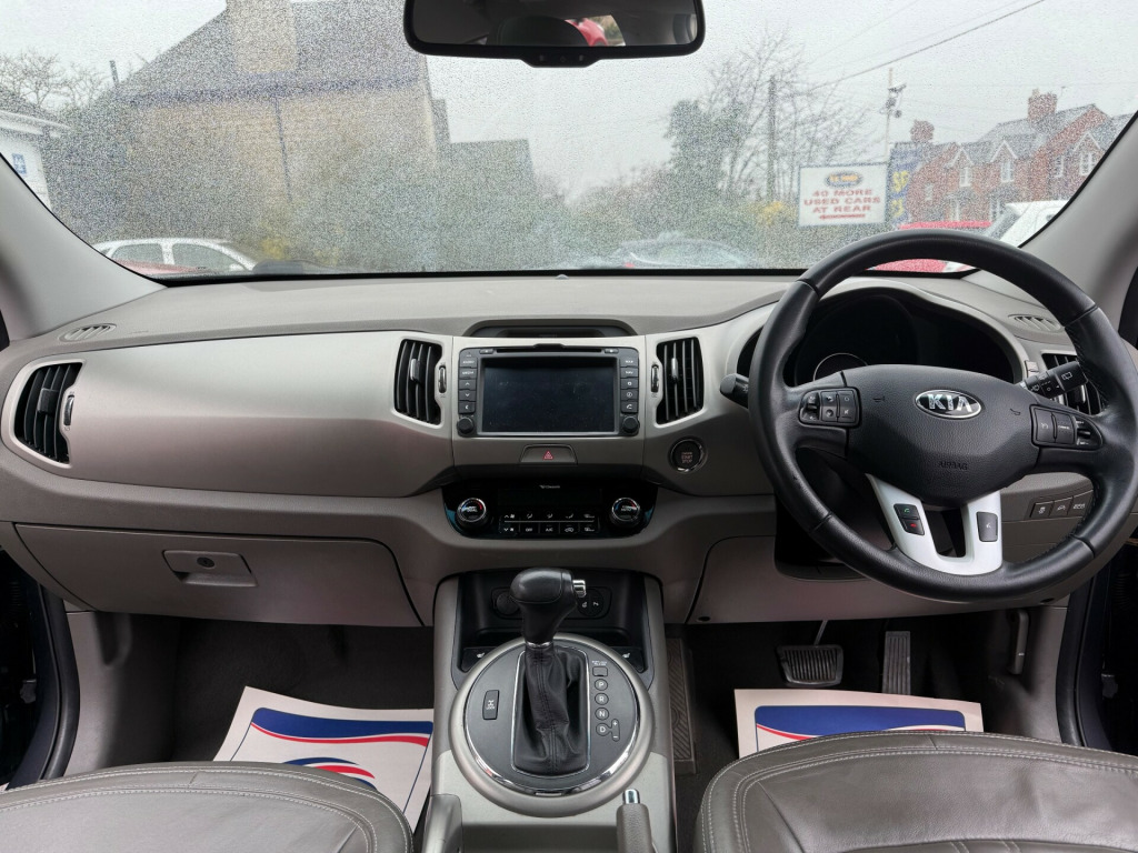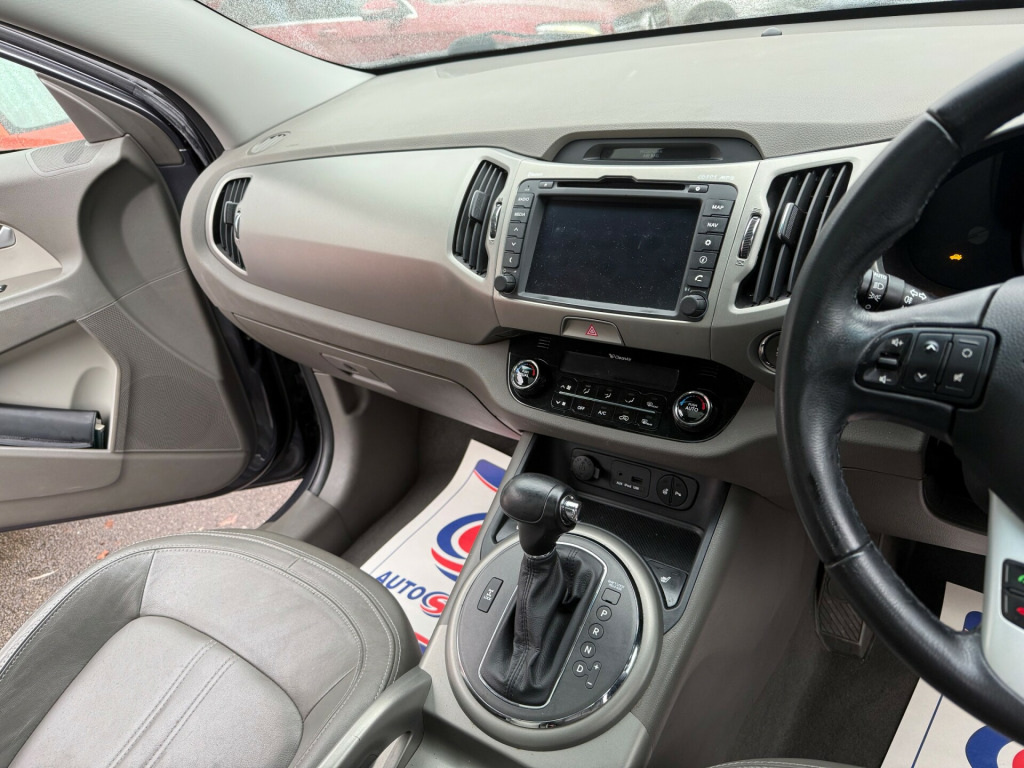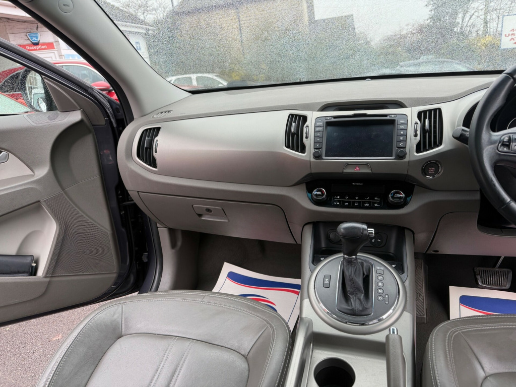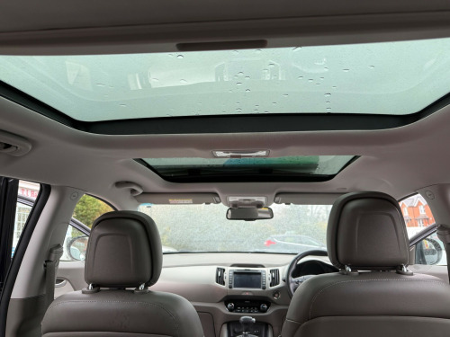 Automatic lovely Kia sportage one former owner with fantastic service history comes with 12 months mot and service v power socket - front, 12v power socket - luggage compartment, 6-speaker system, 7in touchscreen satellite navigation with european mapping with traffic message channel - tmc, bluetooth with voice recognition, external amp and sub woofer, rds radio with cd and mp3, usb and aux ports, ipod connectivity, 18in alloy wheels, body coloured door mirrors, door handles - chrome, electric windows - front and rear, electrically adjustable and heated door mirrors, electrically folding door mirrors, front grille - chrome, full size alloy spare wheel, integrated indicator lights led in door mirrors, locking wheel nuts, mouldings - side sill - black, mouldings - waistline - chrome coated, panoramic sunroof - electric one touch with safety function, privacy glass - rear windows and tailgate, rear spoiler, roof rails, stainless steel door scuff plates, tinted glass, 3 x passenger assist grips, 60-40 split folding 2nd row seats, air conditioning - dual automatic climate control, air filter, all-round height adjustable headrests, armrest - centre console with storage, armrest - front, auto dimming rear-view mirror, centre cabin light, cupholders - centre console x2, cupholders in rear armrest, dashboard - metallic finish trim, drivers seat height adjuster, front cabin map light, front door courtesy reflectors, front seatback pockets, front and rear door map pockets with bottle holder, front and rear door storage, glovebox - cooled, glovebox with illumination, head rests - front active, leather trimmed door armrests, leather trimmed gear shift, leather trimmed steering wheel, luggage area light, luggage compartment - hooks, luggage compartment - load cover, metallic finish interior door handles, premium vision instrument cluster, rain sensing front wipers, seats - drivers lumbar support, seats - heated front and rear, steering wheel mounted audio controls, sunvisors with vanity mirrors and ticket holder, tilt and telescopic steering wheel adjustment, vanity mirror illumination, abs - anti lock braking system, airbags - curtain twin full length, airbags - driver, airbags - front side, airbags - passenger, alarm system, child safety rear door locks, dbc - downhill brake control, deadlocks, ebd - electronic brakeforce distribution, esc - electronic stability control, emergency stop signalling - ess, engine immobiliser, engine start-stop button with smart entry system, front passenger airbag cut off switch, hill-start assist control - hac, isofix child seat top tethers and anchor fixings, impact sensing auto door unlocking, interior door lock-unlock function, speed sensing auto door locking, active eco switch, adaptive brake lights, cruise control, motor driven power steering - mdps, park assist system with front and rear parking sensors, rear parking sensors, reversing camera system, trip computer, automatic headlight control, cornering lights, front fog lights, headlight washers, headlights - follow me home function, headlights - xenon with auto levelling, high mounted brake light, led daytime running lights