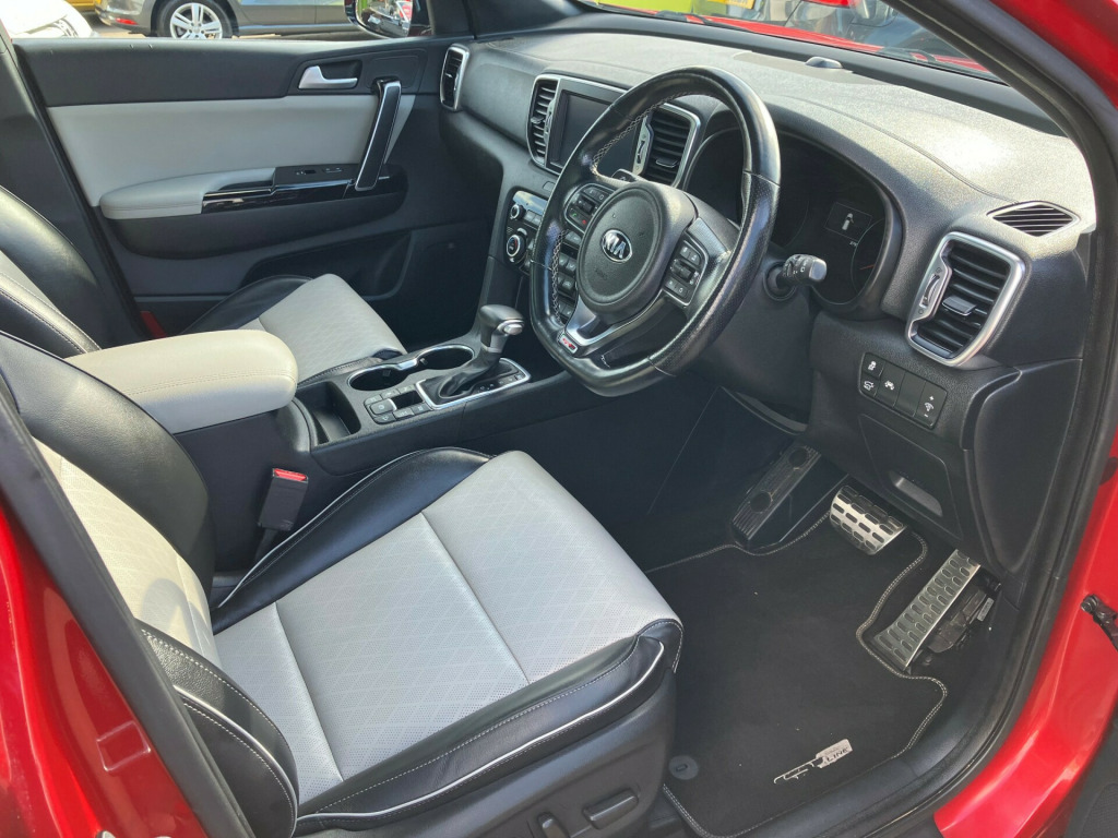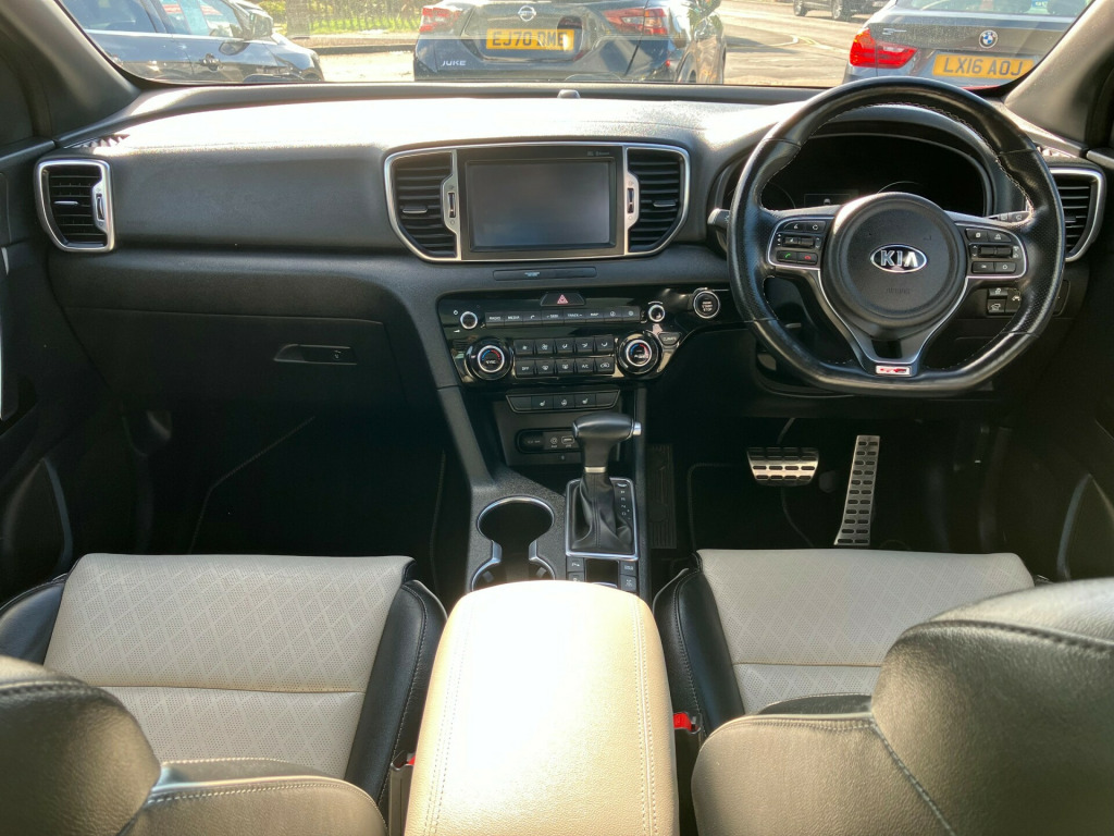 This 2017 Kia Sportage GT-Line GDi S 5 Dr 1.6T (7) DCT Auto Estate is the perfect family car with only 37800 miles on the clock and it will come with a new MOT. Powered by a petrol engine, this 5-door vehicle is ULEZ compliant. With only 1 previous registered keeper, this car is in excellent condition and comes fully loaded with features including an 8'' touch screen, Apple CarPlay/Android Auto, Bluetooth connectivity with voice control, colour information display, and cruise control with speed limiter. Don't miss out on this spacious and reliable estate car that's ready for all your adventures.,   touch screen, apple car play/android auto, bluetooth connectivity with voice control, colour information display, cruise control + speed limiter, digital clock, drive mode selector, emergency stop signalling system, front and rear parking sensors, kia connected services, lane keep assist, power tailgate, satellite navigation with rear view parking camera, smart park assist system (spas), speed limit display, speed sensitive power steering, stop/start button, trip computer, wireless smartphone charger, 8 speakers, bluetooth audio streaming, dab radio with mp3, jbl premium sound system, rear usb port, steering wheel mounted audio controls, usb/ipod/auxiliary input connections, adaptive headlights, auto dimming rear view mirror, automatic front rain sensing wipers, automatic headlights, bi-xenon headlights + auto levelling, body colour bumpers, body colour electric adjustable door mirrors, cornering light, dual exhaust pipes, electric folding door mirrors, electric panoramic glass sunroof, electric windows, front drivers side windows/one touch up/down, headlight washers, heated door mirrors, high beam assist, led daytime running lights, led indicators in door mirrors, led rear lights, privacy glass (rear side windows and rear screen), rear spoiler, rear wiper, shark fin roof aerial, silver roof rails, speed sensitive front wipers, tinted glass, trailer stability assist, welcome home function, wide angle drivers door mirror, windscreen wiper de-icer, 10 way driver/8 way passenger electrically power adjustable seats, 12v power in rear centre console, 12v power point front, 3 passenger grab handles, 60/40 split folding rear seat, air filter, ambient lighting, centre console storage box/armrest, door armrest in leather, door courtesy lamps, driver, driver/passenger sunvisors with ticket holders, dual zone automatic air conditioning, front and rear door pockets, front map lights, front seat and rear pockets, heated front and outer rear seats, heated steering wheel, height adjustable headrests, illuminated glovebox, illuminated vanity mirrors, isofix child seat preparation, leather trimmed gearshift, leather trimmed steering wheel, leather upholstery, luggage area lamp, luggage compartment cover, luggage net with hooks, paddle shift controls, rear centre armrest with cupholder, rear coat hooks, rear headrests, satin chrome interior door handles, stainless steel scuff plates, tilt/telescopic adjustable steering wheel, ventilation ducts to rear compartment, exterior styling pack - gt-line, interior styling pack - sportage gt-line/gt-line s, 3 point front seat belts, 3x3 point rear seatbelts, abs/ebd, active front headrests, automatic unlocking of doors in case of impact, dual front airbags, electronic parking brake, esp + traction control, front seatbelt pretensioners + load limiters, front side airbags, full size curtain airbags, height adjustable front seatbelts, hill start assist control (hac), passenger airbag deactivate switch, rear child proof door locks, tyre pressure monitoring system, anti theft alarm, deadlocks, immobiliser, locking wheel nuts, smart keyless entry, speed sensitive auto door locking, high gloss black centre fascia, 19'' alloy wheels b-type, temporary spare wheel, 19'' Alloys
