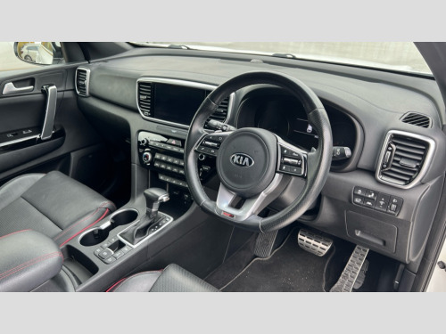 Kia Sportage 1.6 CRDi 48V ISG GT-Line S 5dr DCT Auto [AWD] 360 degree around view monitor, 4.2" supervision colour cluster display, 8" touchscreen satellite navigation with European mapping and traffic messaging channel, Android auto with voice control, Apple car play with voice control, Blind spot collision warning, Drive mode selector, Driver attention warning, Emergency stop signalling system, Forward collision avoidance assist, Front parking sensor, Kia connected services featuring TomTom live, Lane keep assist, Rear parking sensor, Reversing camera, Smart cruise control with stop and go functionality, Smart power tailgate, Speed limit information, Speed sensitive power steering, Telematics system with UVO connect services, Trip computer, Windscreen washer level indicator, Wireless Smartphone charger, Intelligent Stop and Go, Bluetooth audio streaming, DAB Radio with MP3, JBL Premium sound system with 8 speakers, external amp, subwoofer and front centre speaker, Rear USB port, Steering wheel mounted audio controls, USB/iPod/auxiliary input connections, All round electric windows with drivers and front passenger auto up/down function, Auto dimming rear view mirror, Automatic lighting control, Automatic window defogger, Black wheel arch body mouldings and side sills with dark chrome insert, Body colour door handles with chrome inserts, Body colour door mirrors, Chrome window surround, Dark chrome front bumper insert, Dark chrome front grille surround, Dual exhaust pipes, EcoDynamics + Badge, Electric panoramic glass sunroof (Electric one touch with safety function), Electrically adjustable/heated/folding door mirrors with LED indicators, Front wiper de-icer, High beam assist, High gloss black blade mesh radiator grille, LED Bi-Function headlights, LED daytime running lights, LED ice cube front fog lights, LED rear lights, LED third brake light, Privacy glass - Rear windows and tailgate, Rain sensing front wipers, Rear spoiler, Rear wiper, Roof rails, Shark fin antenna, Silver painted front and rear skid plates, Tinted glass, Trailer stability assist, Welcome and follow-me home light functionality, Wide view drivers door mirror, 10 way driver/8 way passenger electrically power adjustable seats, 12V power in front and rear centre console, 3 x passenger assist grips, 60/40 split folding rear seat, Air filter, All-round height adjustable headrests, Aluminium door scuff plates, Aluminium pedals, Black headlining, Centre console storage box, Chrome boot sill guard, D-Shaped sports leather steering wheel and perforated inserts with GT-Line logo, Driver and front passenger side sunvisors with illuminated vanity mirrors, Drivers seat power lumbar support, Dual zone automatic air conditioning, Front and rear door storage, Front cabin LED map light with sunglasses case, Front door courtesy reflectors, Front seat and rear pockets, Front/rear centre armrests, Gear shift indicator, Glovebox illumination, Heated front and outer rear seats, Heated steering wheel, Interior door lock/unlock function, ISOFIX Child seat top tethers and anchor fixings outer rear seats, Leather trimmed door armrests, Leather trimmed gearshift, Leather upholstery with red piping and stitching, Luggage area LED light, Luggage area load cover, Luggage net with hooks, Paddle shift controls, Rear centre armrest with cupholder, Rear coat hooks, Satin chrome interior door handles, Side cabin LED lights, Tilt/telescopic adjustable steering wheel, Ventilated front seats, Ventilation ducts to rear compartment, Active front headrests, All round 3-point seatbelts, Anti-lock braking system with electronic brakeforce distribution, Dual front side airbags, Electronic parking brake, Electronic stability control with downhill brake control, Front passenger airbag cut-off switch, Front seatbelt pretensioners + load limiters, Height adjustable front seatbelts, Hill start assist control (HAC), Impact sensing auto door unlocking, Rear door child safety locks, Traction control, Twin curtain airbags with roll over sensor, Twin front airbags, Tyre pressure monitoring system, Advanced anti-theft system including immobiliser and alarm, Door deadlocks, Engine Start/Stop Button with Smart Entry System, Locking wheel nuts, Speed sensitive auto door locking, Visible vehicle identification number, High gloss black centre fascia, 19" alloy Wheels B-type, Tyre mobility kit