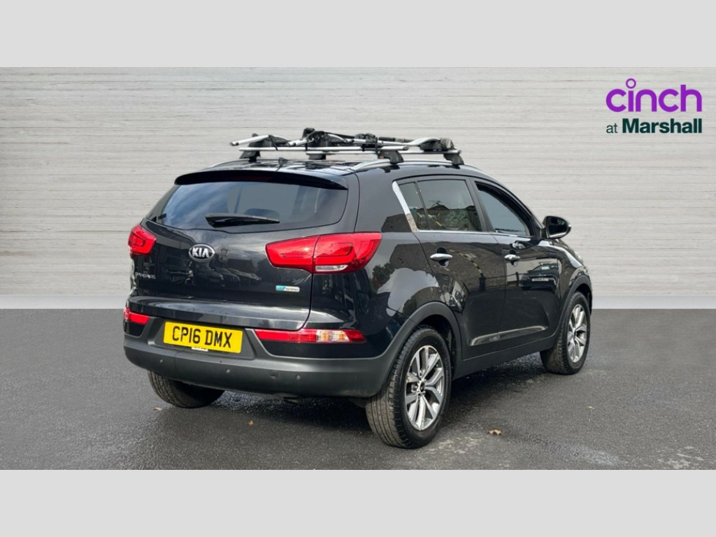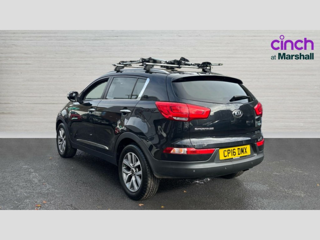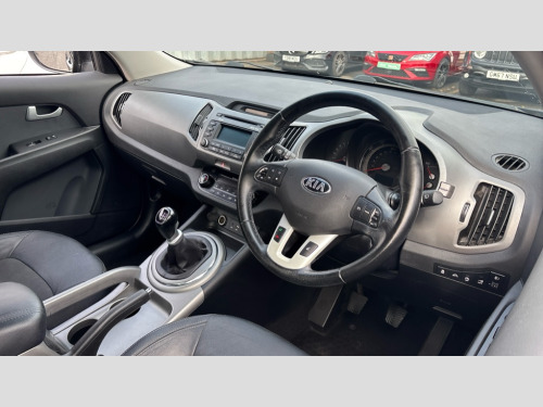 Kia Sportage 1.6 GDi ISG 2 5dr Bluetooth connectivity with voice control, Cruise control, Reversing Aid Sensors, Speed sensitive power steering, Trip computer, 6 speakers, Bluetooth audio streaming, RDS radio CD with MP3 player, Steering wheel mounted audio controls, USB/iPod/auxiliary input connections, Automatic front rain sensing wipers, Body colour bumpers, Body colour electric adjustable door mirrors, Chrome exterior door handles, Chrome front grille, Chrome side moulding trim, Cornering light, Electric folding door mirrors, Electric panoramic glass sunroof, Electric windows, Front drivers side windows/one touch up/down, Front fog lights, Headlamp levelling, Heated door mirrors, LED daytime running lights, LED indicators in door mirrors, Privacy glass (rear side windows and rear screen), Rear spoiler, Rear wiper, Silver roof rails, Speed sensitive front wipers, Tinted glass, Trailer stability assist, 12V power point front, 12V power point in luggage area, 3 passenger grab handles, 60/40 split folding rear seat, Air filter, Centre console storage box/armrest, Centre room lamp, Cooled glovebox, Door armrest in leather, Door courtesy lamps, Driver's lumbar support, Driver's seat height adjuster, Driver/passenger sunvisors with ticket holders, Dual zone automatic air conditioning, Front and rear door pockets, Front map lights, Front seat and rear pockets, Grey headlining, Height adjustable headrests, Ignition key lock illumination, Illuminated glovebox, Illuminated vanity mirrors, Isofix child seat preparation, Leather steering wheel and gear knob, Luggage area lamp, Luggage compartment cover, Luggage net, Luggage net with hooks, Metallic finish inner door handles, Part leather upholstery, Rear centre armrest with cupholder, Rear coat hooks, Rear headrests, Tilt/telescopic adjustable steering wheel, 3 point front seat belts, 3x3 point rear seatbelts, ABS/EBD, Active front headrests, Automatic unlocking of doors in case of impact, Dual front airbags, ESP + traction control, Front seatbelt pretensioners + load limiters, Front side airbags, Full size curtain airbags, Height adjustable front seatbelts, Hill start assist control (HAC), Passenger airbag deactivate switch, Rear child proof door locks, Tyre pressure monitoring system, Anti theft alarm, Deadlocks, Immobiliser, Locking wheel nuts, Remote central locking with 2 remote folding keys, Speed sensitive auto door locking, Metallic grain dashboard, 17" Alloy wheels, Full size alloy spare wheel