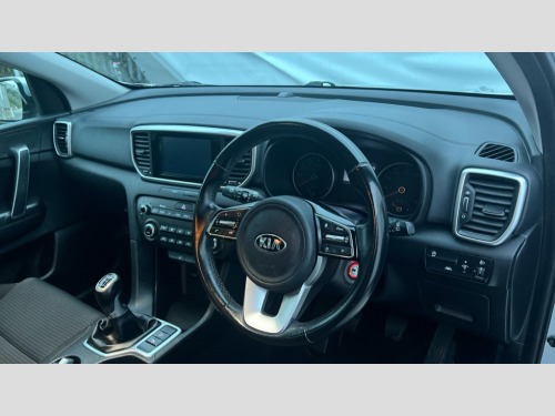 Kia Sportage 1.6 GDi ISG 2 5dr 3.5" supervision cluster display, 8" touchscreen satellite navigation with European mapping and traffic messaging channel, Android auto with voice control, Apple car play with voice control, Cruise control + speed limiter, Driver attention warning, Emergency stop signalling system, Kia connected services featuring TomTom live, Lane keep assist, Rear parking sensor, Reversing camera, Speed limit information, Speed sensitive power steering, Telematics system with UVO connect services, Trip computer, Windscreen washer level indicator, Intelligent Stop and Go, 6 speaker audio system, Bluetooth audio streaming, DAB Radio with MP3, Rear USB port, Steering wheel mounted audio controls, USB/iPod/auxiliary input connections, All round electric windows with drivers auto up/down function, Auto dimming rear view mirror, Automatic lighting control, Automatic window defogger, Bi-Function halogen headlights, Black side sill and wheel arch body mouldings, Body colour door handles with chrome inserts, Body colour door mirrors, Chrome front bumper insert, Chrome grille surround, Chrome window surround, Electrically adjustable/heated/folding door mirrors with LED indicators, High beam assist, High gloss black diamond mesh radiator grille, LED daytime running lights, Privacy glass - Rear windows and tailgate, Projection front fog lights with matt black surround, Rain sensing front wipers, Rear spoiler, Rear wiper, Roof rails, Shark fin antenna, Tinted glass, Trailer stability assist, Welcome and follow-me home light functionality, Wide view drivers door mirror, 12V power in front and rear centre console, 3 x passenger assist grips, 60/40 split folding rear seat, Air filter, All-round height adjustable headrests, Centre cabin light, Centre console storage box, Driver and front passenger side sunvisors with illuminated vanity mirrors, Driver's seat manual height adjust, Drivers seat power lumbar support, Dual zone automatic air conditioning, Front and rear door storage, Front cabin LED map light with sunglasses case, Front door courtesy reflectors, Front seat and rear pockets, Front/rear centre armrests, Gear shift indicator, Glovebox illumination, Heated front and outer rear seats, Ignition key lock illumination, Interior door lock/unlock function, ISOFIX Child seat top tethers and anchor fixings, Leather steering wheel, Leather trimmed door armrests, Leather trimmed gearshift, Light grey headlining, Luggage area light, Luggage area load cover, Luggage net with hooks, Premium cloth upholstery, Rear centre armrest with cupholder, Rear coat hooks, Satin chrome interior door handles, Tilt/telescopic adjustable steering wheel, Ventilation ducts to rear compartment, Active front headrests, All round 3-point seatbelts, Anti-lock braking system with electronic brakeforce distribution, Dual front side airbags, Electronic stability control with downhill brake control, Front passenger airbag cut-off switch, Front seatbelt pretensioners + load limiters, Height adjustable front seatbelts, Hill start assist control (HAC), Impact sensing auto door unlocking, Rear door child safety locks, Traction control, Twin curtain airbags with roll over sensor, Twin front airbags, Tyre pressure monitoring system, Advanced anti-theft system including immobiliser and alarm, Door deadlocks, Locking wheel nuts, Remote central door locking with fold away key, Speed sensitive auto door locking, Visible vehicle identification number, Metallic finish centre fascia, 17" Alloy wheels, Tyre mobility kit