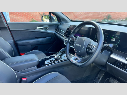 Kia Sportage 1.6T GDi HEV GT-Line 5dr Auto 12.3" Display with navigation, 4.2" supervision colour cluster display, Apple car play/Android Auto with voice control, Drive mode selector, E-call, Forward collision avoidance assist (FCA) - city/pedestrian/cyclist/junction covering, Front and rear parking sensors, Highway Driving Assist (HDA), Intelligent speed limit assist, Kia Connect (UVO), Lane Following Assist (LFA), Lane keep assist, Low washer fluid warning, Rear view monitor, Reversing camera system integrated into centre fascia screen, Smart cruise control with stop and go functionality, Speed sensitive power steering, Trip computer, Windscreen washer level indicator, Intelligent Stop and Go, 6 speaker audio system, Bluetooth audio streaming, DAB Radio with MP3, Rear USB port, Steering wheel mounted audio controls, USB C type charging ports on centre console, USB C type charging ports on side of front seats, USB port for connection of a media device, All round electric windows with drivers and front passenger auto up/down function, Automatic headlight control system, Automatic window defogger, Backlite glass heated with timer, Body colour and black bumper with silver accents, Body colour exterior door handles, Body colour radiator upper garnish and door garnish, Electrically adjustable/heated/folding door mirrors with LED indicators, Front and rear chrome skid plates, Gloss black door mirrors, Gloss black radiator grille, Gloss black side sill and wheel arch body mouldings, Glossy black roof rack, High beam assist, Interior electrochromic mirror, LED daytime running lights, LED front fog lamps, LED headlamps (low and high beam - MFR type), LED High mounted stop light, LED rear combination lamp, Rain sensing wipers with aero blades, Rear fog lamp, Rear privacy glass, Rear side wing doors, Rear spoiler, Rear wiper, Satin finished beltline, Silver coloured inserts to bumpers, Tinted rear glass, Trailer stability assist, 12V power socket in front centre fascia and luggage compartment, 2nd row personal lamps, 3 seat bench in 2nd row, 3 x passenger assist grips, 40/20/40 split folding rear seat, All-round height adjustable headrests, Black headlining, Centre console storage box, Cupholders in rear armrest, D-Shaped sports leather steering wheel and perforated inserts with GT-Line logo, Door courtesy lamps, Drink holder at centre armrest, Driver and front passenger side sunvisors with illuminated vanity mirrors, Driver's seat manual height adjust, Drivers seat power lumbar support, Front and rear door storage, Front seat and rear pockets, Front/rear centre armrests, Gear shift indicator, Glovebox illumination, Heated front seats, Heated steering wheel, Interior door lock/unlock function, ISOFIX Child seat top tethers and anchor fixings outer rear seats, Luggage area light, Luggage area load cover, Luggage net with hooks, Metal paint interior door handles, Overhead console lamp, Paddle shift controls, Rear cabin light, Rear coat hooks, Single front passenger seat, Sports pedals, Suede leather upholstery, Three zone climate control, Tilt/telescopic adjustable steering wheel, Ventilation ducts to rear compartment, Active front headrests, All round 3-point seatbelts, Anti-lock braking system (ABS), Dual front side airbags, Dual horn, Electronic parking brake, Electronic stability control with downhill brake control, Front passenger airbag cut-off switch, Front seatbelt pretensioners + load limiters, Height adjustable front seatbelts, Hill start assist control (HAC), Impact sensing auto door unlocking, Multi collision brake assist, Rear door child safety locks, Rear seat alert system, Traction control, Twin curtain airbags, Twin front airbags, Tyre pressure monitoring system, Advanced anti-theft system including immobiliser and alarm, Door deadlocks, Engine Start/Stop Button with Smart Entry System, Locking wheel nuts, Speed sensitive auto door locking, Visible vehicle identification number, Aluminium pattern finish centre fascia and door garnish, 18" GT-Line alloy wheels, Tyre mobility kit