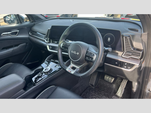 Kia Sportage 1.6T GDi HEV GT-Line S 5dr Auto 12.3" Display with navigation, 12.3" supervision colour cluster display, 360 degree around view monitor, Apple car play/Android Auto with voice control, Blind spot collision avoidance assist, Blind spot view monitor, Drive mode selector, E-call, Forward collision avoidance assist (FCA) - city/pedestrian/cyclist/junction covering, Front and rear parking sensors, Highway Driving Assist (HDA), Intelligent speed limit assist, Kia Connect (UVO), Lane Following Assist (LFA), Lane keep assist, Low washer fluid warning, Parking collision avoidance assist (PCA), Remote smart parking assist, Reversing camera system integrated into centre fascia screen, Smart cruise control with stop and go functionality, Smart power tailgate, Speed sensitive power steering, Trip computer, Windscreen washer level indicator, Wireless Smartphone charger, Intelligent Stop and Go, Bluetooth audio streaming, DAB Radio with MP3, Harman Kardon premium sound system, Rear USB port, Steering wheel mounted audio controls, USB C type charging ports on centre console, USB C type charging ports on side of front seats, USB port for connection of a media device, All round electric windows with drivers and front passenger auto up/down function, Automatic headlight control system, Automatic window defogger, Backlite glass heated with timer, Body colour and black bumper with silver accents, Body colour exterior door handles, Body colour radiator upper garnish and door garnish, Dual LED adaptive headlamps, Electric panoramic glass sunroof (Electric one touch with safety function), Electrically adjustable/heated/folding door mirrors with LED indicators, Front and rear chrome skid plates, Gloss black door mirrors, Gloss black radiator grille, Gloss black side sill and wheel arch body mouldings, Glossy black roof rack, High beam assist, Interior electrochromic mirror, LED daytime running lights, LED front fog lamps, LED High mounted stop light, LED rear combination lamp, Rain sensing wipers with aero blades, Rear fog lamp, Rear privacy glass, Rear side wing doors, Rear spoiler, Rear wiper, Satin finished beltline, Silver coloured inserts to bumpers, Tinted rear glass, Trailer stability assist, 10 way driver/8 way passenger electrically power adjustable seats, 12V power socket in front centre fascia and luggage compartment, 3 seat bench in 2nd row, 3 x passenger assist grips, 40/20/40 split folding rear seat, All-round height adjustable headrests, Ambient lighting, Black headlining, Centre console storage box, Cupholders in rear armrest, D-Shaped sports leather steering wheel and perforated inserts with GT-Line logo, Door courtesy lamps, Drink holder at centre armrest, Driver and front passenger side sunvisors with illuminated vanity mirrors, Driver seat memory function, Drivers seat power lumbar support, Front and rear door storage, Front seat and rear pockets, Front/rear centre armrests, Gear shift indicator, Glovebox illumination, Heated front and outer rear seats, Heated steering wheel, Interior door lock/unlock function, ISOFIX Child seat top tethers and anchor fixings outer rear seats, LED interior personal lamp, LED lighting in overhead console, Luggage area LED light, Luggage area load cover, Luggage net with hooks, Metal paint interior door handles, Paddle shift controls, Rear cabin light, Rear coat hooks, Single front passenger seat, Sports pedals, Suede leather upholstery, Three zone climate control, Tilt/telescopic adjustable steering wheel, Ventilated front seats, Ventilation ducts to rear compartment, Active front headrests, All round 3-point seatbelts, Anti-lock braking system (ABS), Dual front side airbags, Dual horn, Electronic parking brake, Electronic stability control with downhill brake control, Front passenger airbag cut-off switch, Front seatbelt pretensioners + load limiters, Height adjustable front seatbelts, Hill start assist control (HAC), Impact sensing auto door unlocking, Multi collision brake assist, Rear door child safety locks, Rear seat alert system, Traction control, Twin curtain airbags, Twin front airbags, Tyre pressure monitoring system, Advanced anti-theft system including immobiliser and alarm, Door deadlocks, Engine Start/Stop Button with Smart Entry System, Locking wheel nuts, Speed sensitive auto door locking, Visible vehicle identification number, Aluminium pattern finish centre fascia and door garnish, 18" GT-Line alloy wheels, Michelin tyres, Tyre mobility kit