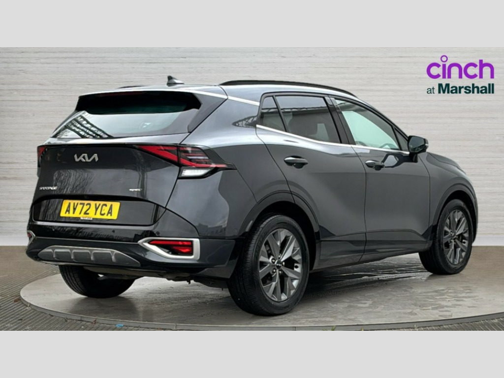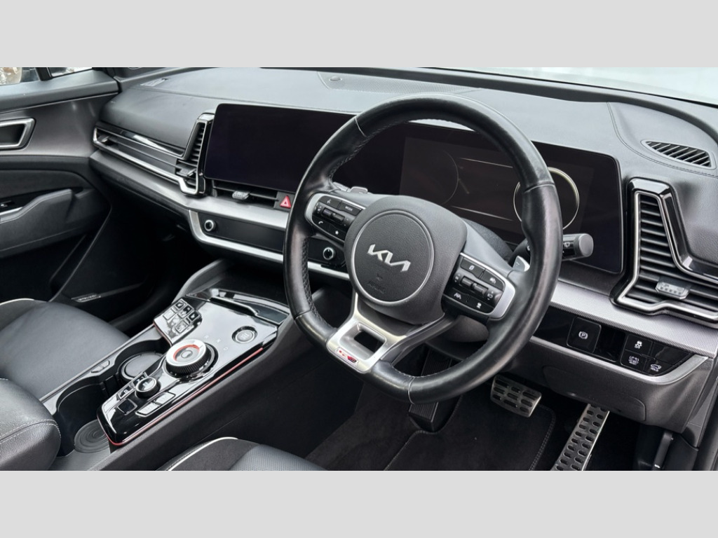 Kia Sportage 1.6T GDi HEV GT-Line S 5dr Auto 12.3" Display with navigation, 12.3" supervision colour cluster display, 360 degree around view monitor, Apple car play/Android Auto with voice control, Blind spot collision avoidance assist, Blind spot view monitor, Drive mode selector, E-call, Forward collision avoidance assist (FCA) - city/pedestrian/cyclist/junction covering, Front and rear parking sensors, Highway Driving Assist (HDA), Intelligent speed limit assist, Kia Connect (UVO), Lane Following Assist (LFA), Lane keep assist, Low washer fluid warning, Parking collision avoidance assist (PCA), Remote smart parking assist, Reversing camera system integrated into centre fascia screen, Smart cruise control with stop and go functionality, Smart power tailgate, Speed sensitive power steering, Trip computer, Windscreen washer level indicator, Wireless Smartphone charger, Intelligent Stop and Go, Bluetooth audio streaming, DAB Radio with MP3, Harman Kardon premium sound system, Rear USB port, Steering wheel mounted audio controls, USB C type charging ports on centre console, USB C type charging ports on side of front seats, USB port for connection of a media device, All round electric windows with drivers and front passenger auto up/down function, Automatic headlight control system, Automatic window defogger, Backlite glass heated with timer, Body colour and black bumper with silver accents, Body colour exterior door handles, Body colour radiator upper garnish and door garnish, Dual LED adaptive headlamps, Electric panoramic glass sunroof (Electric one touch with safety function), Electrically adjustable/heated/folding door mirrors with LED indicators, Front and rear chrome skid plates, Gloss black door mirrors, Gloss black radiator grille, Gloss black side sill and wheel arch body mouldings, Glossy black roof rack, High beam assist, Interior electrochromic mirror, LED daytime running lights, LED front fog lamps, LED High mounted stop light, LED rear combination lamp, Rain sensing wipers with aero blades, Rear fog lamp, Rear privacy glass, Rear side wing doors, Rear spoiler, Rear wiper, Satin finished beltline, Tinted rear glass, Trailer stability assist, 10 way driver/8 way passenger electrically power adjustable seats, 12V power socket in front centre fascia and luggage compartment, 3 seat bench in 2nd row, 3 x passenger assist grips, 40/20/40 split folding rear seat, All-round height adjustable headrests, Ambient lighting, Black headlining, Centre console storage box, Cupholders in rear armrest, D-Shaped sports leather steering wheel and perforated inserts with GT-Line logo, Door courtesy lamps, Drink holder at centre armrest, Driver and front passenger side sunvisors with illuminated vanity mirrors, Driver seat memory function, Drivers seat power lumbar support, Front and rear door storage, Front seat and rear pockets, Front/rear centre armrests, Gear shift indicator, Glovebox illumination, Heated front and outer rear seats, Heated steering wheel, Interior door lock/unlock function, ISOFIX Child seat top tethers and anchor fixings outer rear seats, LED interior personal lamp, LED lighting in overhead console, Luggage area LED light, Luggage area load cover, Luggage net with hooks, Metal paint interior door handles, Paddle shift controls, Rear cabin light, Rear coat hooks, Single front passenger seat, Sports pedals, Suede leather upholstery, Three zone climate control, Tilt/telescopic adjustable steering wheel, Ventilated front seats, Ventilation ducts to rear compartment, Active front headrests, All round 3-point seatbelts, Anti-lock braking system (ABS), Dual front side airbags, Dual horn, Electronic parking brake, Electronic stability control with downhill brake control, Front passenger airbag cut-off switch, Front seatbelt pretensioners + load limiters, Height adjustable front seatbelts, Hill start assist control (HAC), Impact sensing auto door unlocking, Multi collision brake assist, Rear door child safety locks, Rear seat alert system, Traction control, Twin curtain airbags, Twin front airbags, Tyre pressure monitoring system, Advanced anti-theft system including immobiliser and alarm, Door deadlocks, Engine Start/Stop Button with Smart Entry System, Locking wheel nuts, Speed sensitive auto door locking, Visible vehicle identification number, Aluminium pattern finish centre fascia and door garnish, 18" GT-Line alloy wheels, Michelin tyres, Tyre mobility kit