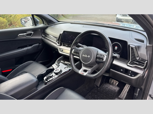 Kia Sportage 1.6T GDi HEV GT-Line S 5dr Auto 12.3" Display with navigation, 12.3" supervision colour cluster display, 360 degree around view monitor, Apple car play/Android Auto with voice control, Blind spot collision avoidance assist, Blind spot view monitor, Drive mode selector, E-call, Forward collision avoidance assist (FCA) - city/pedestrian/cyclist/junction covering, Front and rear parking sensors, Highway Driving Assist (HDA), Intelligent speed limit assist, Kia Connect (UVO), Lane Following Assist (LFA), Lane keep assist, Low washer fluid warning, Parking collision avoidance assist (PCA), Remote smart parking assist, Reversing camera system integrated into centre fascia screen, Smart cruise control with stop and go functionality, Smart power tailgate, Speed sensitive power steering, Trip computer, Windscreen washer level indicator, Wireless Smartphone charger, Intelligent Stop and Go, Bluetooth audio streaming, DAB Radio with MP3, Harman Kardon premium sound system, Rear USB port, Steering wheel mounted audio controls, USB C type charging ports on centre console, USB C type charging ports on side of front seats, USB port for connection of a media device, All round electric windows with drivers and front passenger auto up/down function, Automatic headlight control system, Automatic window defogger, Backlite glass heated with timer, Black bumpers, Body colour exterior door handles, Body colour radiator upper garnish and door garnish, Dual LED adaptive headlamps, Electric panoramic glass sunroof (Electric one touch with safety function), Electrically adjustable/heated/folding door mirrors with LED indicators, Front and rear chrome skid plates, Gloss black door mirrors, Gloss black radiator grille, Gloss black side sill and wheel arch body mouldings, Glossy black roof rack, High beam assist, Interior electrochromic mirror, LED daytime running lights, LED front fog lamps, LED High mounted stop light, LED rear combination lamp, Rain sensing wipers with aero blades, Rear fog lamp, Rear privacy glass, Rear side wing doors, Rear spoiler, Rear wiper, Satin finished beltline, Silver coloured inserts to bumpers, Tinted rear glass, Trailer stability assist, 10 way driver/8 way passenger electrically power adjustable seats, 12V power socket in front centre fascia and luggage compartment, 3 seat bench in 2nd row, 3 x passenger assist grips, 40/20/40 split folding rear seat, All-round height adjustable headrests, Ambient lighting, Black headlining, Centre console storage box, Cupholders in rear armrest, D-Shaped sports leather steering wheel and perforated inserts with GT-Line logo, Door courtesy lamps, Drink holder at centre armrest, Driver and front passenger side sunvisors with illuminated vanity mirrors, Driver seat memory function, Drivers seat power lumbar support, Front and rear door storage, Front seat and rear pockets, Front/rear centre armrests, Gear shift indicator, Glovebox illumination, Heated front and outer rear seats, Heated steering wheel, Interior door lock/unlock function, ISOFIX Child seat top tethers and anchor fixings outer rear seats, LED interior personal lamp, LED lighting in overhead console, Luggage area LED light, Luggage area load cover, Luggage net with hooks, Metal paint interior door handles, Paddle shift controls, Rear cabin light, Rear coat hooks, Single front passenger seat, Sports pedals, Suede leather upholstery, Three zone climate control, Tilt/telescopic adjustable steering wheel, Ventilated front seats, Ventilation ducts to rear compartment, Active front headrests, All round 3-point seatbelts, Anti-lock braking system (ABS), Dual front side airbags, Dual horn, Electronic parking brake, Electronic stability control with downhill brake control, Front passenger airbag cut-off switch, Front seatbelt pretensioners + load limiters, Height adjustable front seatbelts, Hill start assist control (HAC), Impact sensing auto door unlocking, Multi collision brake assist, Rear door child safety locks, Rear seat alert system, Traction control, Twin curtain airbags, Twin front airbags, Tyre pressure monitoring system, Advanced anti-theft system including immobiliser and alarm, Door deadlocks, Engine Start/Stop Button with Smart Entry System, Locking wheel nuts, Speed sensitive auto door locking, Visible vehicle identification number, Aluminium pattern finish centre fascia and door garnish, 18" GT-Line alloy wheels, Michelin tyres, Tyre mobility kit