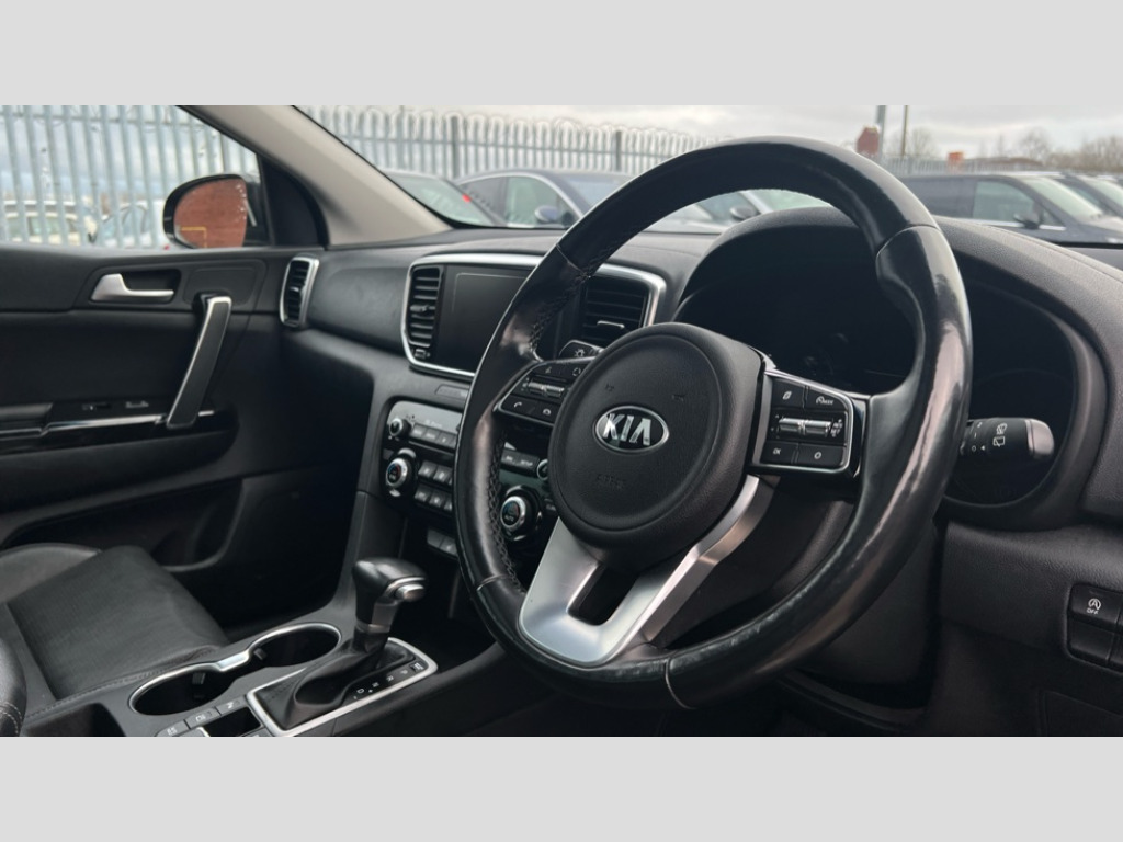 Kia Sportage 1.6T GDi ISG 4 5dr DCT Auto [AWD] 360 degree surround camera, 4.2" supervision colour cluster display, 8" touchscreen satellite navigation with European mapping and traffic messaging channel, Android auto with voice control, Apple car play with voice control, Blind spot collision warning, Bluetooth connectivity with voice control, Cruise control + speed limiter, Digital clock, Drive mode selector, Driver attention warning, Emergency stop signalling system, Forward collision avoidance assist, Front parking sensor, Kia connected services featuring TomTom live, Lane keep assist, Rear parking sensor, Speed limit information, Speed sensitive power steering, Trip computer, Windscreen washer level indicator, Intelligent Stop and Go, Bluetooth audio streaming, DAB Radio with MP3, JBL Premium sound system with 8 speakers, external amp, subwoofer and front centre speaker, Rear USB port, Steering wheel mounted audio controls, USB/iPod/auxiliary input connections, All round electric windows with drivers auto up/down function, Auto dimming rear view mirror, Automatic defog system, Automatic headlights, Black wheel arch body mouldings and side sills with chrome insert, Body colour door handles with chrome inserts, Body colour door mirrors, Chrome front bumper insert, Chrome grille surround, Chrome window surround, Cornering light, Electric panoramic glass sunroof, Electrically adjustable/heated/folding door mirrors with LED indicators, Front fog lights, High beam assist, High gloss black diamond mesh radiator grille, LED Bi-Function headlights, LED daytime running lights, LED rear lights, Privacy glass (rear side windows and rear screen), Rain sensing front wipers, Rear spoiler, Rear wiper, Roof rails, Shark fin antenna, Silver painted front and rear skid plates, Speed sensitive front wipers, Tinted glass, Trailer stability assist, Welcome and follow-me home light functionality, Wide view drivers door mirror, Windscreen wiper de-icer, 10 way driver/8 way passenger electrically power adjustable seats, 12V power in front and rear centre console, 3 x passenger assist grips, 60/40 split folding rear seat, Air filter, All-round height adjustable headrests, Centre console storage box, Door armrest in leather, Driver and front passenger side sunvisors with illuminated vanity mirrors, Drivers seat power lumbar support, Dual zone automatic air conditioning, Front and rear door storage, Front cabin LED map light with sunglasses case, Front door courtesy reflectors, Front seat and rear pockets, Front/rear centre armrests, Gear shift indicator, Glovebox illumination, Heated front and outer rear seats, Heated steering wheel, Illuminated glovebox, Interior door lock/unlock function, ISOFIX Child seat top tethers and anchor fixings, Leather steering wheel, Leather trimmed gearshift, Leather upholstery, Light grey headlining, Luggage area LED light, Luggage area load cover, Luggage net with hooks, Rear centre armrest with cupholder, Rear coat hooks, Rear headrests, Satin chrome interior door handles, Side cabin LED lights, Stainless Steel Scuff Plates, Tilt/telescopic adjustable steering wheel, Ventilation ducts to rear compartment, 3x3 point rear seatbelts, Active front headrests, All round 3-point seatbelts, Anti-lock braking system with electronic brakeforce distribution, Dual front side airbags, Electronic parking brake, Electronic stability control with downhill brake control, ESP + traction control, Front passenger airbag cut-off switch, Front seatbelt pretensioners + load limiters, Height adjustable front seatbelts, Hill start assist control (HAC), Impact sensing auto door unlocking, Rear door child safety locks, Twin curtain airbags with roll over sensor, Twin front airbags, Tyre pressure monitoring system, Advanced anti-theft system including immobiliser and alarm, Door deadlocks, Engine Start/Stop Button with Smart Entry System, Locking wheel nuts, Speed sensitive auto door locking, Visible vehicle identification number, High gloss black centre fascia, 19" Alloy wheels, Temporary spare wheel