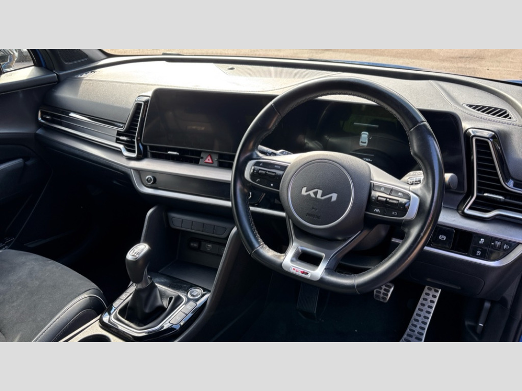 Kia Sportage 1.6T GDi ISG GT-Line 5dr 12.3" Display with navigation, 4.2" supervision colour cluster display, Apple car play/Android Auto with voice control, Cruise control + speed limiter, Drive mode selector, E-call, Forward collision avoidance assist (FCA) - city/pedestrian/cyclist/junction covering, Front and rear parking sensors, Intelligent speed limit assist, Kia Connect (UVO), Lane Following Assist (LFA), Lane keep assist, Low washer fluid warning, Rear view monitor, Reversing camera system integrated into centre fascia screen, Speed sensitive power steering, Trip computer, Windscreen washer level indicator, Intelligent Stop and Go, 6 speaker audio system, Bluetooth audio streaming, DAB Radio with MP3, Rear USB port, Steering wheel mounted audio controls, USB port for connection of a media device, All round electric windows with drivers and front passenger auto up/down function, Automatic headlight control system, Automatic window defogger, Backlite glass heated with timer, Body colour and black bumper with silver accents, Body colour door mirrors, Body colour exterior door handles, Body colour radiator upper garnish and door garnish, Electrically adjustable/heated/folding door mirrors with LED indicators, Front and rear chrome skid plates, Gloss black radiator grille, Gloss black side sill and wheel arch body mouldings, High beam assist, Interior electrochromic mirror, LED daytime running lights, LED front fog lamps, LED headlamps (low and high beam - MFR type), LED High mounted stop light, LED rear combination lamp, Rain sensing wipers with aero blades, Rear fog lamp, Rear privacy glass, Rear side wing doors, Rear spoiler, Rear wiper, Satin finished beltline, Silver roof rack, Trailer stability assist, 12V power socket in front centre fascia and luggage compartment, 2nd row personal lamps, 3 seat bench in 2nd row, 3 x passenger assist grips, 40/20/40 split folding rear seat, All-round height adjustable headrests, Black headlining, Centre console storage box, Cupholders in rear armrest, D-Shaped sports leather steering wheel and perforated inserts with GT-Line logo, Door courtesy lamps, Drink holder at centre armrest, Driver and front passenger side sunvisors with illuminated vanity mirrors, Driver's seat manual height adjust, Drivers seat power lumbar support, Front and rear door storage, Front seat and rear pockets, Front/rear centre armrests, Gear shift indicator, Glovebox illumination, Interior door lock/unlock function, ISOFIX Child seat top tethers and anchor fixings outer rear seats, Luggage area light, Luggage area load cover, Luggage net with hooks, Metal paint interior door handles, Overhead console lamp, Rear coat hooks, Single front passenger seat, Sports pedals, Suede leather upholstery, Three zone climate control, Tilt/telescopic adjustable steering wheel, Ventilation ducts to rear compartment, Active front headrests, All round 3-point seatbelts, Anti-lock braking system (ABS), Dual front side airbags, Dual horn, Electronic parking brake, Electronic stability control with downhill brake control, Front passenger airbag cut-off switch, Front seatbelt pretensioners + load limiters, Height adjustable front seatbelts, Hill start assist control (HAC), Impact sensing auto door unlocking, Multi collision brake assist, Rear door child safety locks, Rear seat alert system, Traction control, Twin curtain airbags, Twin front airbags, Tyre pressure monitoring system, Advanced anti-theft system including immobiliser and alarm, Door deadlocks, Engine Start/Stop Button with Smart Entry System, Locking wheel nuts, Speed sensitive auto door locking, Visible vehicle identification number, Aluminium pattern finish centre fascia and door garnish, 19" Alloy wheels, Tyre mobility kit