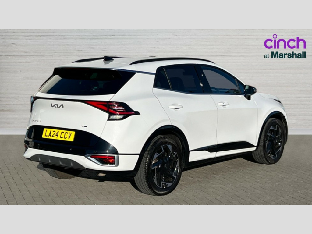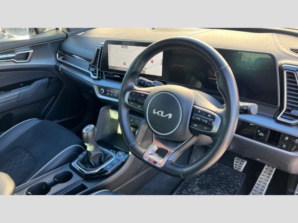 Kia Sportage 1.6T GDi ISG GT-Line 5dr 12.3" Display with navigation, 4.2" supervision colour cluster display, Apple car play/Android Auto with voice control, Drive mode selector, E-call, Forward collision avoidance assist (FCA) - city/pedestrian/cyclist/junction covering, Front and rear parking sensors, Intelligent speed limit assist, Kia Connect (UVO), Lane Following Assist (LFA), Lane keep assist, Low washer fluid warning, Rear view monitor, Reversing camera system integrated into centre fascia screen, Speed sensitive power steering, Trip computer, Windscreen washer level indicator, Intelligent Stop and Go, 6 speaker audio system, Bluetooth audio streaming, DAB Radio with MP3, Rear USB port, Steering wheel mounted audio controls, USB C type charging ports on centre console, USB C type charging ports on side of front seats, USB port for connection of a media device, All round electric windows with drivers and front passenger auto up/down function, Automatic headlight control system, Automatic window defogger, Backlite glass heated with timer, Black bumpers, Body colour and black bumper with silver accents, Body colour exterior door handles, Body colour radiator upper garnish and door garnish, Electrically adjustable/heated/folding door mirrors with LED indicators, Front and rear chrome skid plates, Gloss black door mirrors, Gloss black radiator grille, Gloss black side sill and wheel arch body mouldings, Glossy black roof rack, High beam assist, Interior electrochromic mirror, LED daytime running lights, LED front fog lamps, LED headlamps (low and high beam - MFR type), LED High mounted stop light, LED rear combination lamp, Rain sensing wipers with aero blades, Rear fog lamp, Rear privacy glass, Rear side wing doors, Rear spoiler, Rear wiper, Satin finished beltline, Silver coloured inserts to bumpers, Tinted rear glass, Trailer stability assist, 12V power socket in front centre fascia and luggage compartment, 2nd row personal lamps, 3 seat bench in 2nd row, 3 x passenger assist grips, 40/20/40 split folding rear seat, All-round height adjustable headrests, Black headlining, Centre console storage box, Cupholders in rear armrest, D-Shaped sports leather steering wheel and perforated inserts with GT-Line logo, Door courtesy lamps, Drink holder at centre armrest, Driver and front passenger side sunvisors with illuminated vanity mirrors, Driver's seat manual height adjust, Drivers seat power lumbar support, Front and rear door storage, Front seat and rear pockets, Front/rear centre armrests, Gear shift indicator, Glovebox illumination, Heated front seats, Heated steering wheel, Interior door lock/unlock function, ISOFIX Child seat top tethers and anchor fixings outer rear seats, Luggage area light, Luggage area load cover, Luggage net with hooks, Metal paint interior door handles, Overhead console lamp, Rear cabin light, Rear coat hooks, Single front passenger seat, Sports pedals, Suede leather upholstery, Three zone climate control, Tilt/telescopic adjustable steering wheel, Ventilation ducts to rear compartment, Active front headrests, All round 3-point seatbelts, Anti-lock braking system (ABS), Dual front side airbags, Dual horn, Electronic parking brake, Electronic stability control with downhill brake control, Front passenger airbag cut-off switch, Front seatbelt pretensioners + load limiters, Height adjustable front seatbelts, Hill start assist control (HAC), Impact sensing auto door unlocking, Multi collision brake assist, Rear door child safety locks, Rear seat alert system, Traction control, Twin curtain airbags, Twin front airbags, Tyre pressure monitoring system, Advanced anti-theft system including immobiliser and alarm, Door deadlocks, Engine Start/Stop Button with Smart Entry System, Locking wheel nuts, Speed sensitive auto door locking, Visible vehicle identification number, Aluminium pattern finish centre fascia and door garnish, 19" GT-Line alloy wheels, Tyre mobility kit