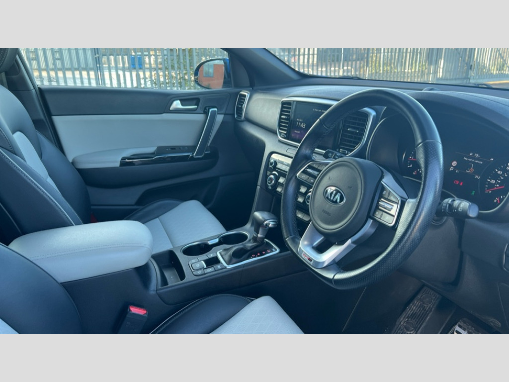 Kia Sportage 1.6T GDi ISG GT-Line 5dr DCT Auto [AWD] 4.2" supervision colour cluster display, 8" touchscreen satellite navigation with European mapping and traffic messaging channel, Android auto with voice control, Apple car play with voice control, Cruise control + speed limiter, Drive mode selector, Driver attention warning, Emergency stop signalling system, Front parking sensor, Kia connected services featuring TomTom live, Lane keep assist, Rear parking sensor, Reversing camera, Speed limit information, Speed sensitive power steering, Telematics system with UVO connect services, Trip computer, Windscreen washer level indicator, Intelligent Stop and Go, 6 speaker audio system, Bluetooth audio streaming, DAB Radio with MP3, Rear USB port, Steering wheel mounted audio controls, USB/iPod/auxiliary input connections, All round electric windows with drivers auto up/down function, Auto dimming rear view mirror, Automatic lighting control, Automatic window defogger, Black wheel arch body mouldings and side sills with dark chrome insert, Body colour door handles with chrome inserts, Body colour door mirrors, Chrome window surround, Dark chrome front bumper insert, Dark chrome front grille surround, Electrically adjustable/heated/folding door mirrors with LED indicators, Front wiper de-icer, High beam assist, High gloss black blade mesh radiator grille, LED Bi-Function headlights, LED daytime running lights, LED ice cube front fog lights, LED rear lights, LED third brake light, Privacy glass - Rear windows and tailgate, Rain sensing front wipers, Rear spoiler, Rear wiper, Roof rails, Shark fin antenna, Silver painted front and rear skid plates, Tinted glass, Trailer stability assist, Welcome and follow-me home light functionality, Wide view drivers door mirror, 12V power in front and rear centre console, 3 x passenger assist grips, 60/40 split folding rear seat, Air filter, All-round height adjustable headrests, Aluminium door scuff plates, Aluminium pedals, Black headlining, Centre cabin light, Centre console storage box, Chrome boot sill guard, D-Shaped sports leather steering wheel and perforated inserts with GT-Line logo, Driver and front passenger side sunvisors with illuminated vanity mirrors, Driver's seat manual height adjust, Drivers seat power lumbar support, Dual zone automatic air conditioning, Front and rear door storage, Front cabin LED map light with sunglasses case, Front door courtesy reflectors, Front seat and rear pockets, Front/rear centre armrests, Gear shift indicator, Glovebox illumination, Heated front and outer rear seats, Interior door lock/unlock function, ISOFIX Child seat top tethers and anchor fixings outer rear seats, Leather trimmed door armrests, Leather trimmed gearshift, Luggage area light, Luggage area load cover, Luggage net with hooks, Paddle shift controls, Rear centre armrest with cupholder, Rear coat hooks, Satin chrome interior door handles, Tilt/telescopic adjustable steering wheel, Two tone leather upholstery, Ventilation ducts to rear compartment, Active front headrests, All round 3-point seatbelts, Anti-lock braking system with electronic brakeforce distribution, Dual front side airbags, Electronic parking brake, Electronic stability control with downhill brake control, Front passenger airbag cut-off switch, Front seatbelt pretensioners + load limiters, Height adjustable front seatbelts, Hill start assist control (HAC), Impact sensing auto door unlocking, Rear door child safety locks, Traction control, Twin curtain airbags with roll over sensor, Twin front airbags, Tyre pressure monitoring system, Advanced anti-theft system including immobiliser and alarm, Door deadlocks, Engine Start/Stop Button with Smart Entry System, Locking wheel nuts, Speed sensitive auto door locking, Visible vehicle identification number, High gloss black centre fascia, 19" alloy Wheels B-type, Tyre mobility kit