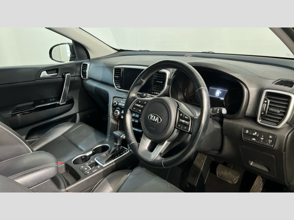 Kia Sportage 1.6T GDi ISG JBL Black Edition 5dr DCT Auto 360 degree around view monitor, 4.2" supervision colour cluster display, 8" touchscreen satellite navigation with European mapping and traffic messaging channel, Android auto with voice control, Apple car play with voice control, Blind spot collision warning, Cruise control + speed limiter, Drive mode selector, Driver attention warning, Emergency stop signalling system, Front parking sensor, Kia connected services featuring TomTom live, Lane keep assist, Rear parking sensor, Reversing camera, Speed limit information, Speed sensitive power steering, Telematics system with UVO connect services, Trip computer, Windscreen washer level indicator, Intelligent Stop and Go, Bluetooth audio streaming, DAB Radio with MP3, JBL Premium sound system with 8 speakers, external amp, subwoofer and front centre speaker, Rear USB port, Steering wheel mounted audio controls, USB/iPod/auxiliary input connections, All round electric windows with drivers auto up/down function, Auto dimming rear view mirror, Automatic lighting control, Automatic window defogger, Black roof rails, Black wheel arch body mouldings and side sills with high gloss insert, Body colour door handles, Body colour door mirrors, Chrome window surround, Dual exhaust pipes, Electric panoramic glass sunroof (Electric one touch with safety function), Electrically adjustable/heated/folding door mirrors with LED indicators, Front wiper de-icer, Full width dark sportage badge, High beam assist, High gloss black edition radiator grille, High gloss black front and rear skid plate, High gloss black front grille surround, High gloss fog light surround and front trim, LED Bi-Function headlights, LED daytime running lights, LED rear lights, Premium paint, Privacy glass - Rear windows and tailgate, Projection front fog lights, Rain sensing front wipers, Rear spoiler, Rear wiper, Shark fin antenna, Tinted glass, Trailer stability assist, Unique darkened Kia emblems, Welcome and follow-me home light functionality, Wide view drivers door mirror, 10 way driver/8 way passenger electrically power adjustable seats, 12V power in front and rear centre console, 3 x passenger assist grips, 60/40 split folding rear seat, Air filter, All-round height adjustable headrests, Aluminium door scuff plates, Centre console storage box, Driver and front passenger side sunvisors with illuminated vanity mirrors, Drivers seat power lumbar support, Dual zone automatic air conditioning, Front and rear door storage, Front cabin LED map light with sunglasses case, Front door courtesy reflectors, Front seat and rear pockets, Front/rear centre armrests, Gear shift indicator, Glovebox illumination, Heated front and outer rear seats, Heated steering wheel, Interior door lock/unlock function, ISOFIX Child seat top tethers and anchor fixings outer rear seats, Leather steering wheel, Leather trimmed door armrests, Leather trimmed gearshift, Leather upholstery, Light grey headlining, Luggage area LED light, Luggage area load cover, Luggage net with hooks, Rear centre armrest with cupholder, Rear coat hooks, Satin chrome interior door handles, Side cabin LED lights, Tilt/telescopic adjustable steering wheel, Ventilation ducts to rear compartment, Active front headrests, All round 3-point seatbelts, Anti-lock braking system with electronic brakeforce distribution, Dual front side airbags, Electronic parking brake, Electronic stability control with downhill brake control, Front passenger airbag cut-off switch, Front seatbelt pretensioners + load limiters, Height adjustable front seatbelts, Hill start assist control (HAC), Impact sensing auto door unlocking, Rear door child safety locks, Traction control, Twin curtain airbags with roll over sensor, Twin front airbags, Tyre pressure monitoring system, Advanced anti-theft system including immobiliser and alarm, Door deadlocks, Engine Start/Stop Button with Smart Entry System, Locking wheel nuts, Speed sensitive auto door locking, Visible vehicle identification number, High gloss black centre fascia, 17" Black alloy wheels, Tyre mobility kit