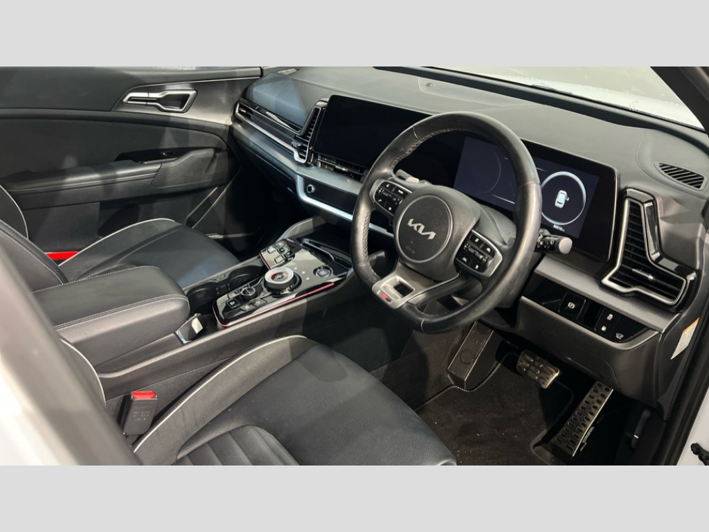 Kia Sportage 1.6T GDi PHEV GT-Line S 5dr Auto AWD 12.3" Display with navigation, 12.3" supervision colour cluster display, 360 degree around view monitor, Apple car play/Android Auto with voice control, Blind spot collision avoidance assist, Blind spot view monitor, Drive mode selector, E-call, Forward collision avoidance assist (FCA) - city/pedestrian/cyclist/junction covering, Front and rear parking sensors, Highway Driving Assist (HDA), Intelligent speed limit assist, Kia Connect (UVO), Lane Following Assist (LFA), Lane keep assist, Low washer fluid warning, Parking collision avoidance assist (PCA), Remote smart parking assist, Reversing camera system integrated into centre fascia screen, Smart cruise control with stop and go functionality, Smart power tailgate, Speed sensitive power steering, Trip computer, Windscreen washer level indicator, Wireless Smartphone charger, Intelligent Stop and Go, Terrain mode select (Mud, Snow, Sand), Bluetooth audio streaming, DAB Radio with MP3, Harman Kardon premium sound system, Rear USB port, Steering wheel mounted audio controls, USB C type charging ports on centre console, USB C type charging ports on side of front seats, USB port for connection of a media device, All round electric windows with drivers and front passenger auto up/down function, Automatic headlight control system, Automatic window defogger, Backlite glass heated with timer, Body colour and black bumper with silver accents, Body colour exterior door handles, Body colour radiator upper garnish and door garnish, Dual LED adaptive headlamps, Electric panoramic glass sunroof (Electric one touch with safety function), Electrically adjustable/heated/folding door mirrors with LED indicators, Front and rear chrome skid plates, Gloss black door mirrors, Gloss black radiator grille, Gloss black side sill and wheel arch body mouldings, Glossy black roof rack, High beam assist, Interior electrochromic mirror, LED daytime running lights, LED front fog lamps, LED High mounted stop light, LED rear combination lamp, Rain sensing wipers with aero blades, Rear fog lamp, Rear privacy glass, Rear side wing doors, Rear spoiler, Rear wiper, Satin finished beltline, Trailer stability assist, 10 way driver/8 way passenger electrically power adjustable seats, 12V power socket in front centre fascia and luggage compartment, 3 seat bench in 2nd row, 3 x passenger assist grips, 40/20/40 split folding rear seat, All-round height adjustable headrests, Ambient lighting, Black headlining, Centre console storage box, Cupholders in rear armrest, D-Shaped sports leather steering wheel and perforated inserts with GT-Line logo, Door courtesy lamps, Drink holder at centre armrest, Driver and front passenger side sunvisors with illuminated vanity mirrors, Driver seat memory function, Drivers seat power lumbar support, Front and rear door storage, Front seat and rear pockets, Front/rear centre armrests, Gear shift indicator, Glovebox illumination, Heated front and outer rear seats, Heated steering wheel, Interior door lock/unlock function, ISOFIX Child seat top tethers and anchor fixings outer rear seats, LED interior personal lamp, LED lighting in overhead console, Luggage area LED light, Luggage area load cover, Luggage net with hooks, Metal paint interior door handles, Paddle shift controls, Rear coat hooks, Single front passenger seat, Sports pedals, Suede leather upholstery, Three zone climate control, Tilt/telescopic adjustable steering wheel, Ventilated front seats, Ventilation ducts to rear compartment, Active front headrests, All round 3-point seatbelts, Anti-lock braking system (ABS), Dual front side airbags, Dual horn, Electronic parking brake, Electronic stability control with downhill brake control, Front passenger airbag cut-off switch, Front seatbelt pretensioners + load limiters, Height adjustable front seatbelts, Hill start assist control (HAC), Impact sensing auto door unlocking, Multi collision brake assist, Rear door child safety locks, Rear seat alert system, Traction control, Twin curtain airbags, Twin front airbags, Tyre pressure monitoring system, Advanced anti-theft system including immobiliser and alarm, Door deadlocks, Engine Start/Stop Button with Smart Entry System, Locking wheel nuts, Speed sensitive auto door locking, Visible vehicle identification number, Aluminium pattern finish centre fascia and door garnish, 19" Alloy wheels, Michelin tyres, Tyre mobility kit