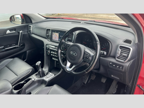 Kia Sportage 1.7 CRDi ISG 4 5dr 8" touch screen, Apple car play/Android Auto, Blind spot assist, Bluetooth connectivity with voice control, Colour information display, Cruise control + speed limiter, Digital clock, Emergency stop signalling system, Front and rear parking sensors, Kia connected services, Lane keep assist, Rear cross traffic alert, Satellite navigation with rear view parking camera, Speed limit display, Speed sensitive power steering, Stop/start button, Trip computer, 8 Speakers, Bluetooth audio streaming, DAB Radio with MP3, JBL Premium Sound System, Rear USB port, Steering wheel mounted audio controls, USB/iPod/auxiliary input connections, Adaptive headlights, Auto dimming rear view mirror, Automatic front rain sensing wipers, Automatic headlights, Bi-Xenon headlights + Auto levelling, Black side sill moulding, Body colour bumpers, Body colour door handles with chrome inserts, Body colour electric adjustable door mirrors, Chrome beltline trim, Chrome trim on tailgate, Electric folding door mirrors, Electric panoramic glass sunroof, Electric windows, Front drivers side windows/one touch up/down, Front fog lights, Gloss black grille with chrome surround, Headlight washers, Heated door mirrors, High beam assist, LED daytime running lights, LED indicators in door mirrors, LED rear lights, Privacy glass (rear side windows and rear screen), Rear spoiler, Rear wiper, Shark fin roof aerial, Silver roof rails, Speed sensitive front wipers, Tinted glass, Trailer stability assist, Welcome home function, Windscreen wiper de-icer, 10 way driver/8 way passenger electrically power adjustable seats, 12V power in rear centre console, 12V power point front, 3 passenger grab handles, 60/40 split folding rear seat, Air filter, Ambient lighting, Centre console storage box/armrest, Door armrest in leather, Door courtesy lamps, Driver's lumbar support, Driver/passenger sunvisors with ticket holders, Dual zone automatic air conditioning, Front and rear door pockets, Front map lights, Front seat and rear pockets, Grey headlining, Heated front and outer rear seats, Heated steering wheel, Height adjustable headrests, Illuminated glovebox, Illuminated vanity mirrors, Isofix child seat preparation, Leather trimmed gearshift, Leather trimmed steering wheel, Leather upholstery, Luggage area lamp, Luggage compartment cover, Luggage net with hooks, Rear centre armrest with cupholder, Rear coat hooks, Rear headrests, Satin chrome interior door handles, Stainless Steel Scuff Plates, Tilt/telescopic adjustable steering wheel, Ventilated front seats, Ventilation ducts to rear compartment, 3 point front seat belts, 3x3 point rear seatbelts, ABS/EBD, Active front headrests, Automatic unlocking of doors in case of impact, Autonomous emergency braking, Dual front airbags, ESP + traction control, Front seatbelt pretensioners + load limiters, Front side airbags, Full size curtain airbags, Height adjustable front seatbelts, Hill start assist control (HAC), Passenger airbag deactivate switch, Rear child proof door locks, Tyre pressure monitoring system, Anti theft alarm, Deadlocks, Immobiliser, Locking wheel nuts, Smart keyless entry, Speed sensitive auto door locking, High gloss black centre fascia, 19" Alloy wheels, Temporary spare wheel