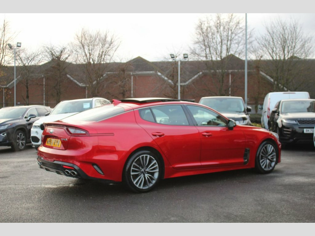 IM Car Supermarket is pleased to offer a Kia Stinger 2.0 T-GDi GT-Line S Gran Turismo Auto Euro 6 (s/s) 5dr in Red with only 66479 miles on the clock, ULEZ Compliant, NO ULEZ Charges applies to this Vehicle, 3 Months Warranty, Service History, Service Book, Number of services 11 (11 main dealer), Last Service 15/04/2025, Last service mileage 62,804 miles, MOT till 08/05/2026. A High Specification includes Sunroof, Navigation HDD, Navigation System, Parking Sensor(s), Climate Control, Leather Trim, Tyre Repair Kit, 18" Alloy Wheels, Phone & Media BT-Connections... 12v Power Socket - Front and Rear Centre, 15-Speaker Harmon - Kardon Premium Sound, 18in Alloy Wheels, 3 x Passenger Assist Grips, 360 Degree Around View Monitor, 60-40 Split Folding 2nd Row Seats, 7in Supervision Cluster with LCD TFT Col, 8-Way Power Adjustable Drivers Memory Se, 8-Way Power Adjustable Passengers Seat -, 8in Touchscreen Satellite Navigation wit, ABS - Anti Lock Braking System, Active Bonnet System, Advanced Smart Cruise Control Function -, All-Round 3-Point Seatbelts, All-Round Electric Windows with Drivers , All-Round Height Adjustable Headrests, Aluminium Centre Console, Aluminium Pedals, Ambient Lighting, Android Auto with Voice Control, Apple CarPlay with Voice Control,
